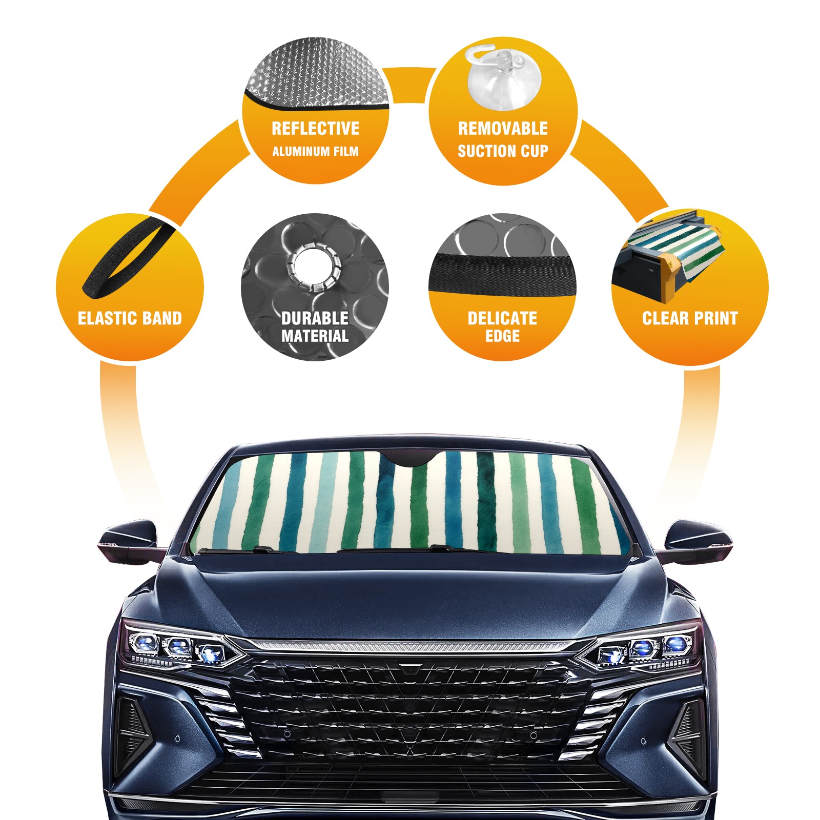 • <p><b>Foldable Premium Car Windshield Sunshade is your great solution to reduce your car’s interior temperature dramatically! This is definitely a must-have item for your summer travel!</b></p><p><b>【Precision Fit, Stylish Protection】</b></p><p>55"x30" (140x76cm) universal size with 3cm flexible margins fits curved windshields of most sedans/SUVs.</p><p><b>【Blocking Uv Rays &amp; Heat Insulation】</b></p><p>Our vehicle sunshade provides effective UV, sun, and summer heat protection, preventing leather fading and plastic cracking to keep your car interior pristine.</p><p><b>【Zero-Mark Installation &amp; Space-Saving】</b></p><p>Equipped with dual scratch-free silicone suction cups + adjustable straps: Medical-grade silicone cups hold firmly yet remove cleanly. Folds to A3 size (42x30cm x &lt;2cm thick), tucks discreetly into glove compartments or door pockets.&nbsp;</p>
