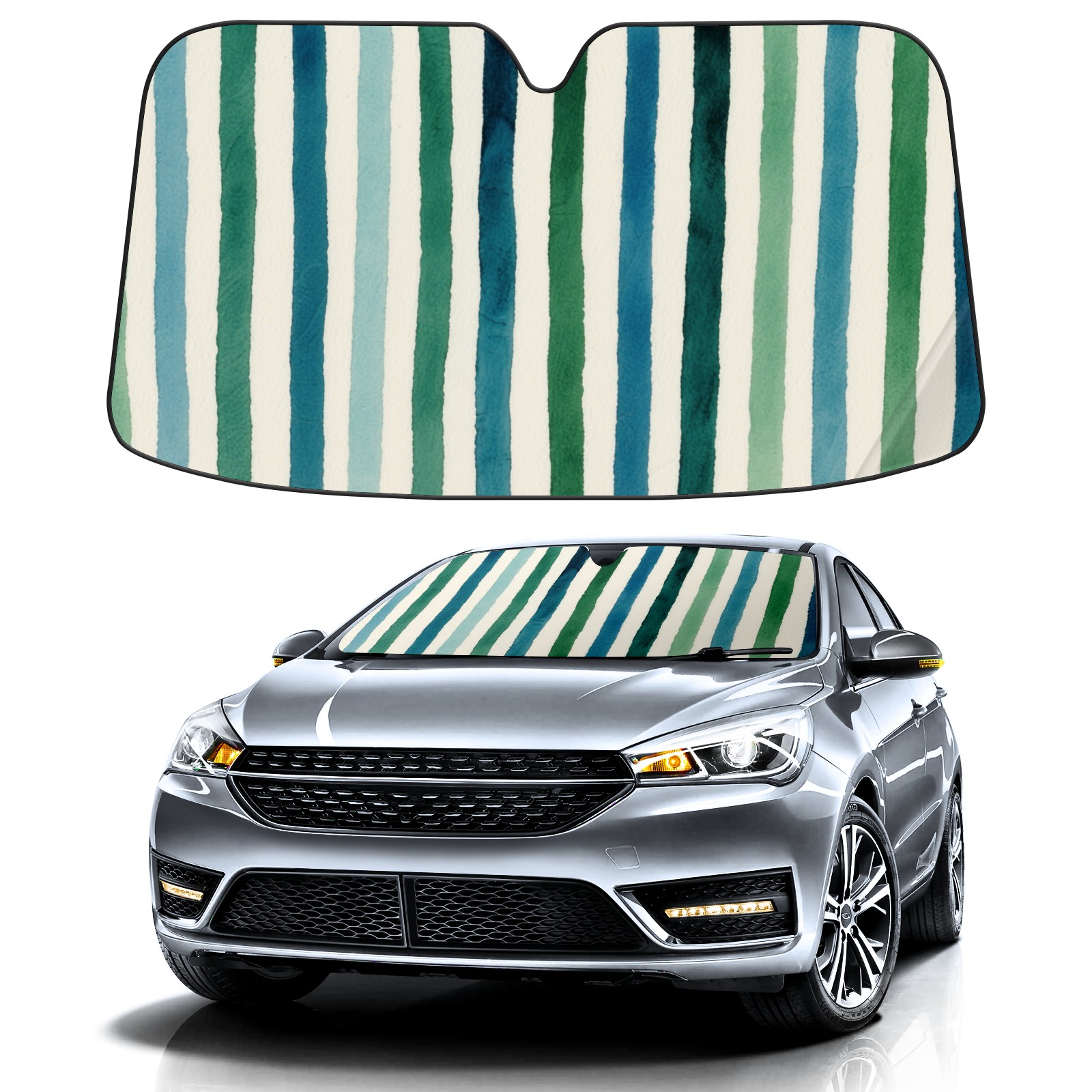Watercolor Green Stripes Car Sun Shade UV Protection Foldable Sunshade for Windshield Heat Insulation Portable Sun Shield for Car Interior Protection Automotive Window Protector