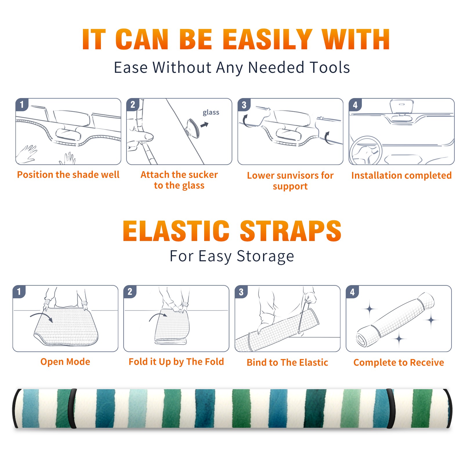 <p><b>Foldable Premium Car Windshield Sunshade is your great solution to reduce your car’s interior temperature dramatically! This is definitely a must-have item for your summer travel!</b></p><p><b>【Precision Fit, Stylish Protection】</b></p><p>55"x30" (140x76cm) universal size with 3cm flexible margins fits curved windshields of most sedans/SUVs.</p><p><b>【Blocking Uv Rays &amp; Heat Insulation】</b></p><p>Our vehicle sunshade provides effective UV, sun, and summer heat protection, preventing leather fading and plastic cracking to keep your car interior pristine.</p><p><b>【Zero-Mark Installation &amp; Space-Saving】</b></p><p>Equipped with dual scratch-free silicone suction cups + adjustable straps: Medical-grade silicone cups hold firmly yet remove cleanly. Folds to A3 size (42x30cm x &lt;2cm thick), tucks discreetly into glove compartments or door pockets.&nbsp;</p>