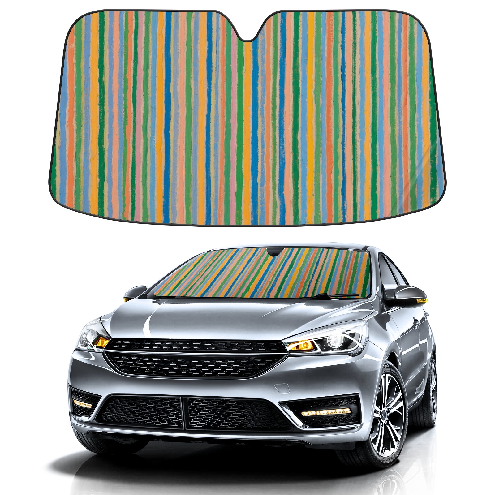 Vertical Stripes Car Sun Shade UV Protection Foldable Sunshade for Windshield Heat Insulation Portable Sun Shield for Car Interior Protection Automotive Window Protector