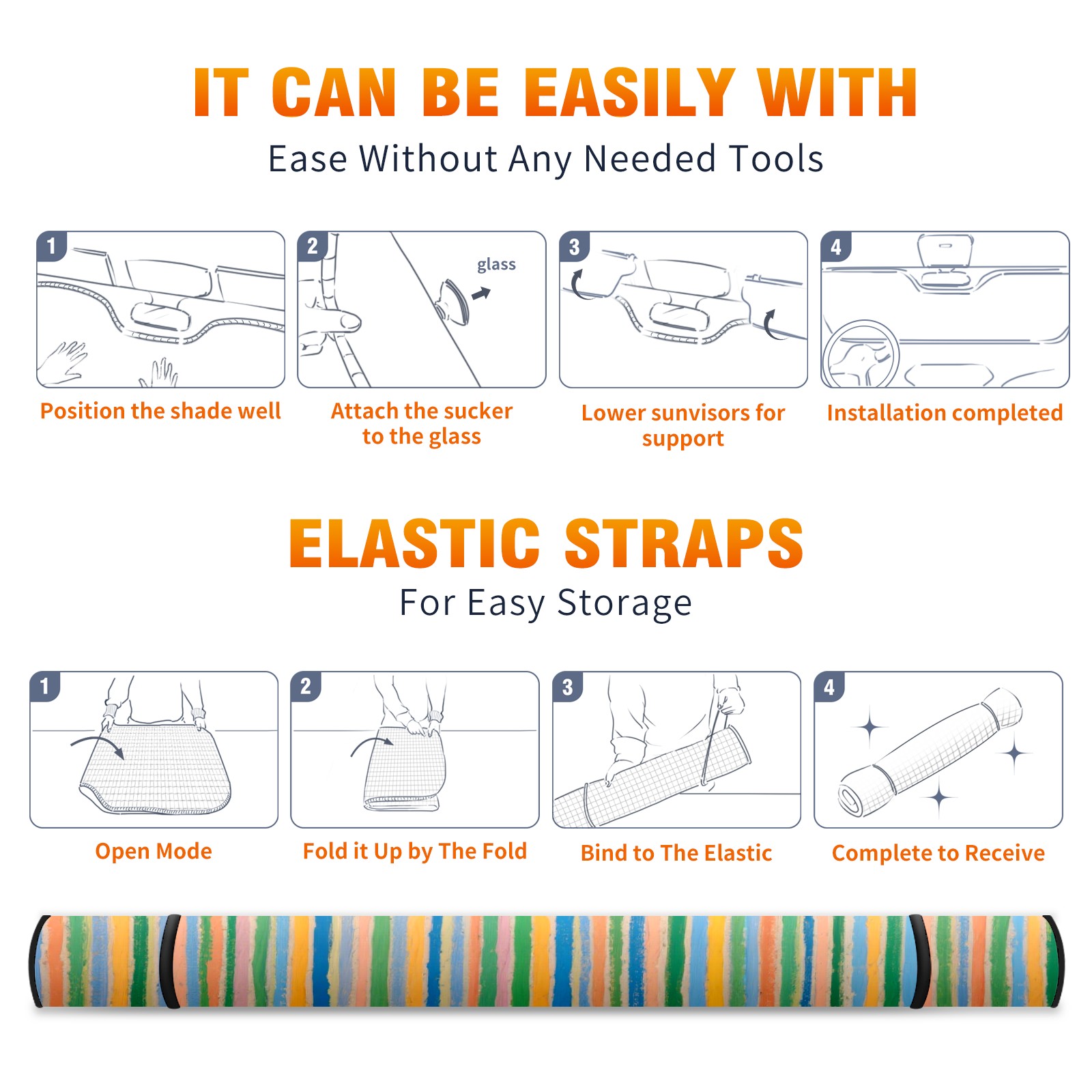 <p><b>Foldable Premium Car Windshield Sunshade is your great solution to reduce your car’s interior temperature dramatically! This is definitely a must-have item for your summer travel!</b></p><p><b>【Precision Fit, Stylish Protection】</b></p><p>55"x30" (140x76cm) universal size with 3cm flexible margins fits curved windshields of most sedans/SUVs.</p><p><b>【Blocking Uv Rays &amp; Heat Insulation】</b></p><p>Our vehicle sunshade provides effective UV, sun, and summer heat protection, preventing leather fading and plastic cracking to keep your car interior pristine.</p><p><b>【Zero-Mark Installation &amp; Space-Saving】</b></p><p>Equipped with dual scratch-free silicone suction cups + adjustable straps: Medical-grade silicone cups hold firmly yet remove cleanly. Folds to A3 size (42x30cm x &lt;2cm thick), tucks discreetly into glove compartments or door pockets.&nbsp;</p>