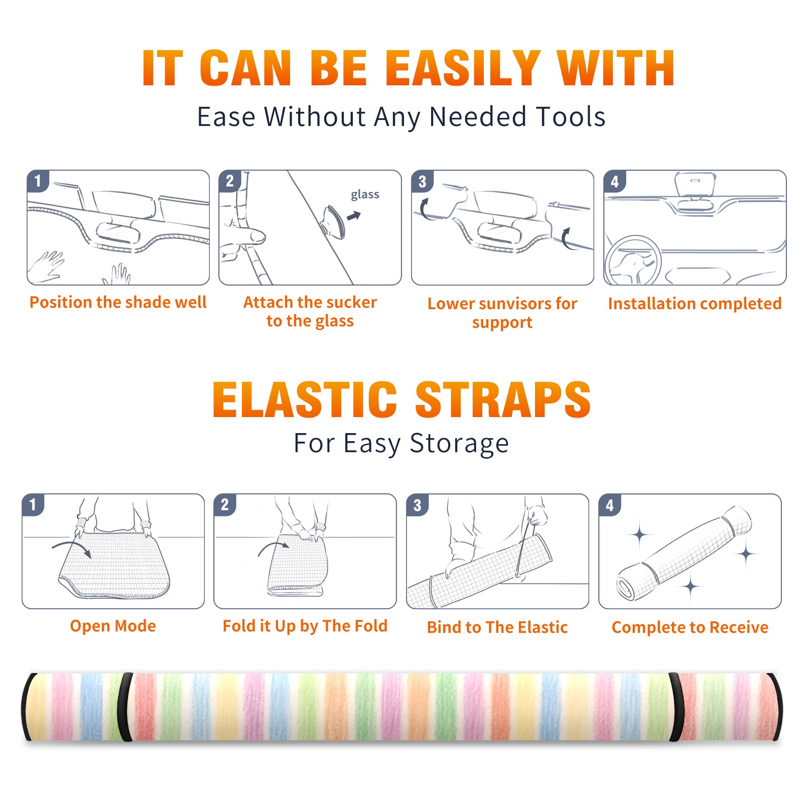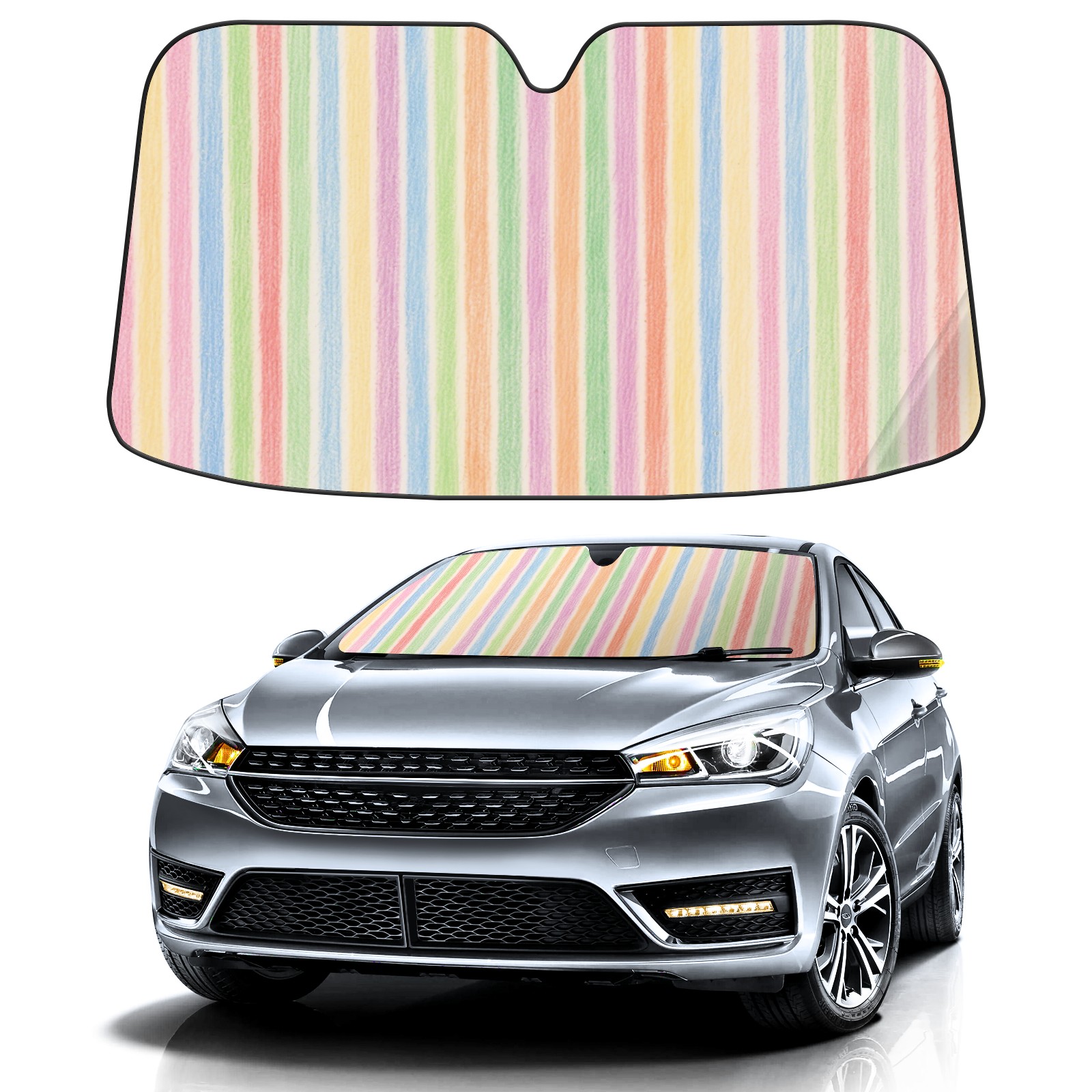 Vertical Stripes Of Colored Lead Car Sun Shade UV Protection Foldable Sunshade for Windshield Heat Insulation Portable Sun Shield for Car Interior Protection Automotive Window Protector