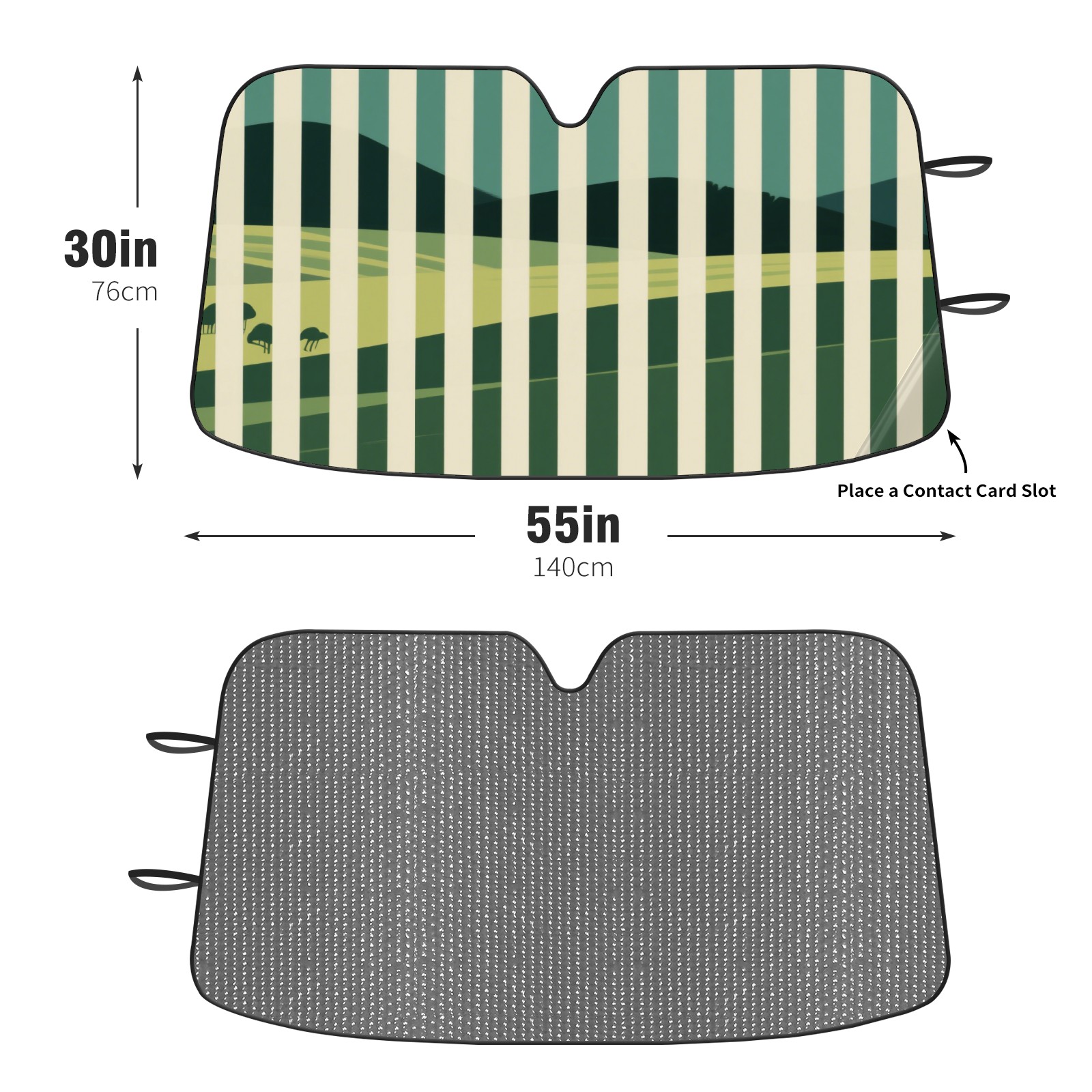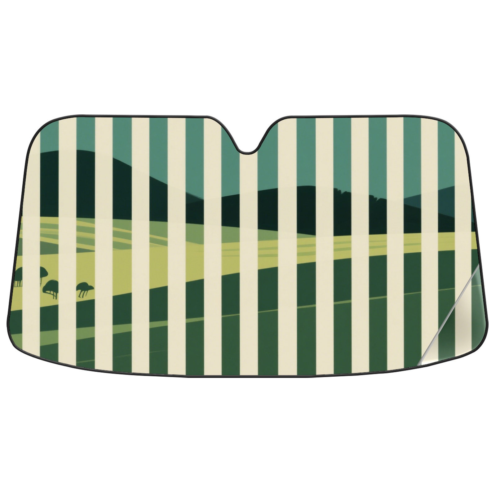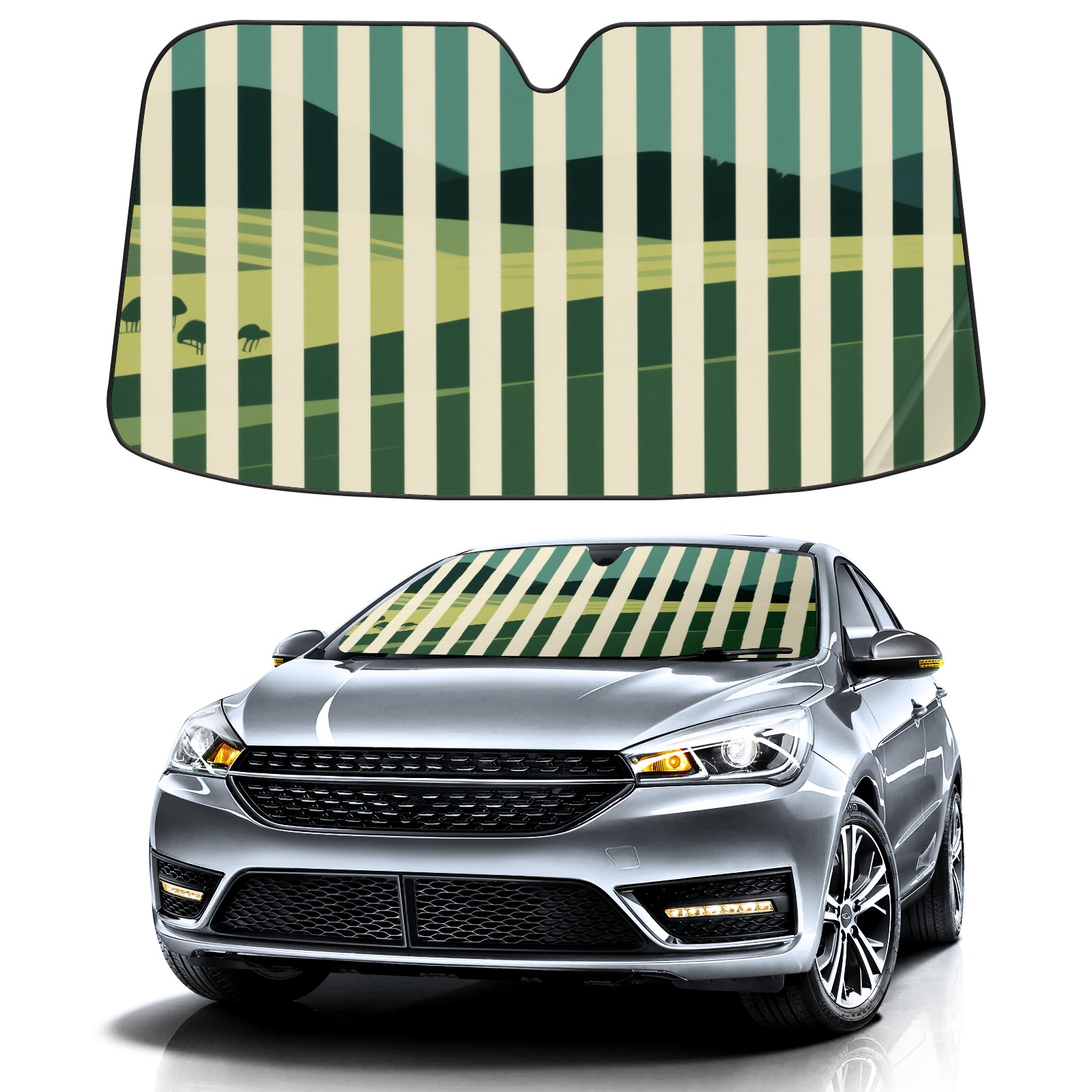 Striped Grid Scenery Car Sun Shade UV Protection Foldable Sunshade for Windshield Heat Insulation Portable Sun Shield for Car Interior Protection Automotive Window Protector
