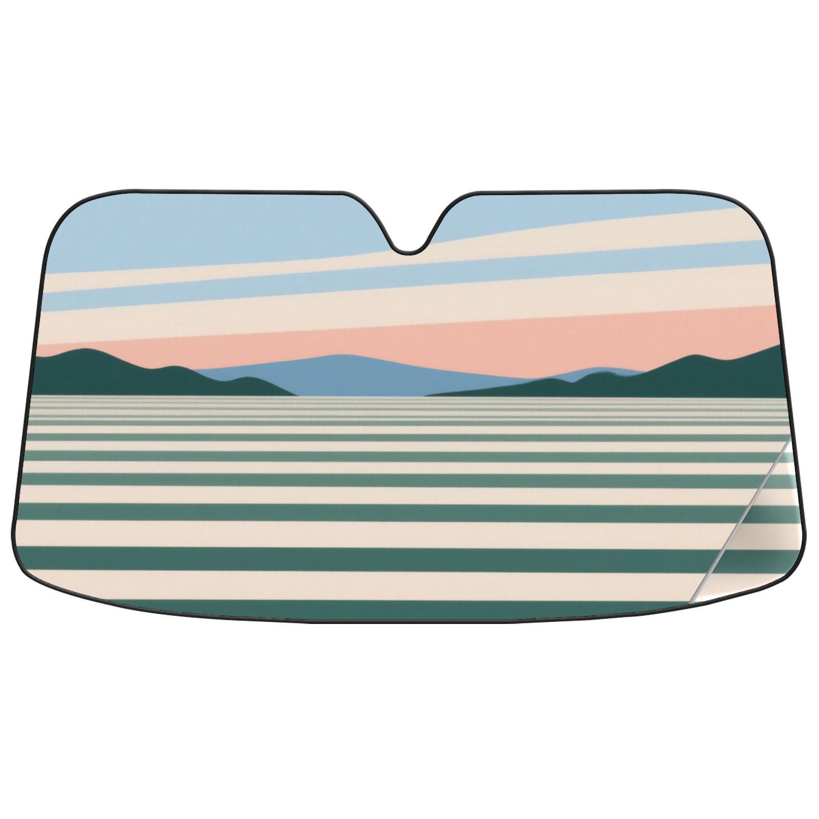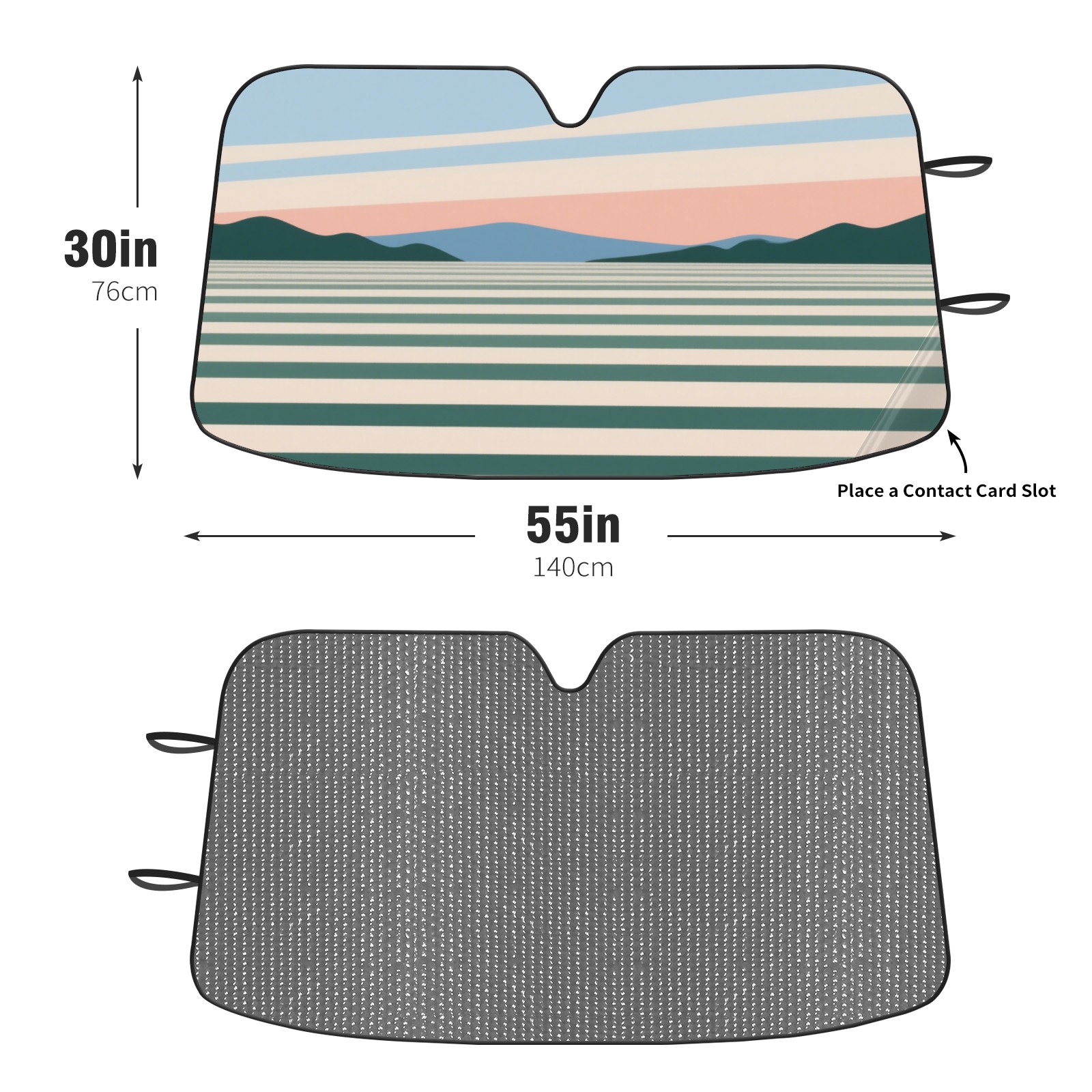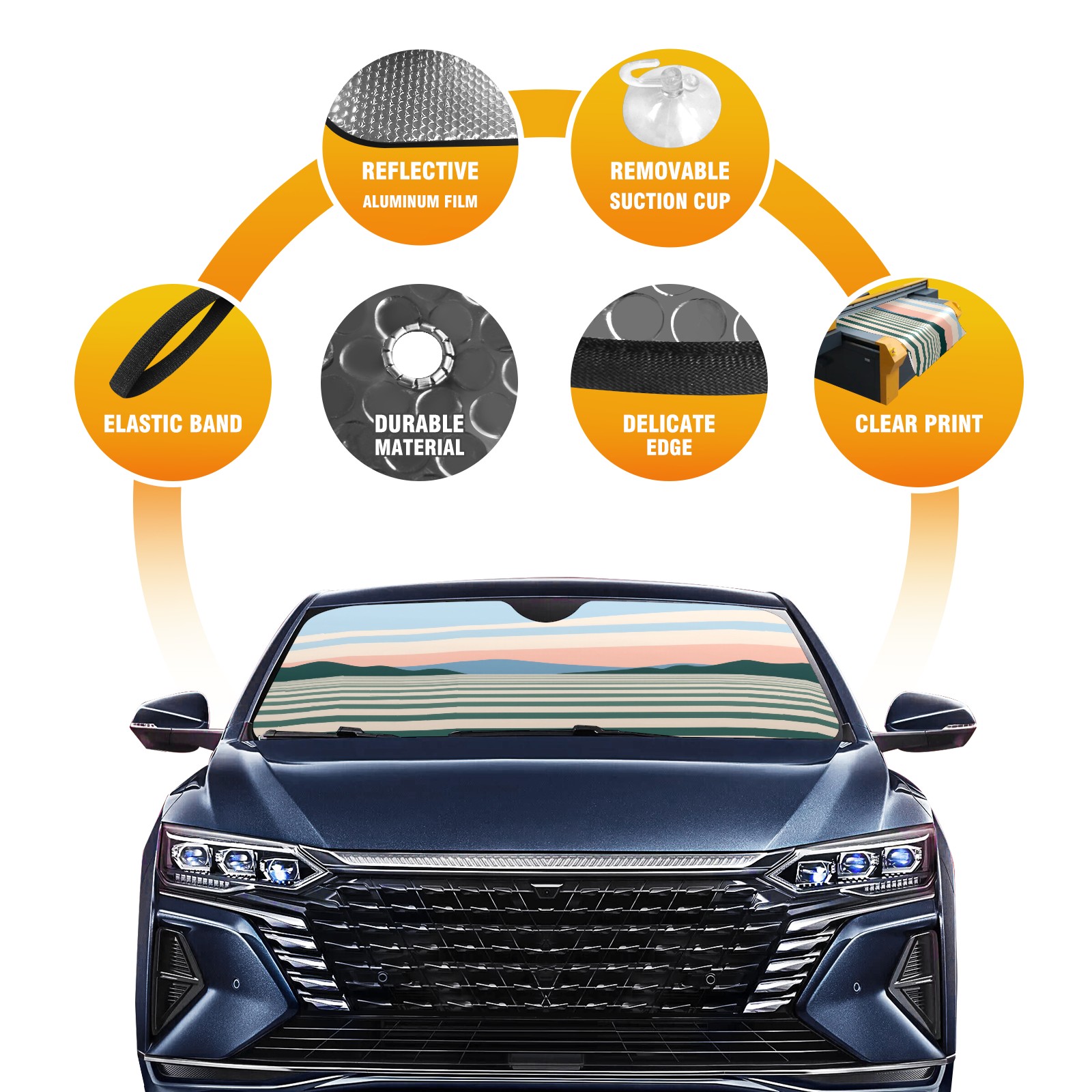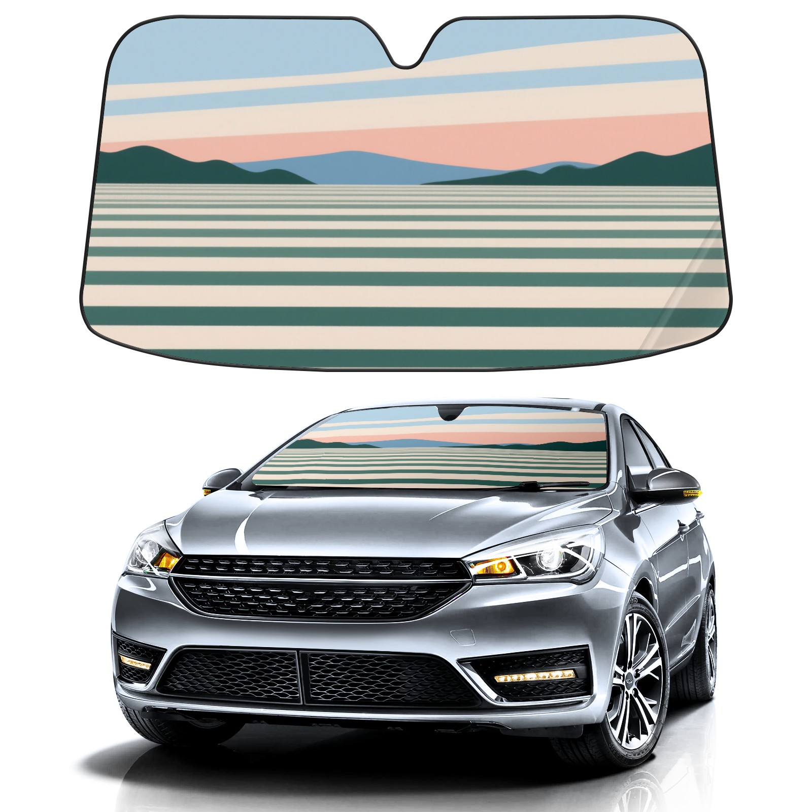 Striped Sunset Scenery Car Sun Shade UV Protection Foldable Sunshade for Windshield Heat Insulation Portable Sun Shield for Car Interior Protection Automotive Window Protector