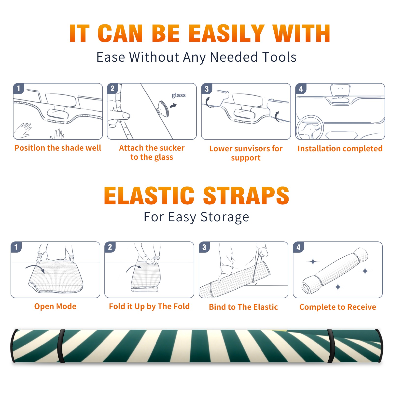 <p><b>Foldable Premium Car Windshield Sunshade is your great solution to reduce your car’s interior temperature dramatically! This is definitely a must-have item for your summer travel!</b></p><p><b>【Precision Fit, Stylish Protection】</b></p><p>55"x30" (140x76cm) universal size with 3cm flexible margins fits curved windshields of most sedans/SUVs.</p><p><b>【Blocking Uv Rays &amp; Heat Insulation】</b></p><p>Our vehicle sunshade provides effective UV, sun, and summer heat protection, preventing leather fading and plastic cracking to keep your car interior pristine.</p><p><b>【Zero-Mark Installation &amp; Space-Saving】</b></p><p>Equipped with dual scratch-free silicone suction cups + adjustable straps: Medical-grade silicone cups hold firmly yet remove cleanly. Folds to A3 size (42x30cm x &lt;2cm thick), tucks discreetly into glove compartments or door pockets.&nbsp;</p>