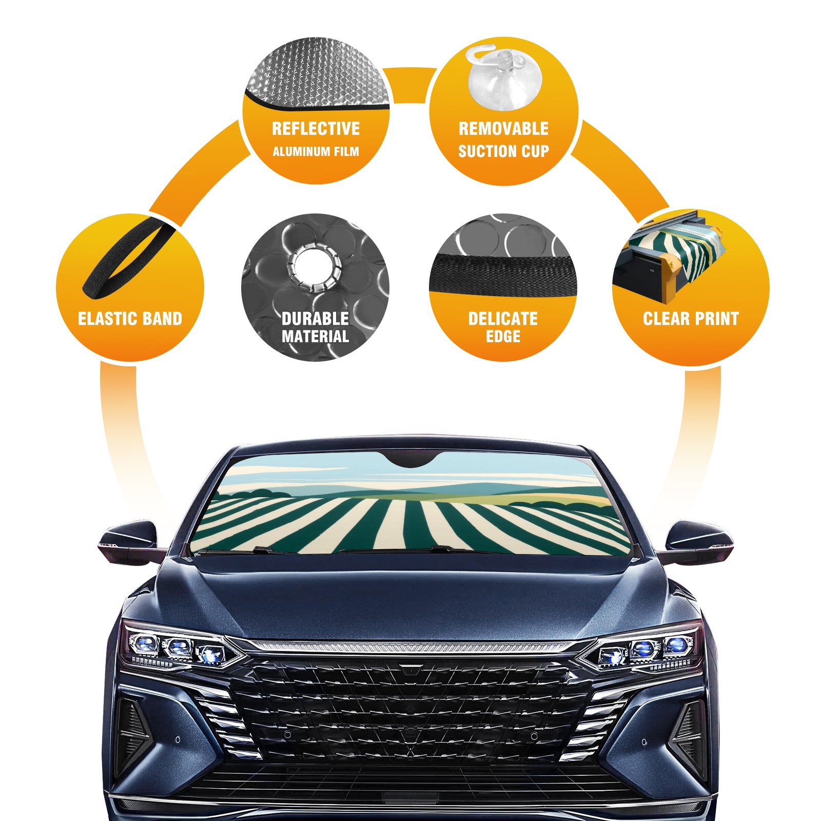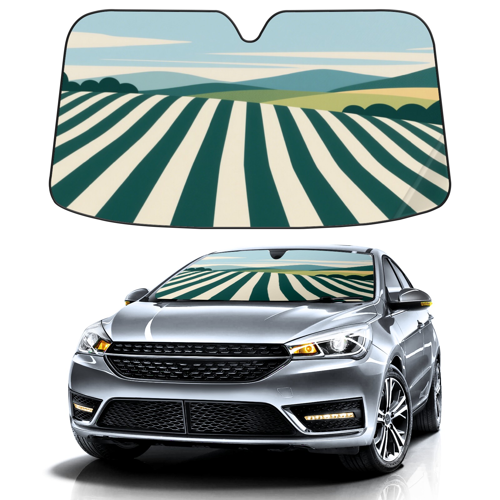 Striped Field Car Sun Shade UV Protection Foldable Sunshade for Windshield Heat Insulation Portable Sun Shield for Car Interior Protection Automotive Window Protector