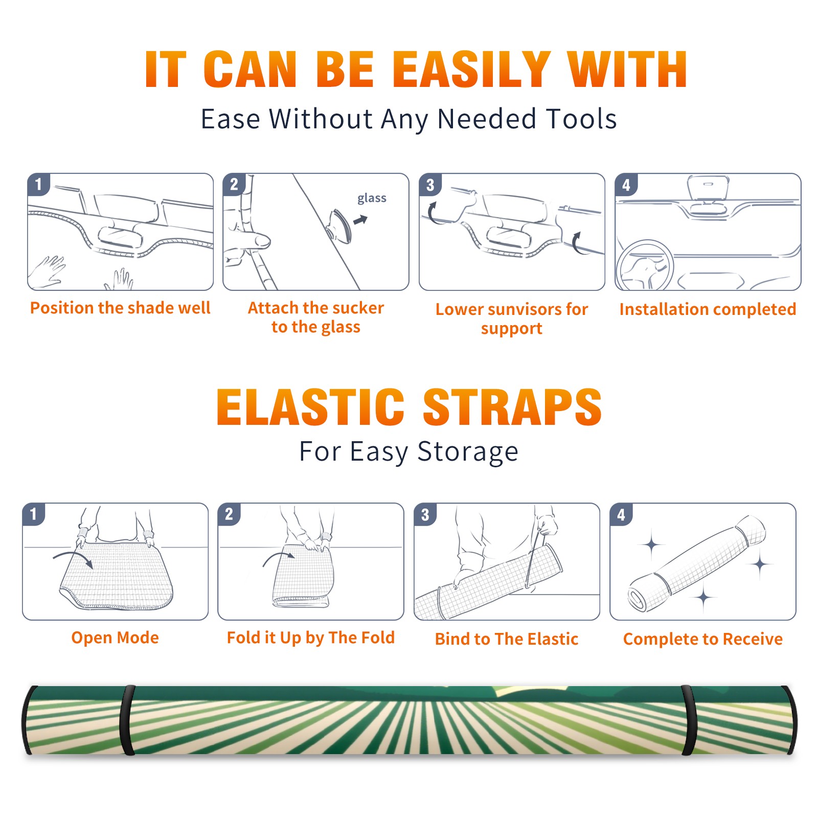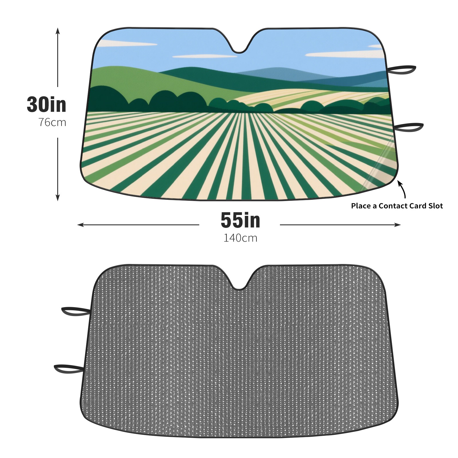 • <p><b>Foldable Premium Car Windshield Sunshade is your great solution to reduce your car’s interior temperature dramatically! This is definitely a must-have item for your summer travel!</b></p><p><b>【Precision Fit, Stylish Protection】</b></p><p>55"x30" (140x76cm) universal size with 3cm flexible margins fits curved windshields of most sedans/SUVs.</p><p><b>【Blocking Uv Rays &amp; Heat Insulation】</b></p><p>Our vehicle sunshade provides effective UV, sun, and summer heat protection, preventing leather fading and plastic cracking to keep your car interior pristine.</p><p><b>【Zero-Mark Installation &amp; Space-Saving】</b></p><p>Equipped with dual scratch-free silicone suction cups + adjustable straps: Medical-grade silicone cups hold firmly yet remove cleanly. Folds to A3 size (42x30cm x &lt;2cm thick), tucks discreetly into glove compartments or door pockets.&nbsp;</p>