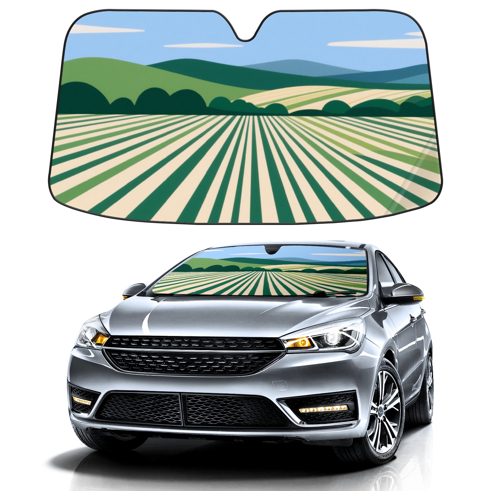 Striped Field Scenery Car Sun Shade UV Protection Foldable Sunshade for Windshield Heat Insulation Portable Sun Shield for Car Interior Protection Automotive Window Protector