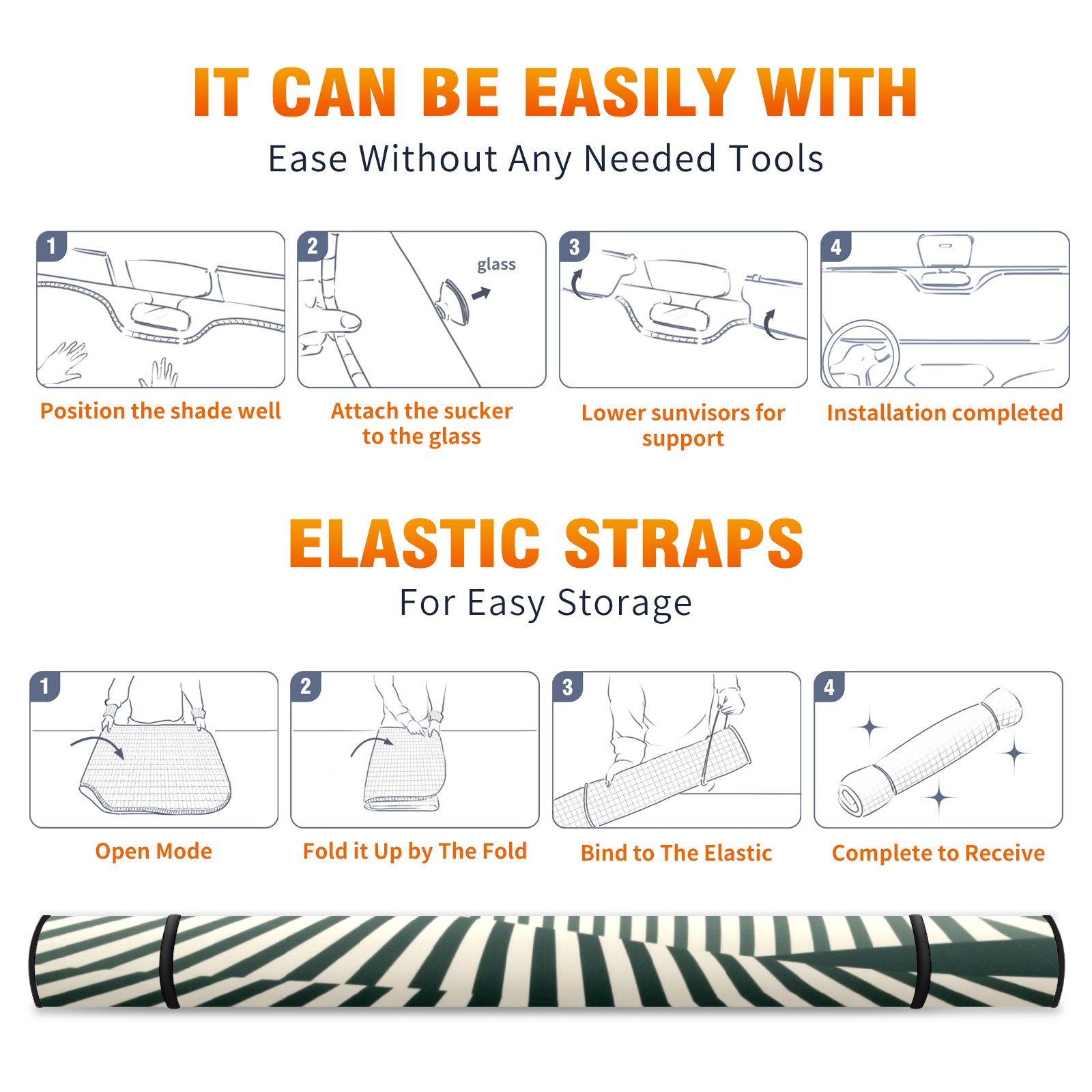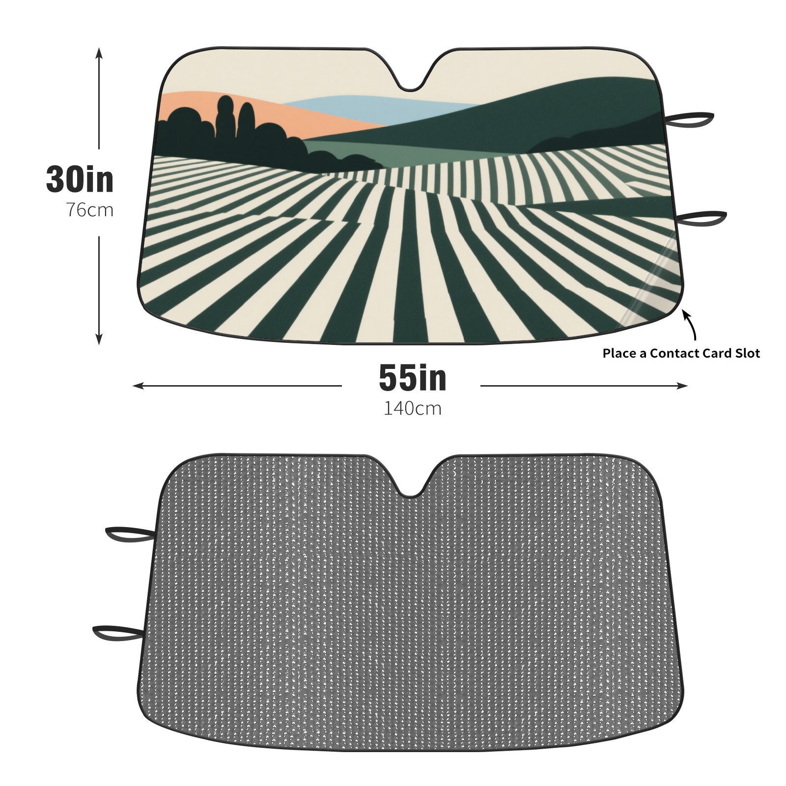 <p><b>Foldable Premium Car Windshield Sunshade is your great solution to reduce your car’s interior temperature dramatically! This is definitely a must-have item for your summer travel!</b></p><p><b>【Precision Fit, Stylish Protection】</b></p><p>55"x30" (140x76cm) universal size with 3cm flexible margins fits curved windshields of most sedans/SUVs.</p><p><b>【Blocking Uv Rays &amp; Heat Insulation】</b></p><p>Our vehicle sunshade provides effective UV, sun, and summer heat protection, preventing leather fading and plastic cracking to keep your car interior pristine.</p><p><b>【Zero-Mark Installation &amp; Space-Saving】</b></p><p>Equipped with dual scratch-free silicone suction cups + adjustable straps: Medical-grade silicone cups hold firmly yet remove cleanly. Folds to A3 size (42x30cm x &lt;2cm thick), tucks discreetly into glove compartments or door pockets.&nbsp;</p>