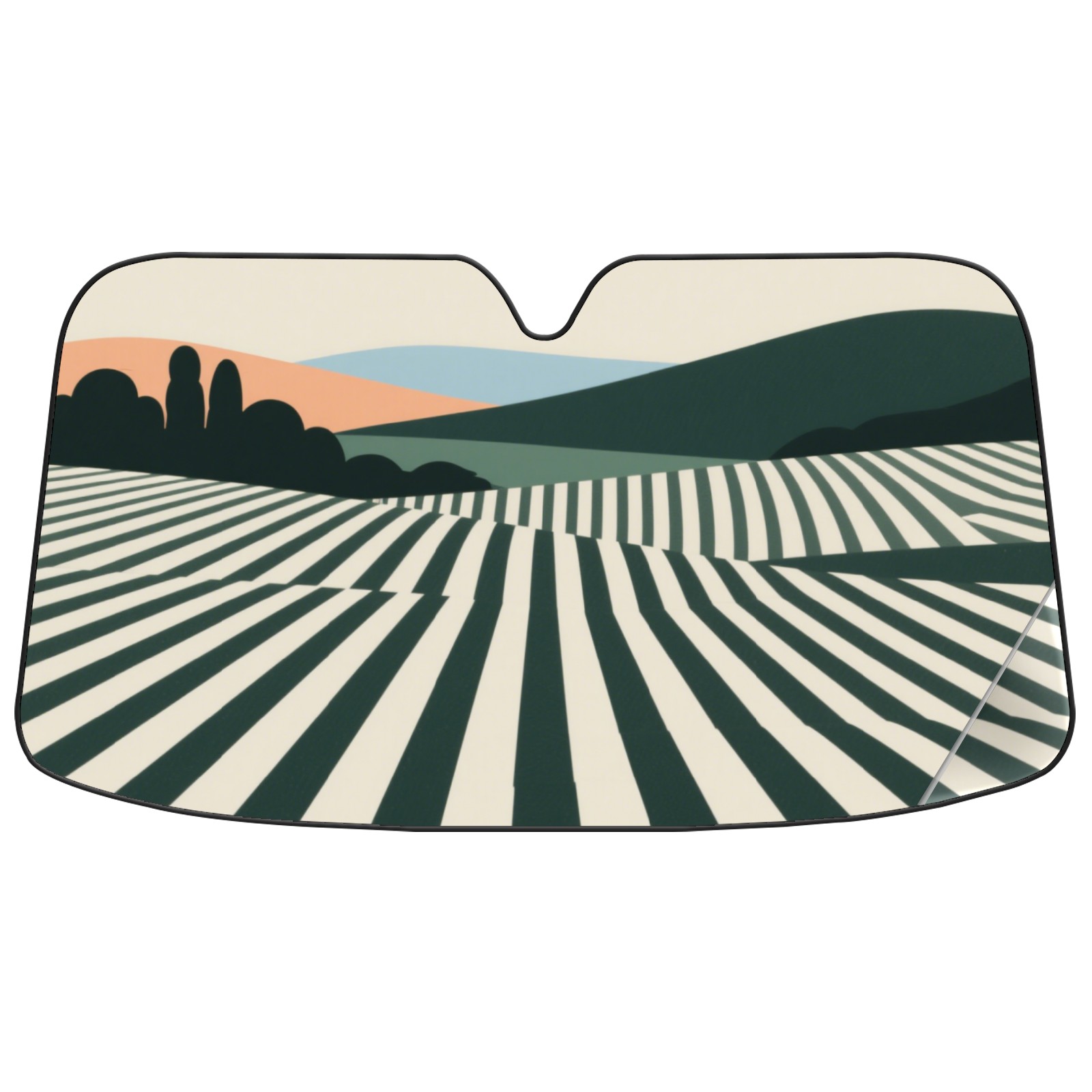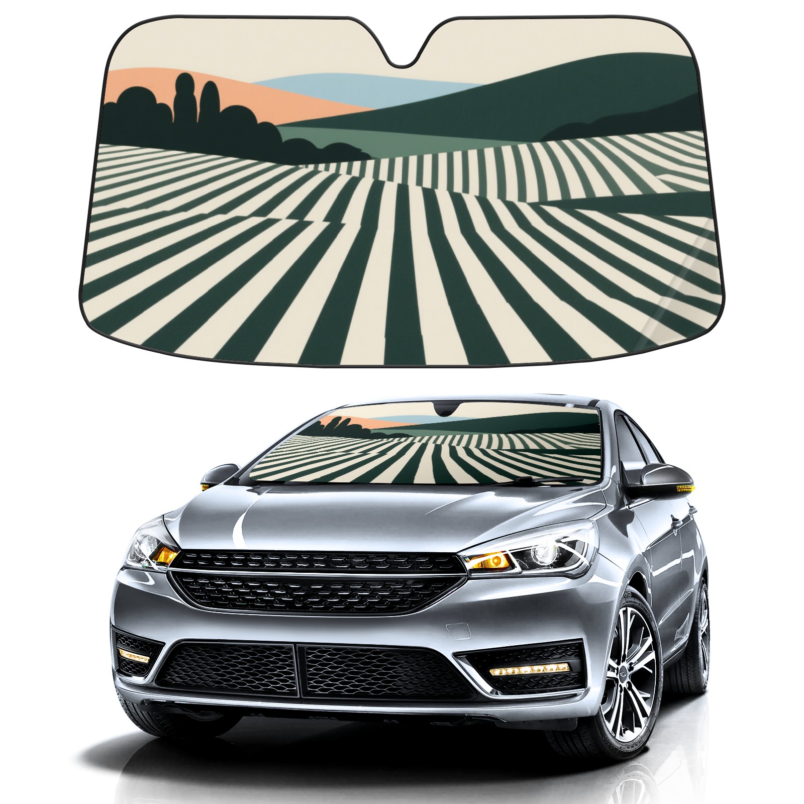 Green Striped Field Car Sun Shade UV Protection Foldable Sunshade for Windshield Heat Insulation Portable Sun Shield for Car Interior Protection Automotive Window Protector