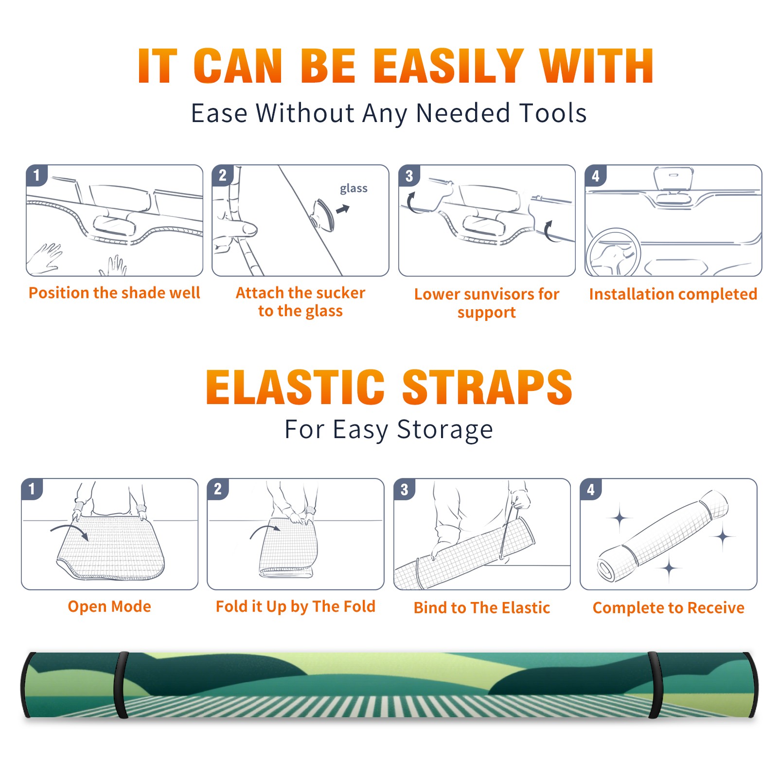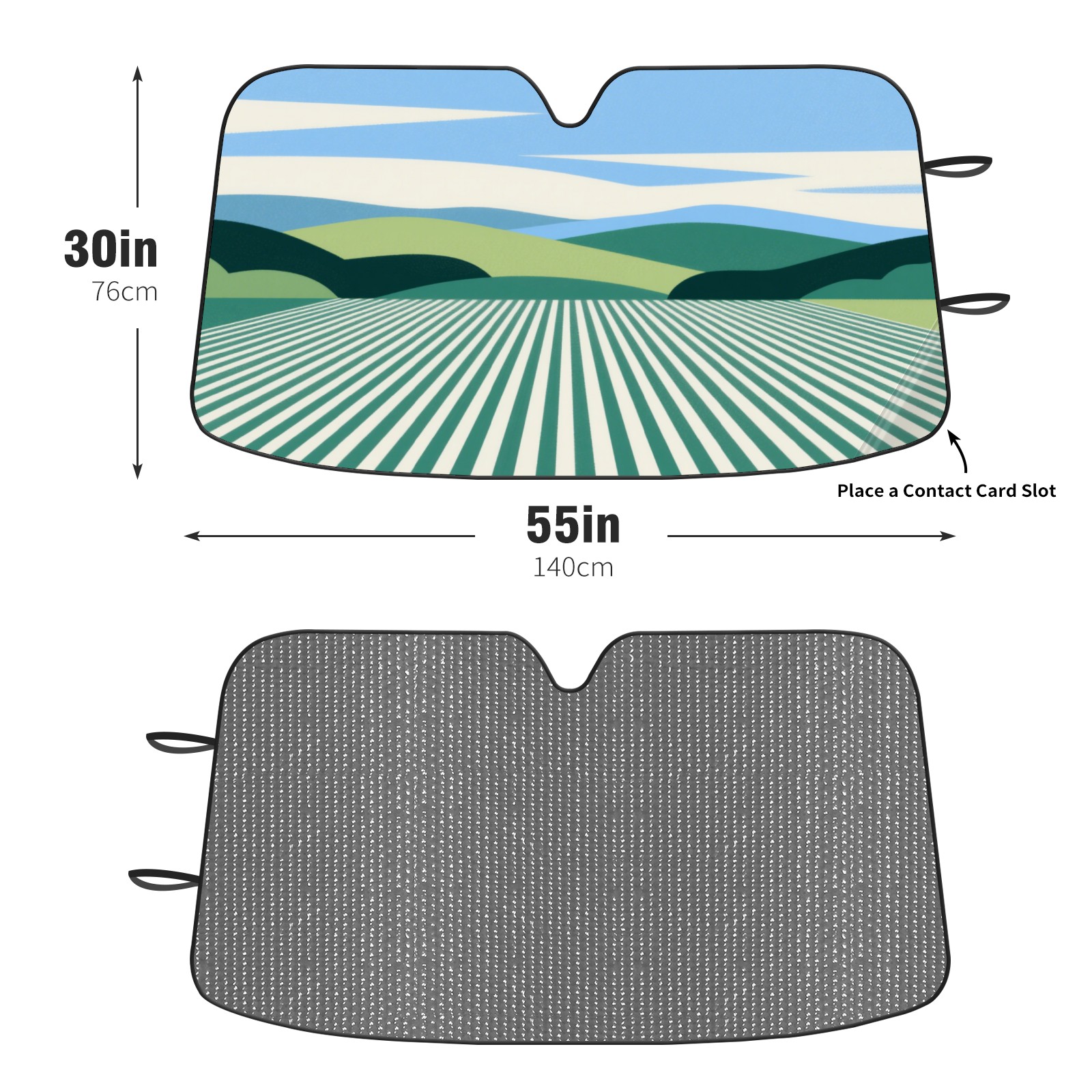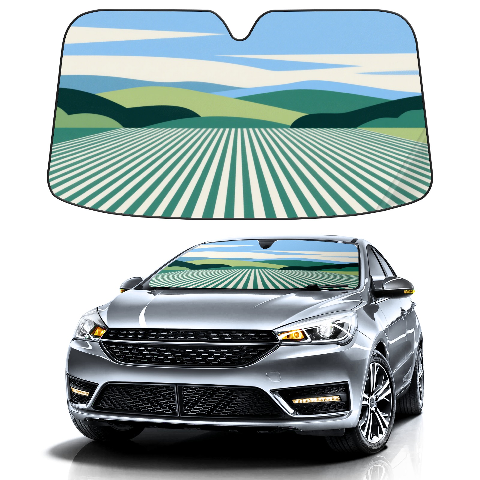 <p><b>Foldable Premium Car Windshield Sunshade is your great solution to reduce your car’s interior temperature dramatically! This is definitely a must-have item for your summer travel!</b></p><p><b>【Precision Fit, Stylish Protection】</b></p><p>55"x30" (140x76cm) universal size with 3cm flexible margins fits curved windshields of most sedans/SUVs.</p><p><b>【Blocking Uv Rays &amp; Heat Insulation】</b></p><p>Our vehicle sunshade provides effective UV, sun, and summer heat protection, preventing leather fading and plastic cracking to keep your car interior pristine.</p><p><b>【Zero-Mark Installation &amp; Space-Saving】</b></p><p>Equipped with dual scratch-free silicone suction cups + adjustable straps: Medical-grade silicone cups hold firmly yet remove cleanly. Folds to A3 size (42x30cm x &lt;2cm thick), tucks discreetly into glove compartments or door pockets.&nbsp;</p>