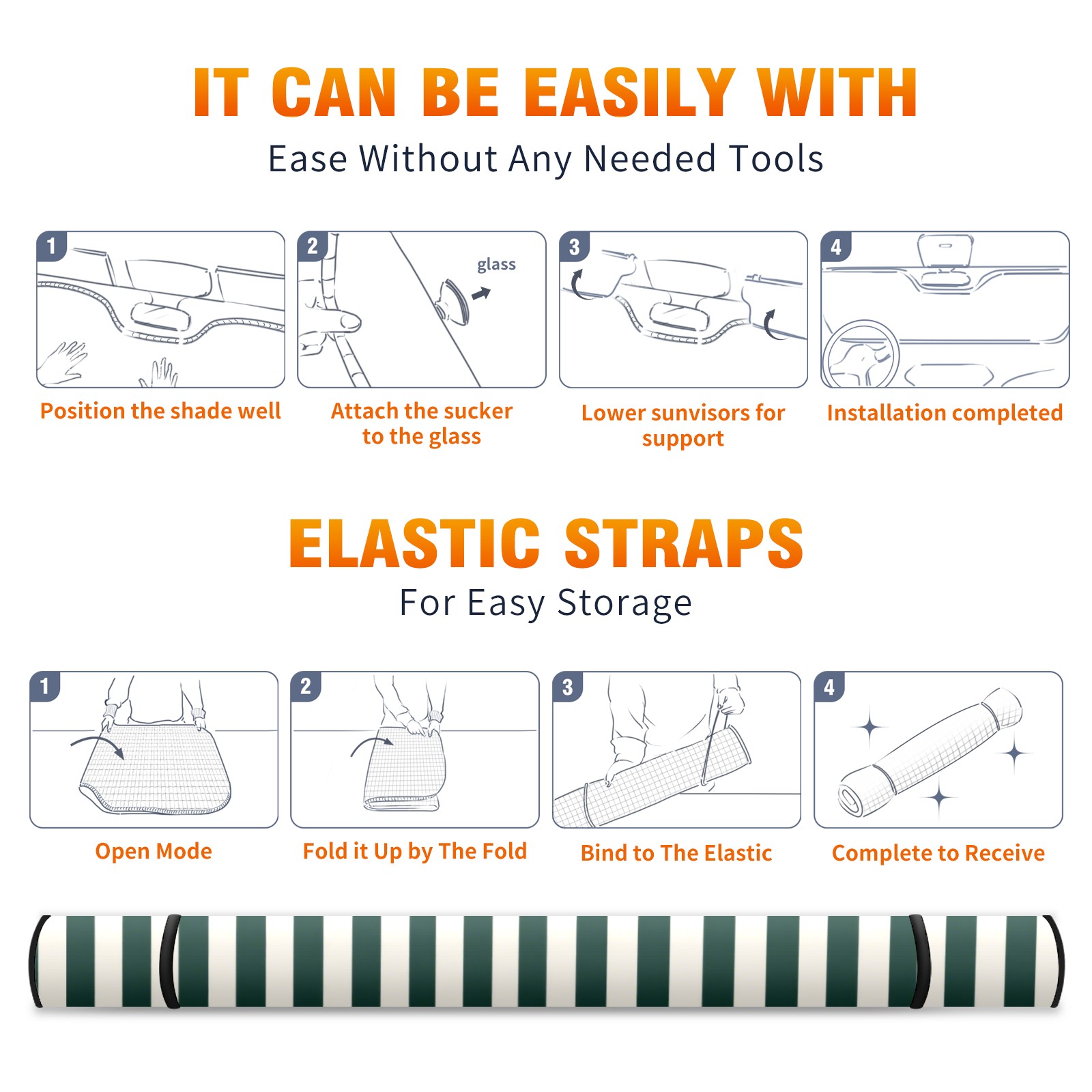 <p><b>Foldable Premium Car Windshield Sunshade is your great solution to reduce your car’s interior temperature dramatically! This is definitely a must-have item for your summer travel!</b></p><p><b>【Precision Fit, Stylish Protection】</b></p><p>55"x30" (140x76cm) universal size with 3cm flexible margins fits curved windshields of most sedans/SUVs.</p><p><b>【Blocking Uv Rays &amp; Heat Insulation】</b></p><p>Our vehicle sunshade provides effective UV, sun, and summer heat protection, preventing leather fading and plastic cracking to keep your car interior pristine.</p><p><b>【Zero-Mark Installation &amp; Space-Saving】</b></p><p>Equipped with dual scratch-free silicone suction cups + adjustable straps: Medical-grade silicone cups hold firmly yet remove cleanly. Folds to A3 size (42x30cm x &lt;2cm thick), tucks discreetly into glove compartments or door pockets.&nbsp;</p>