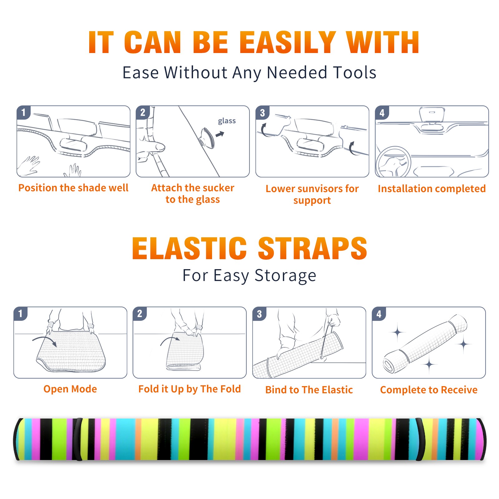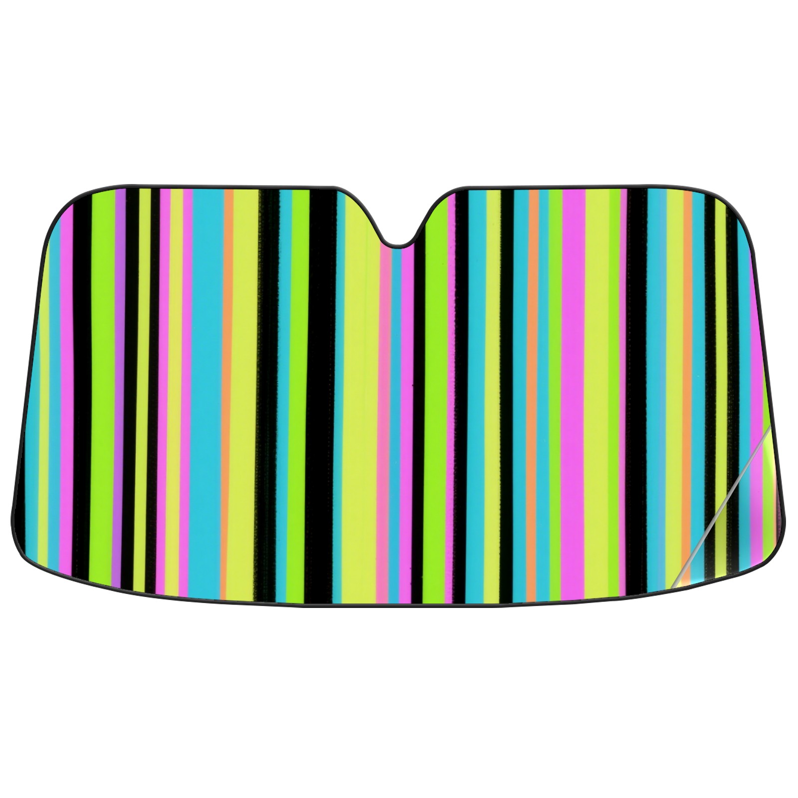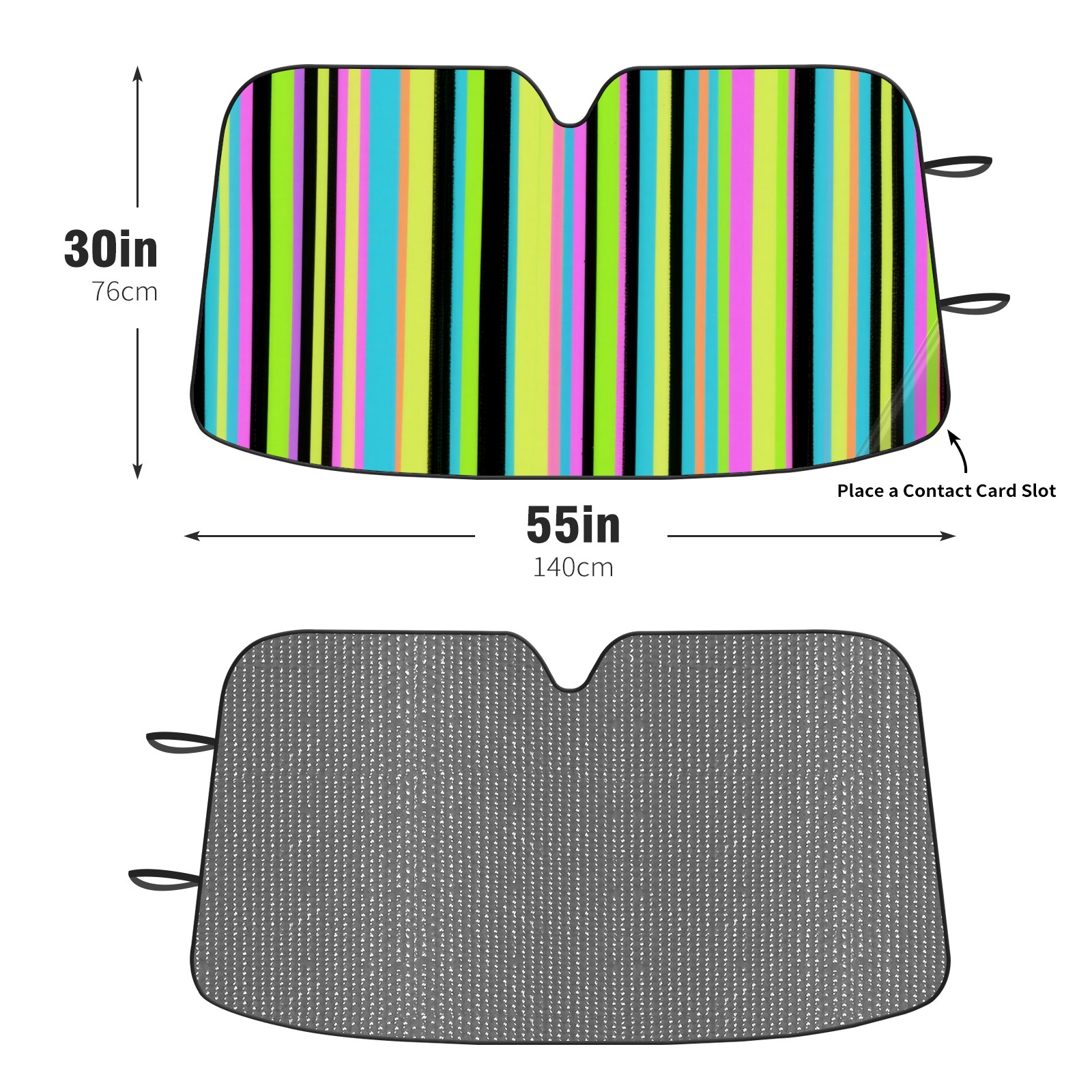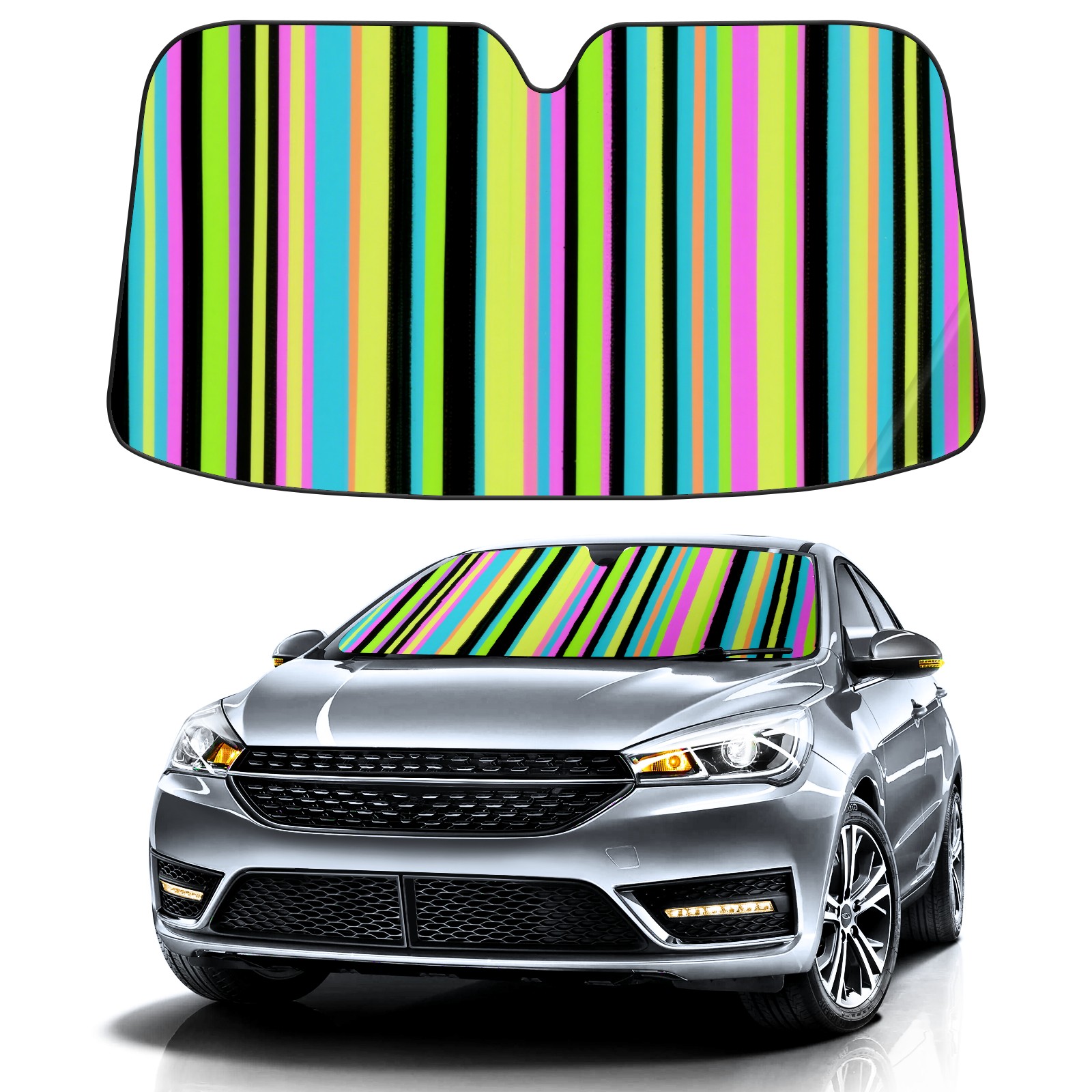 Colorful Vertical Stripes Car Sun Shade UV Protection Foldable Sunshade for Windshield Heat Insulation Portable Sun Shield for Car Interior Protection Automotive Window Protector