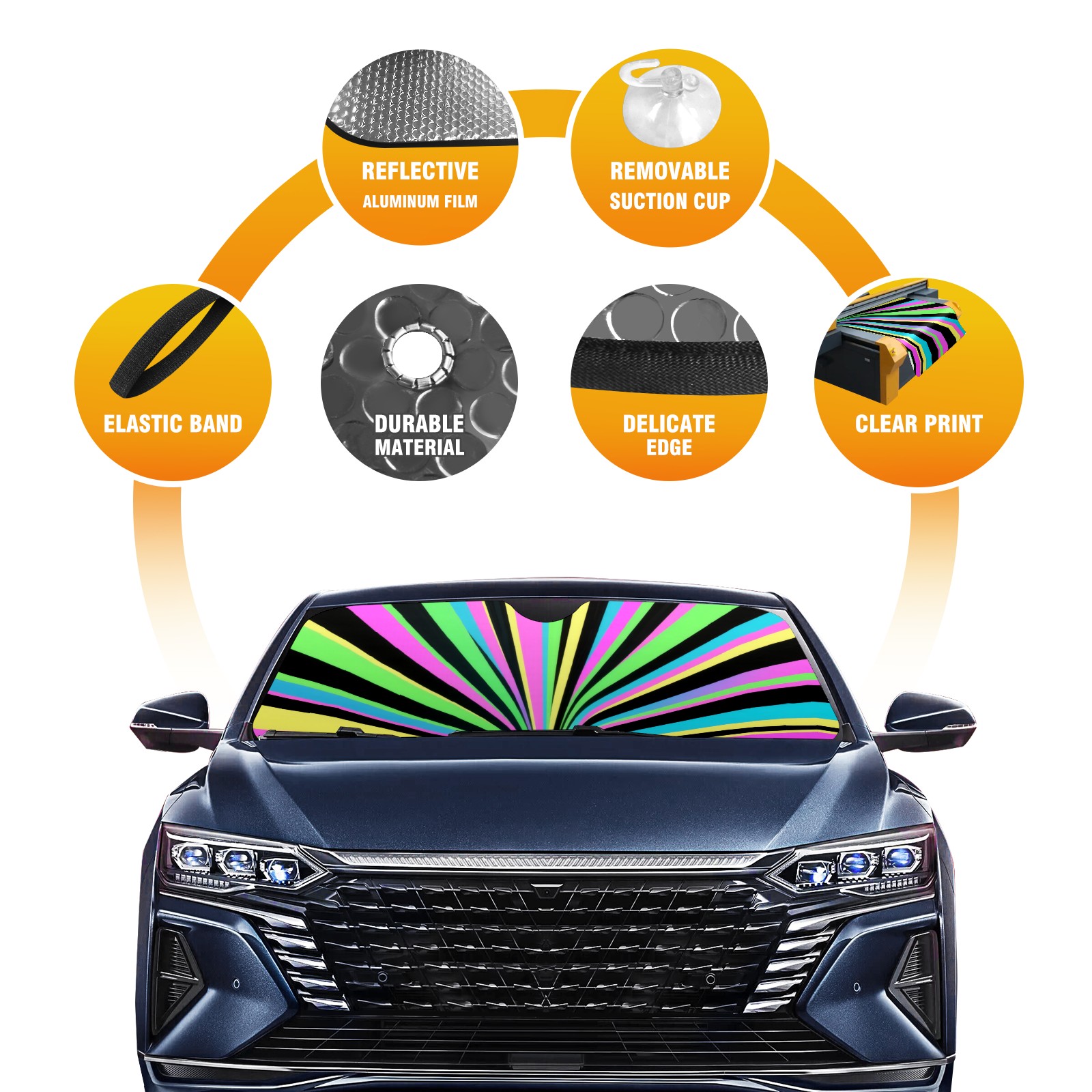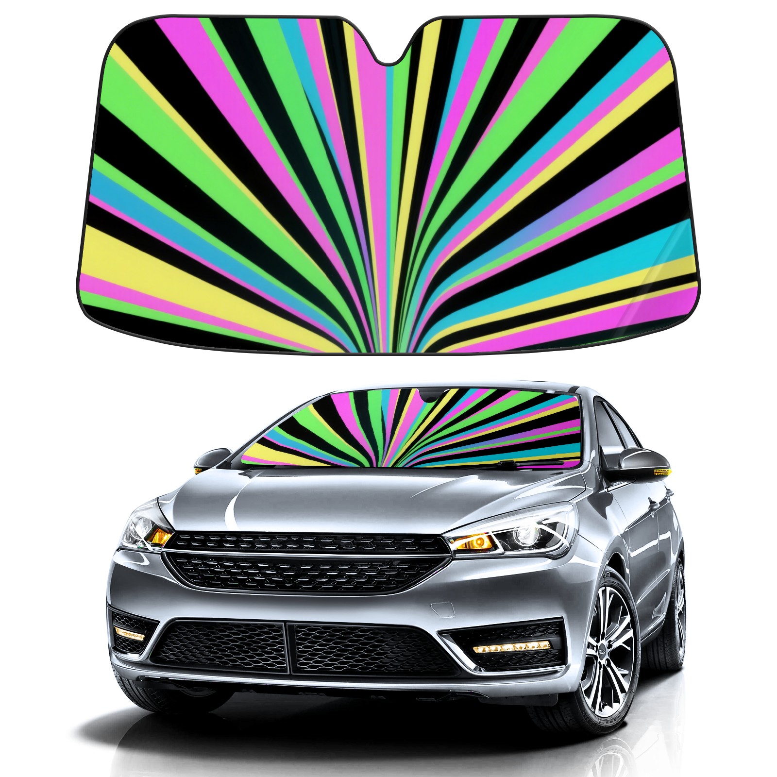 Color Center Stripe Car Sun Shade UV Protection Foldable Sunshade for Windshield Heat Insulation Portable Sun Shield for Car Interior Protection Automotive Window Protector