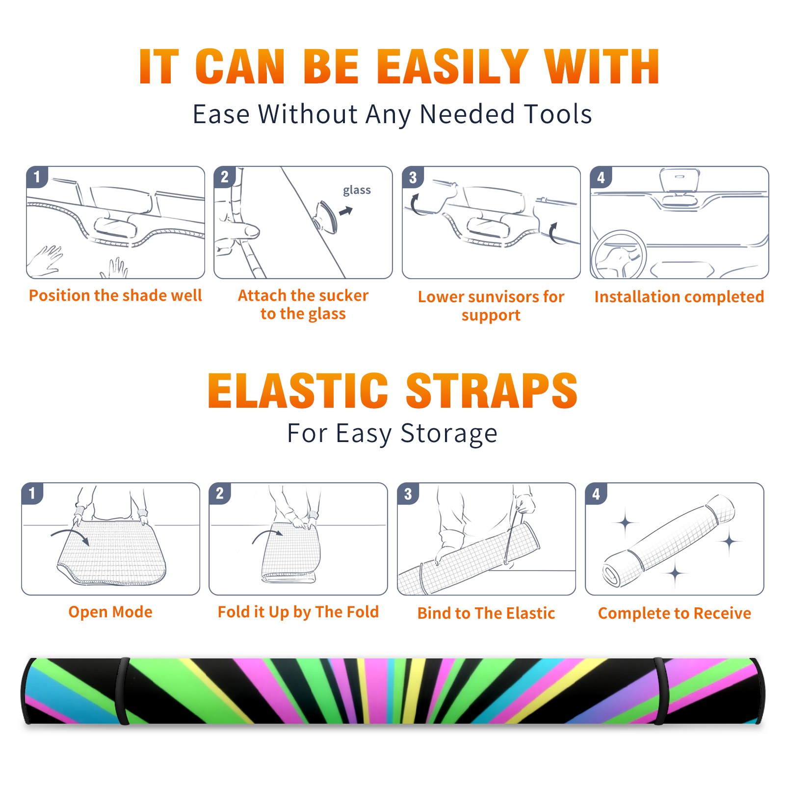 <p><b>Foldable Premium Car Windshield Sunshade is your great solution to reduce your car’s interior temperature dramatically! This is definitely a must-have item for your summer travel!</b></p><p><b>【Precision Fit, Stylish Protection】</b></p><p>55"x30" (140x76cm) universal size with 3cm flexible margins fits curved windshields of most sedans/SUVs.</p><p><b>【Blocking Uv Rays &amp; Heat Insulation】</b></p><p>Our vehicle sunshade provides effective UV, sun, and summer heat protection, preventing leather fading and plastic cracking to keep your car interior pristine.</p><p><b>【Zero-Mark Installation &amp; Space-Saving】</b></p><p>Equipped with dual scratch-free silicone suction cups + adjustable straps: Medical-grade silicone cups hold firmly yet remove cleanly. Folds to A3 size (42x30cm x &lt;2cm thick), tucks discreetly into glove compartments or door pockets.&nbsp;</p>