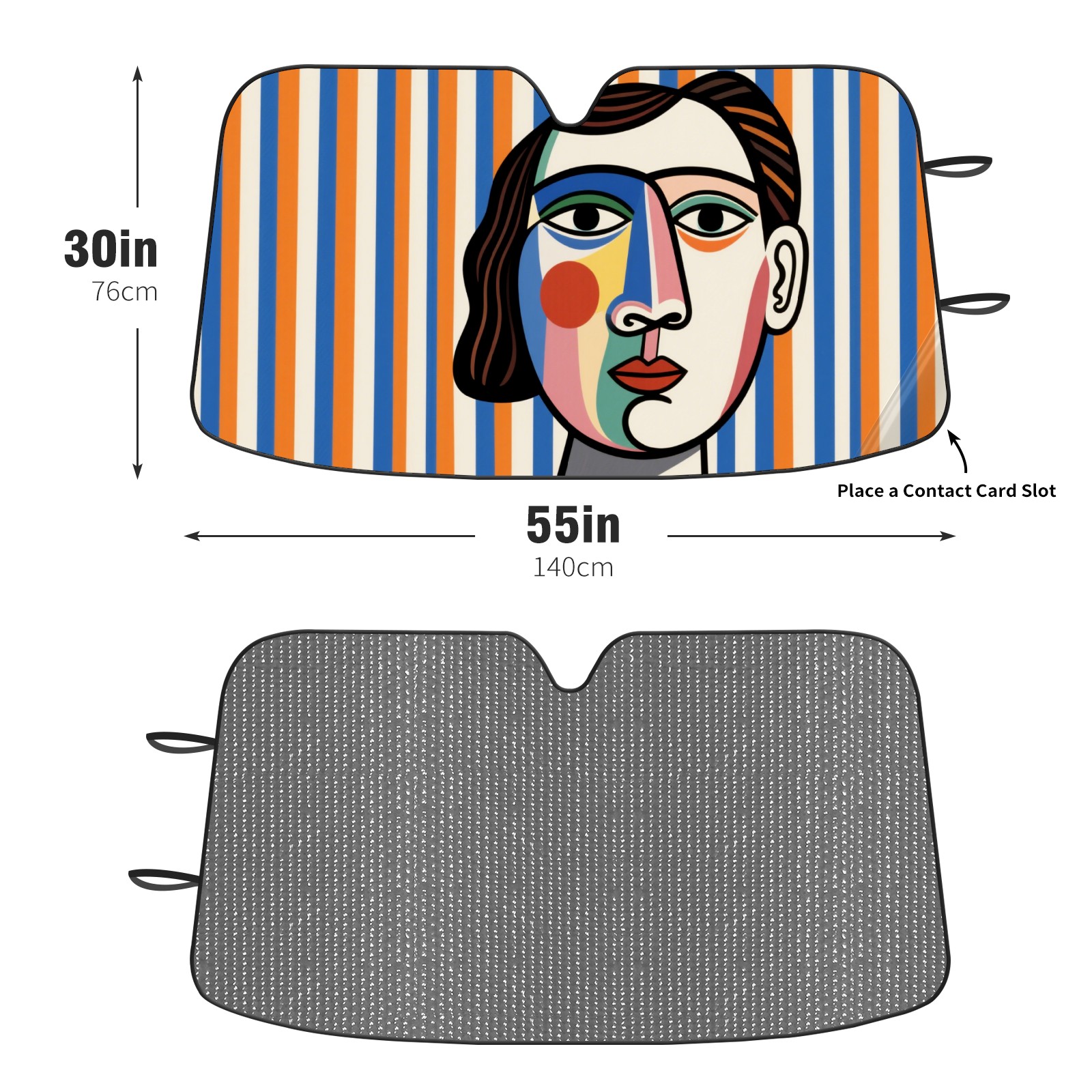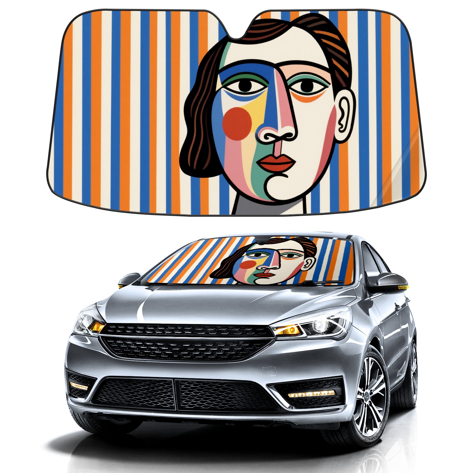 Abstract Woman With Vertical Stripes Car Sun Shade UV Protection Foldable Sunshade for Windshield Heat Insulation Portable Sun Shield for Car Interior Protection Automotive Window Protector