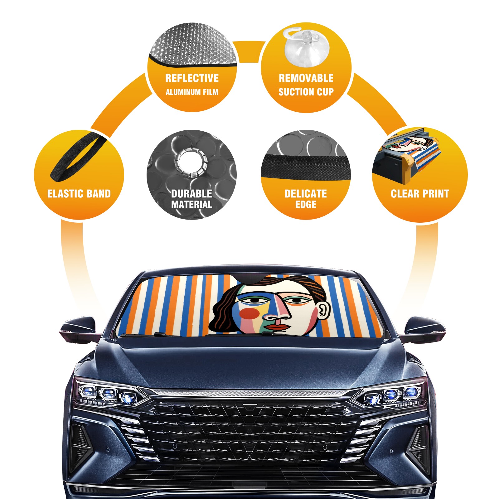 <p><b>Foldable Premium Car Windshield Sunshade is your great solution to reduce your car’s interior temperature dramatically! This is definitely a must-have item for your summer travel!</b></p><p><b>【Precision Fit, Stylish Protection】</b></p><p>55"x30" (140x76cm) universal size with 3cm flexible margins fits curved windshields of most sedans/SUVs.</p><p><b>【Blocking Uv Rays &amp; Heat Insulation】</b></p><p>Our vehicle sunshade provides effective UV, sun, and summer heat protection, preventing leather fading and plastic cracking to keep your car interior pristine.</p><p><b>【Zero-Mark Installation &amp; Space-Saving】</b></p><p>Equipped with dual scratch-free silicone suction cups + adjustable straps: Medical-grade silicone cups hold firmly yet remove cleanly. Folds to A3 size (42x30cm x &lt;2cm thick), tucks discreetly into glove compartments or door pockets.&nbsp;</p>