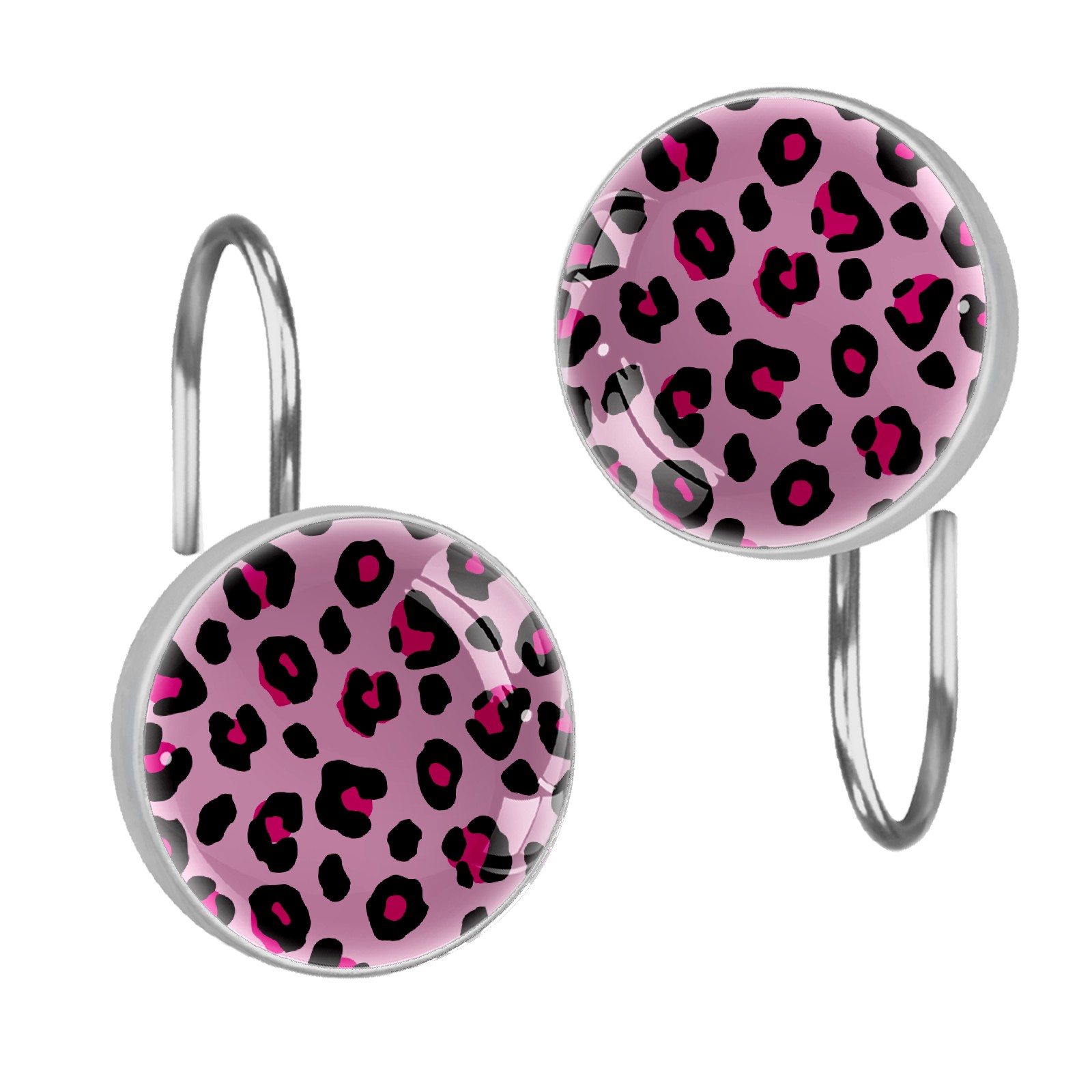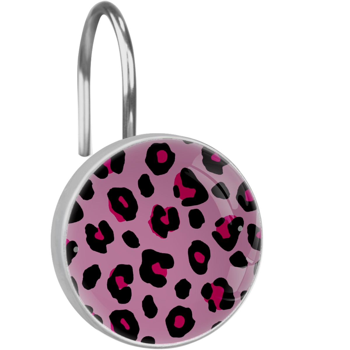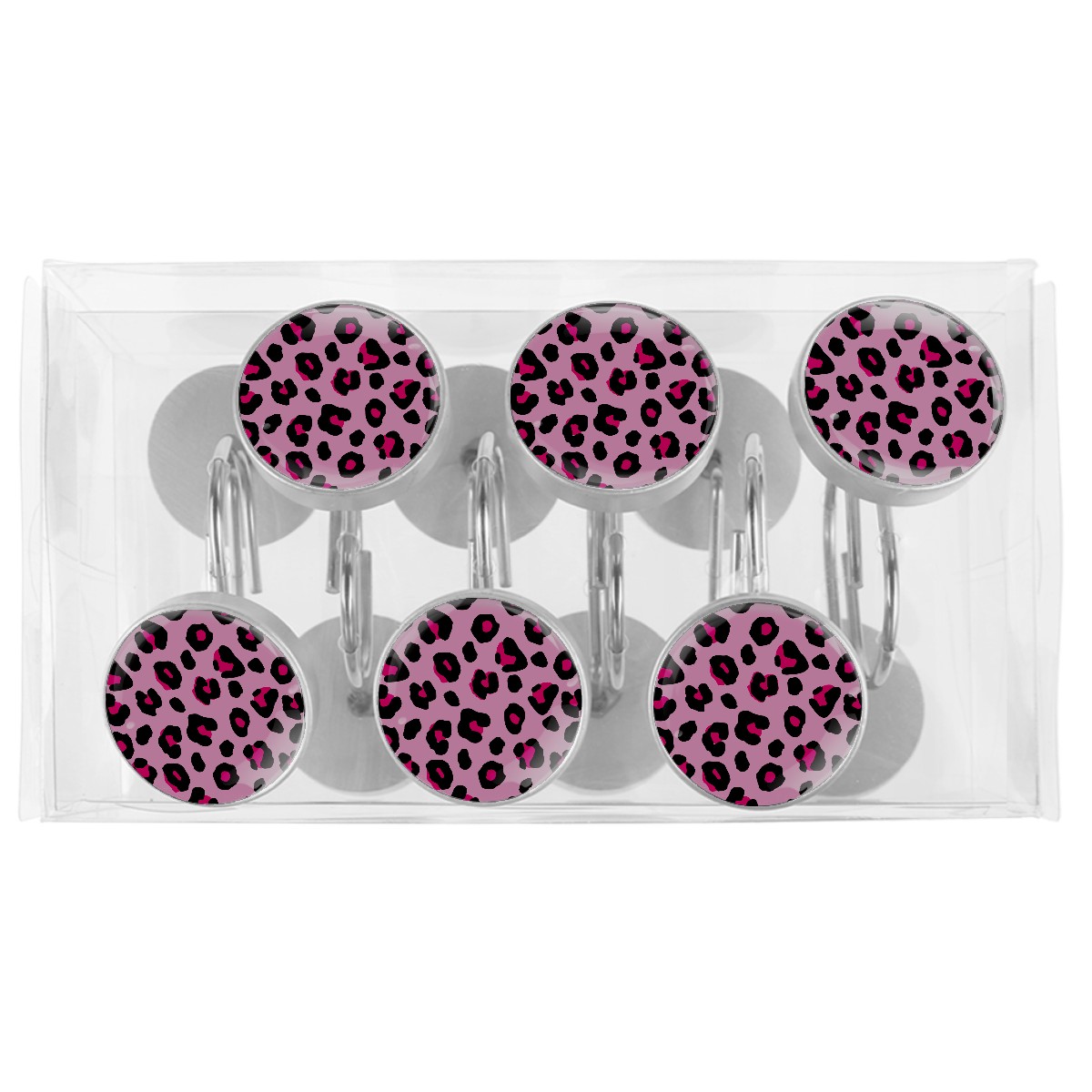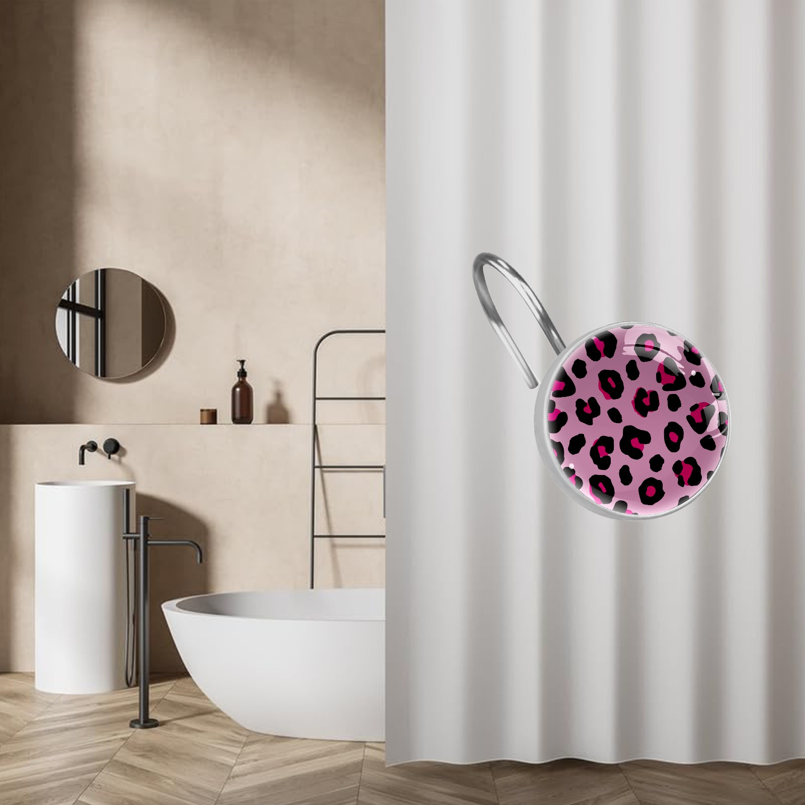 Decorative Pink Leopard Skin Texture Shower Curtain Hooks 12pcs Crystal Glass Rustproof Shower Hooks for Bathroom Home Decor Stainless Steel Resin Shower Curtain Rings