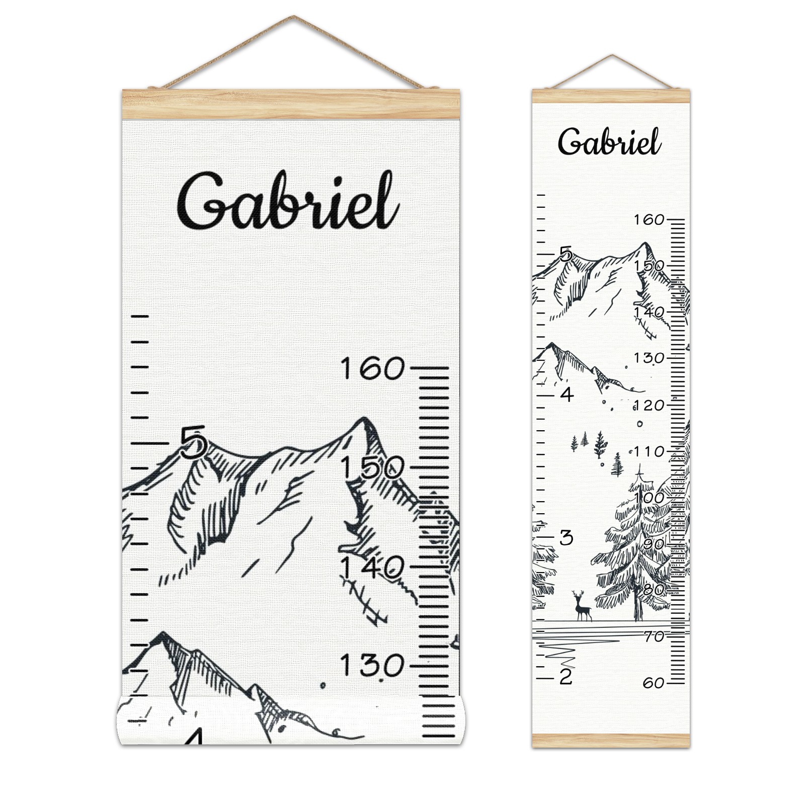 Personalized Kids Name Growth Chart Ruler for Wall Wood Frame Canvas Height Measure Chart 13.4x56 in Hanging Growth Chart Winter Mountain4.11 Boys Girls Room Decor