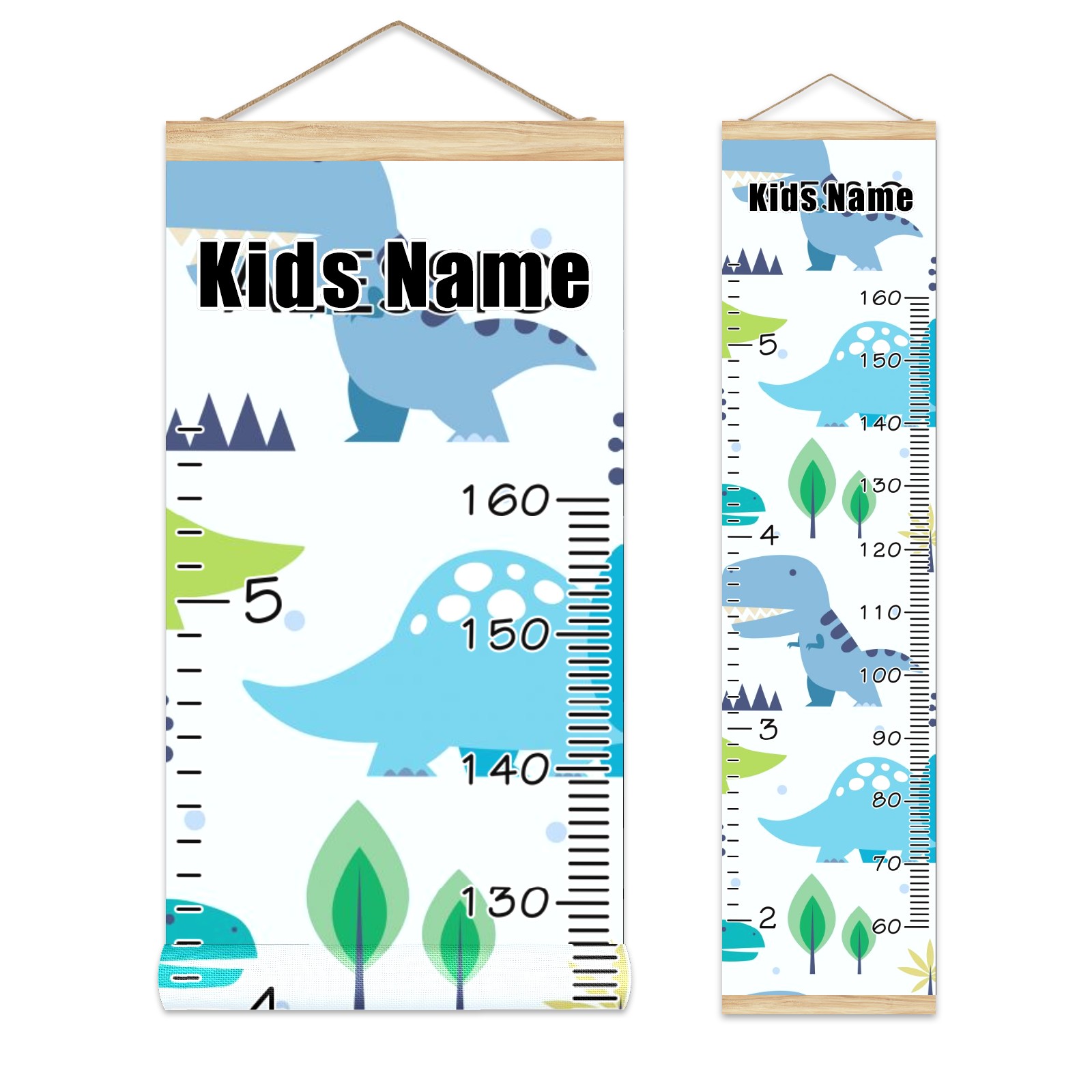 Personalized Kids Name Growth Chart Ruler for Wall Wood Frame Canvas Height Measure Chart 13.4x56 in Hanging Growth Chart Cute Dinosaur4.11 Boys Girls Room Decor