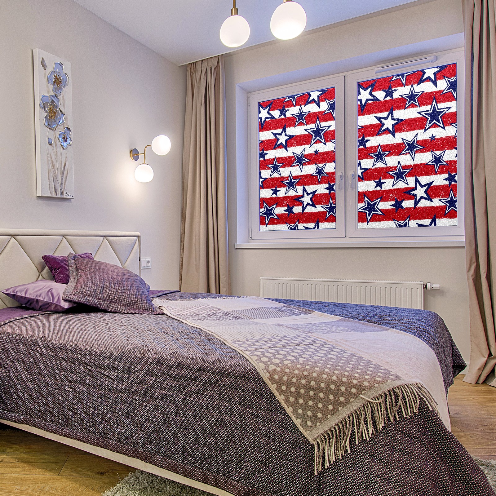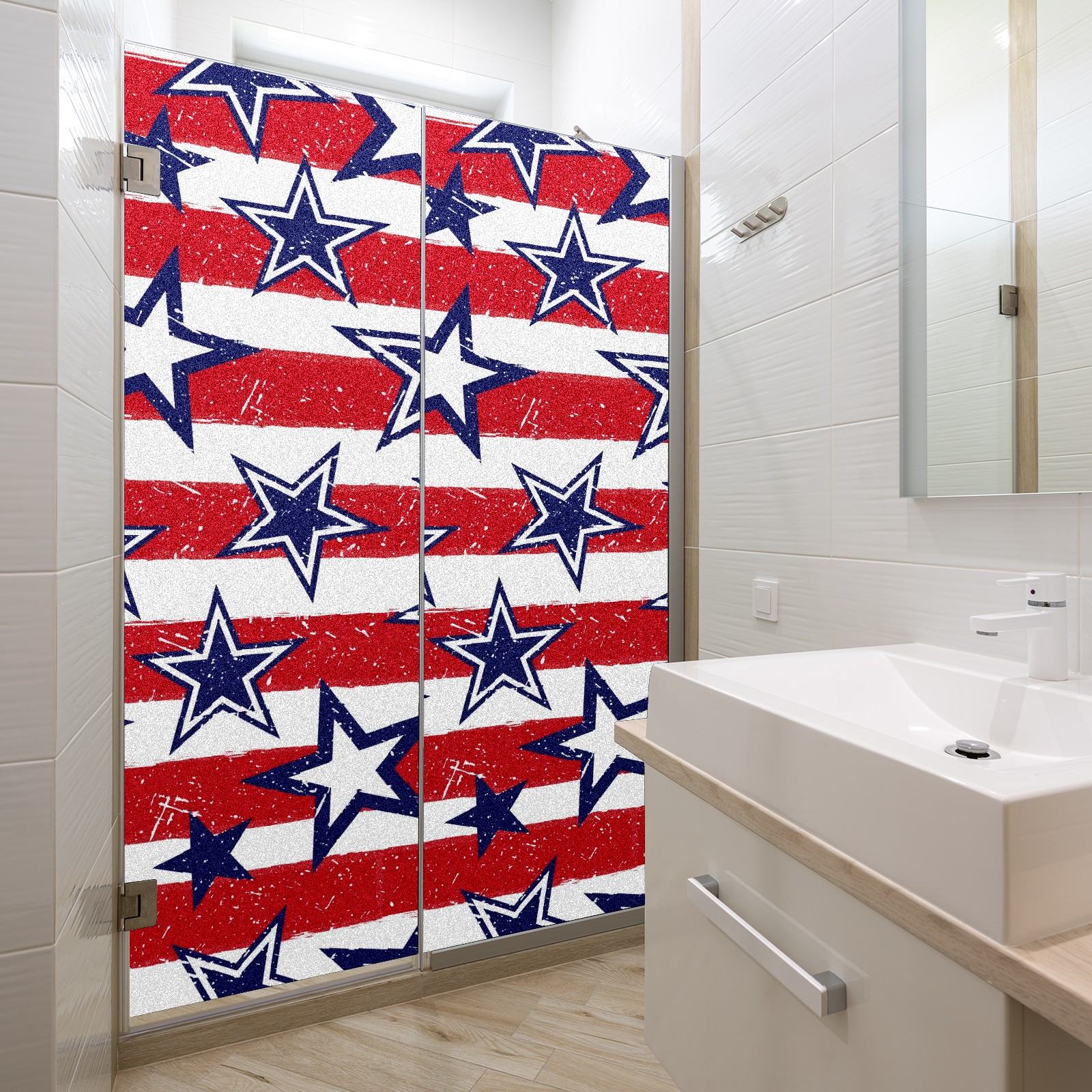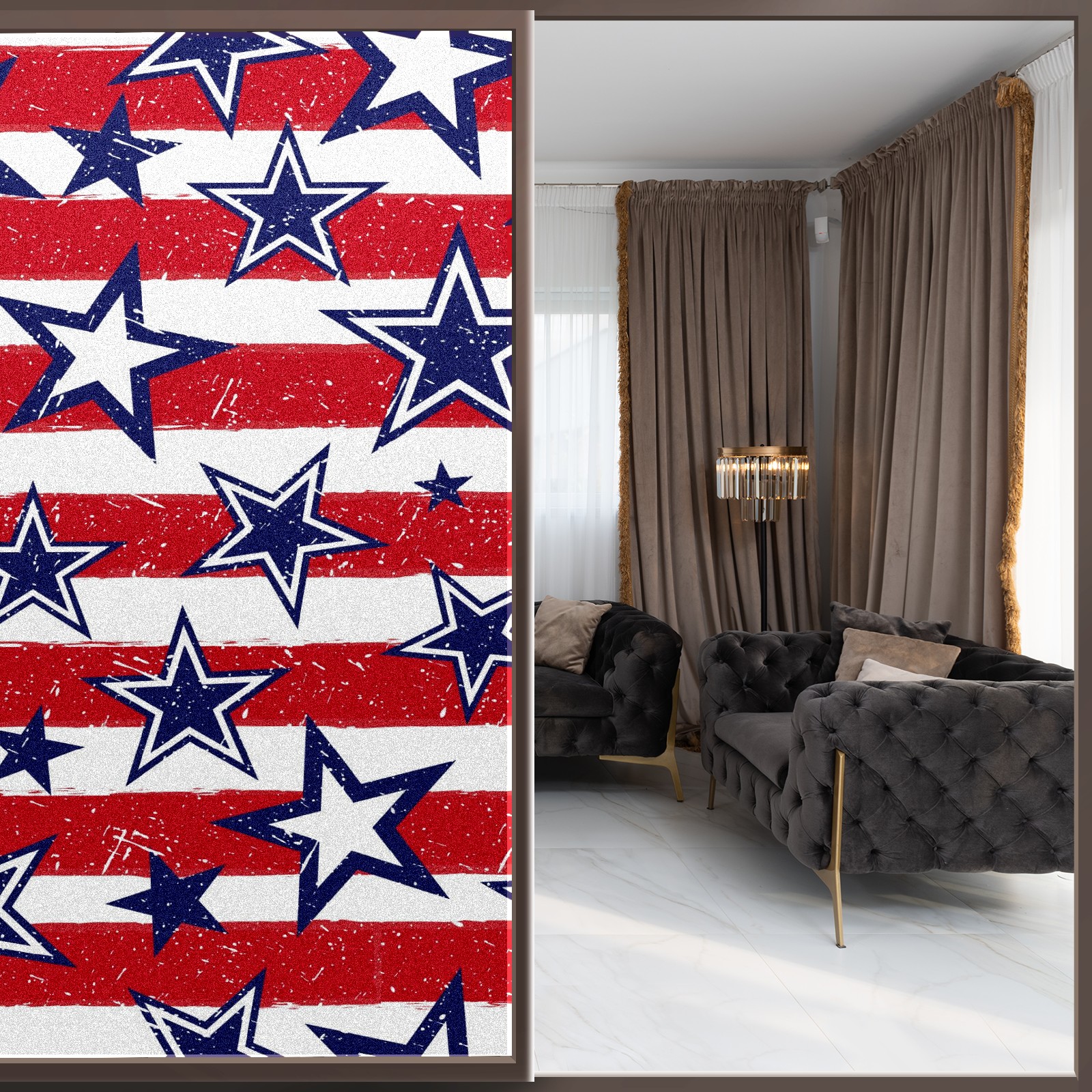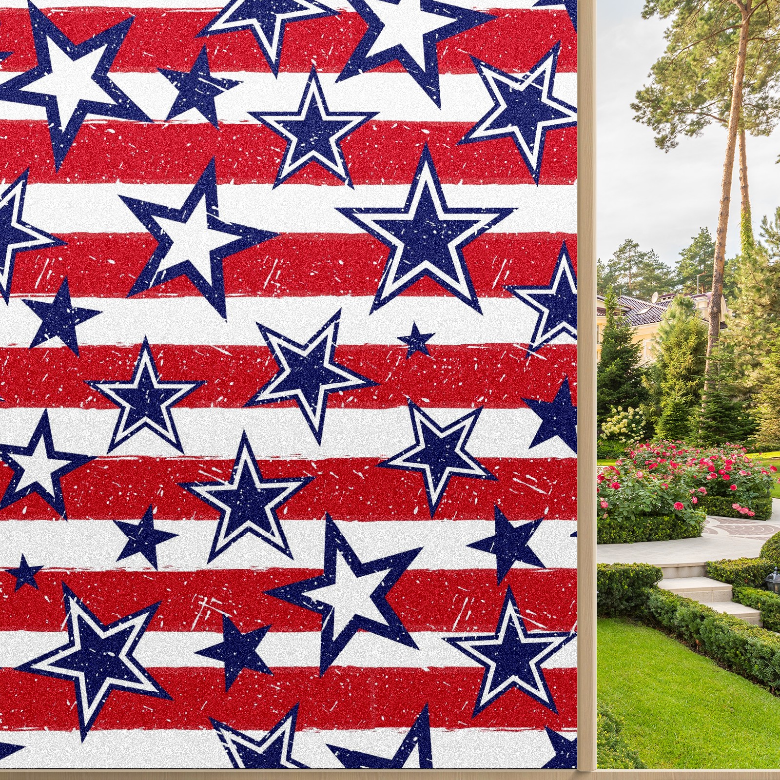 Window Privacy Film Frosted Stained Glass Film Decorative Static Cling for Bathroom Home Office Peel and Stick Window Film American Flag Stripe(17.7x23.6in)