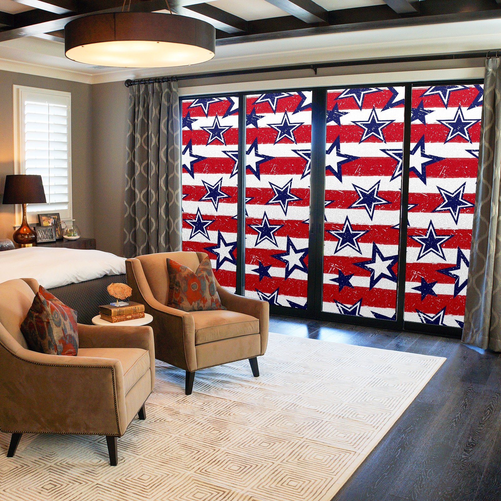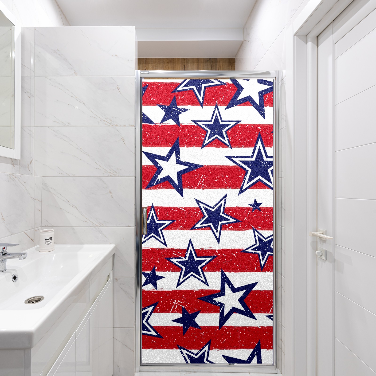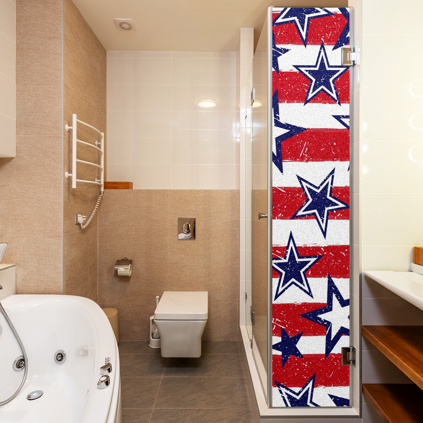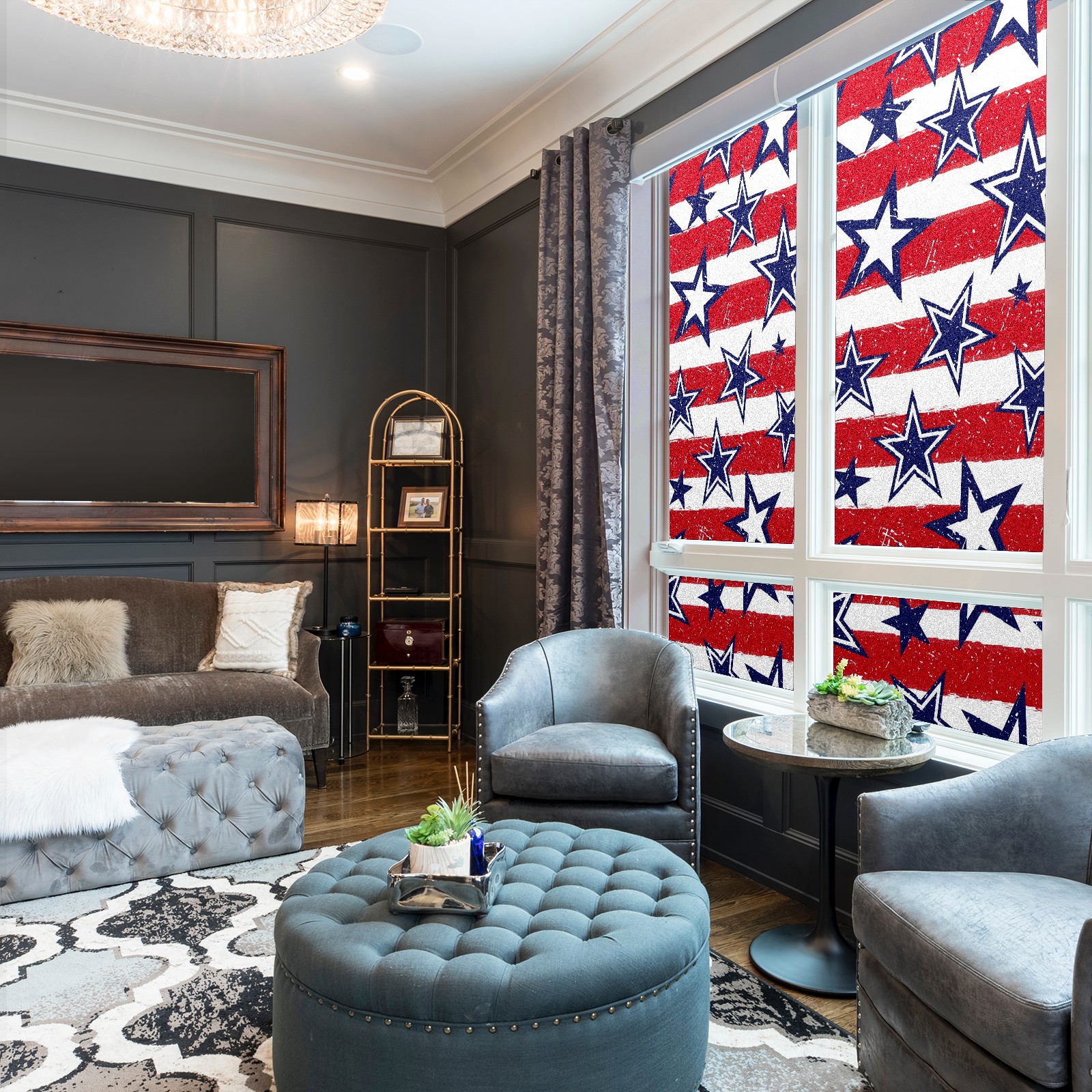 Window Privacy Film Frosted Stained Glass Film Decorative Static Cling for Bathroom Home Office Peel and Stick Window Film American Flag Stripe(17.7x23.6in)
