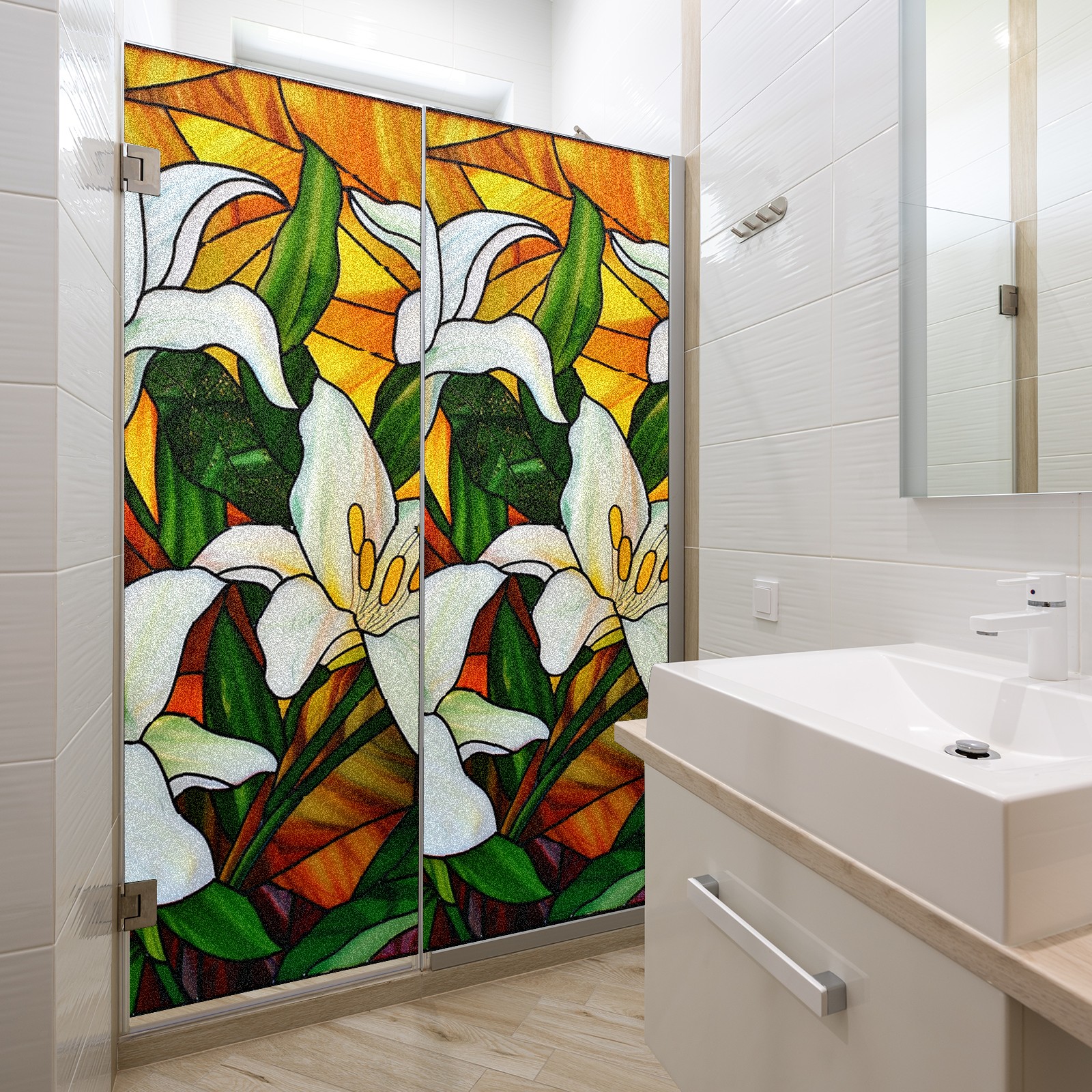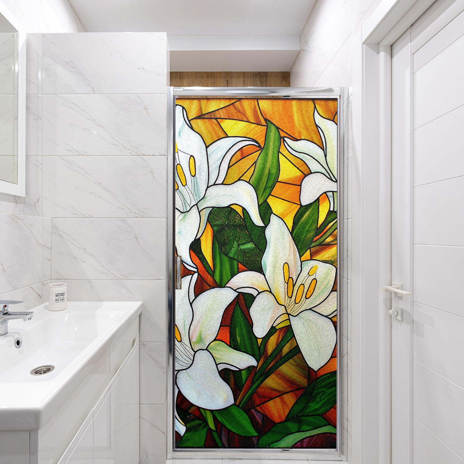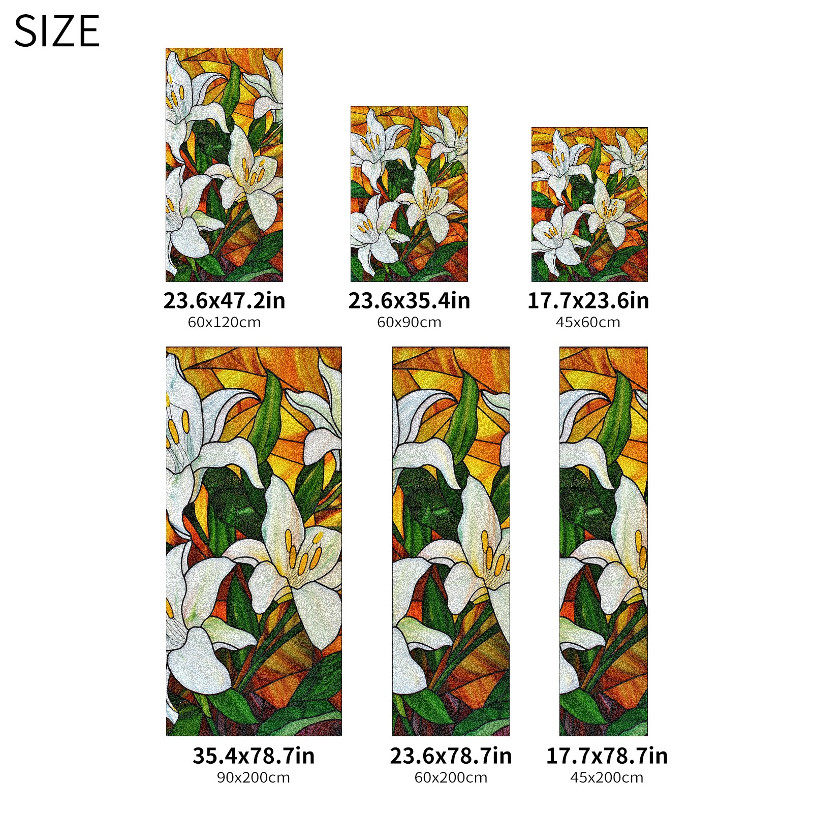 Window Privacy Film Frosted Stained Glass Film Decorative Static Cling for Bathroom Home Office Peel and Stick Window Film White Lilies (1)(17.7x23.6in)