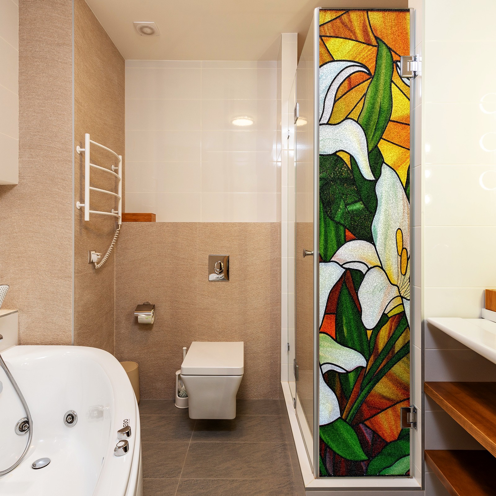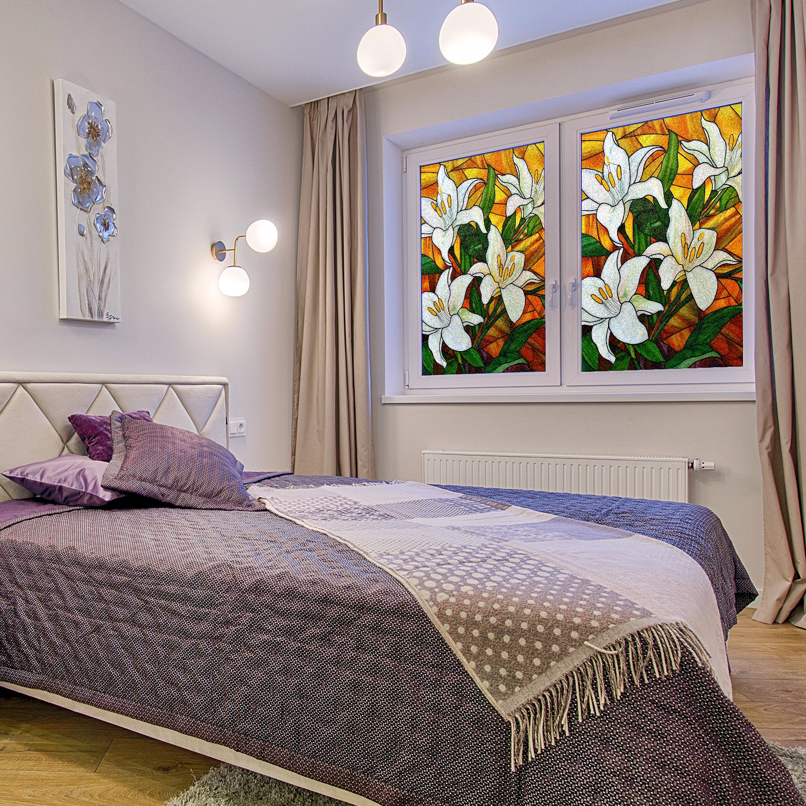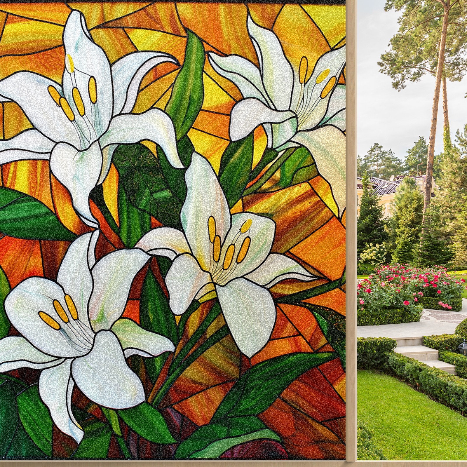 Window Privacy Film Frosted Stained Glass Film Decorative Static Cling for Bathroom Home Office Peel and Stick Window Film White Lilies (1)(17.7x23.6in)