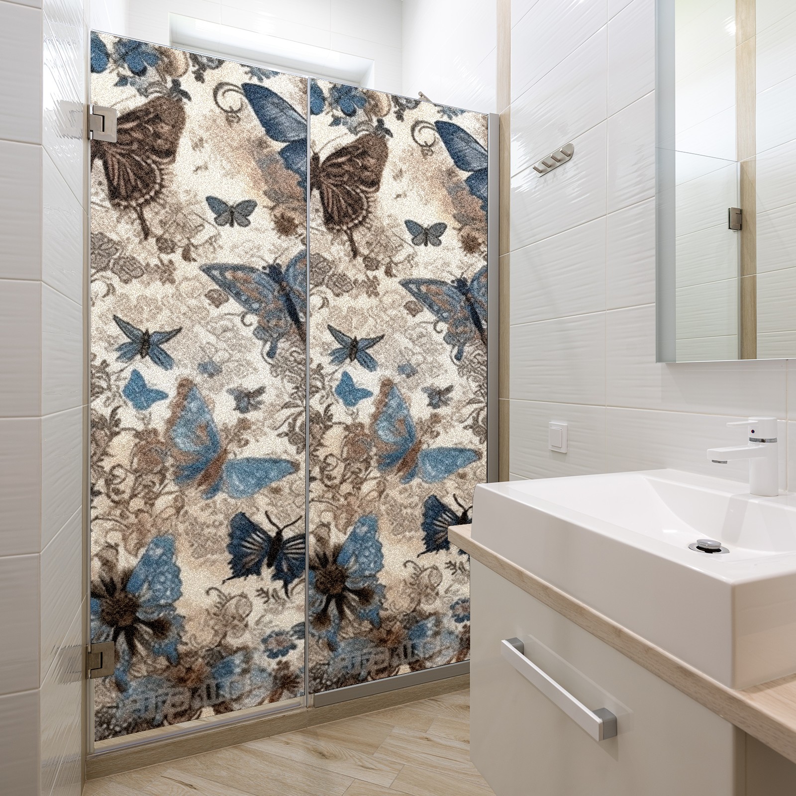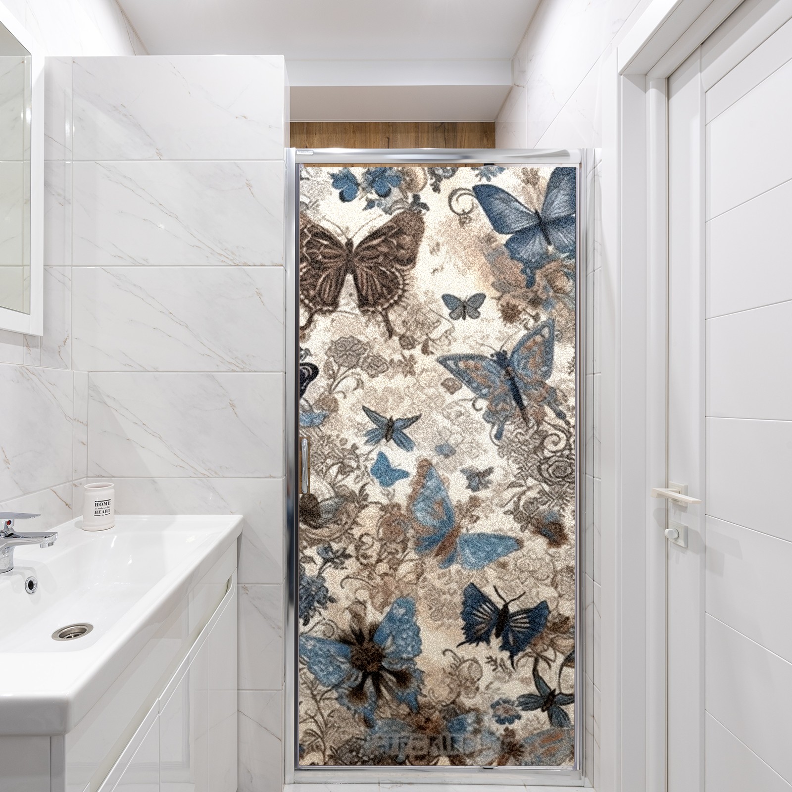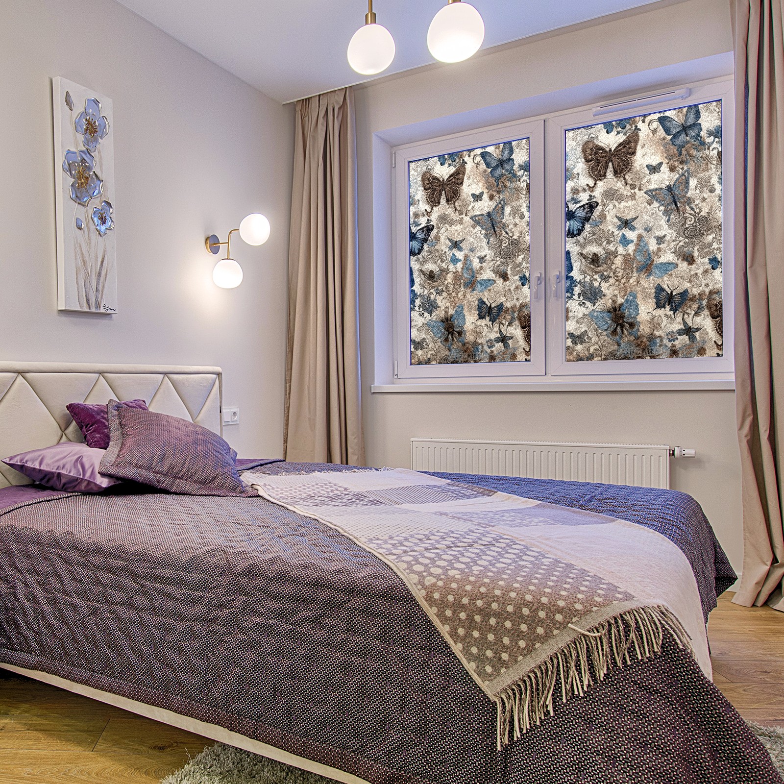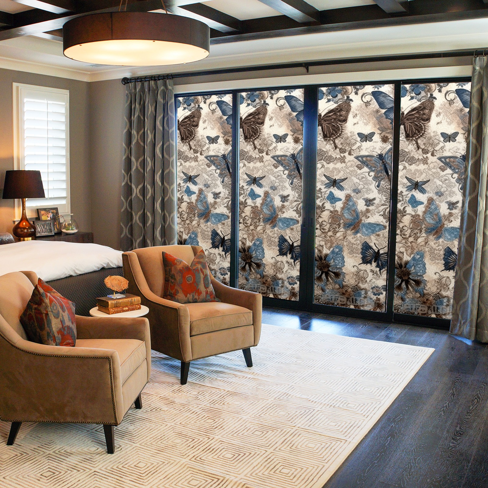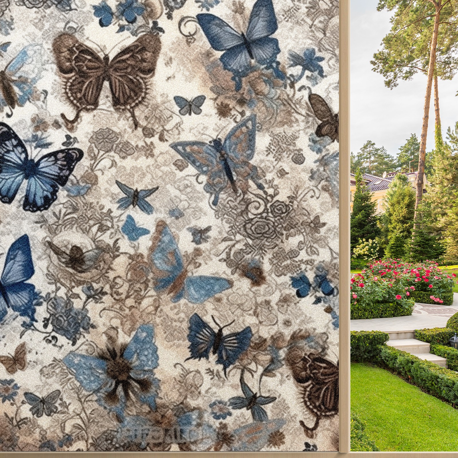 Window Privacy Film Frosted Stained Glass Film Decorative Static Cling for Bathroom Home Office Peel and Stick Window Film Vintage Butterfly (2)(17.7x23.6in)