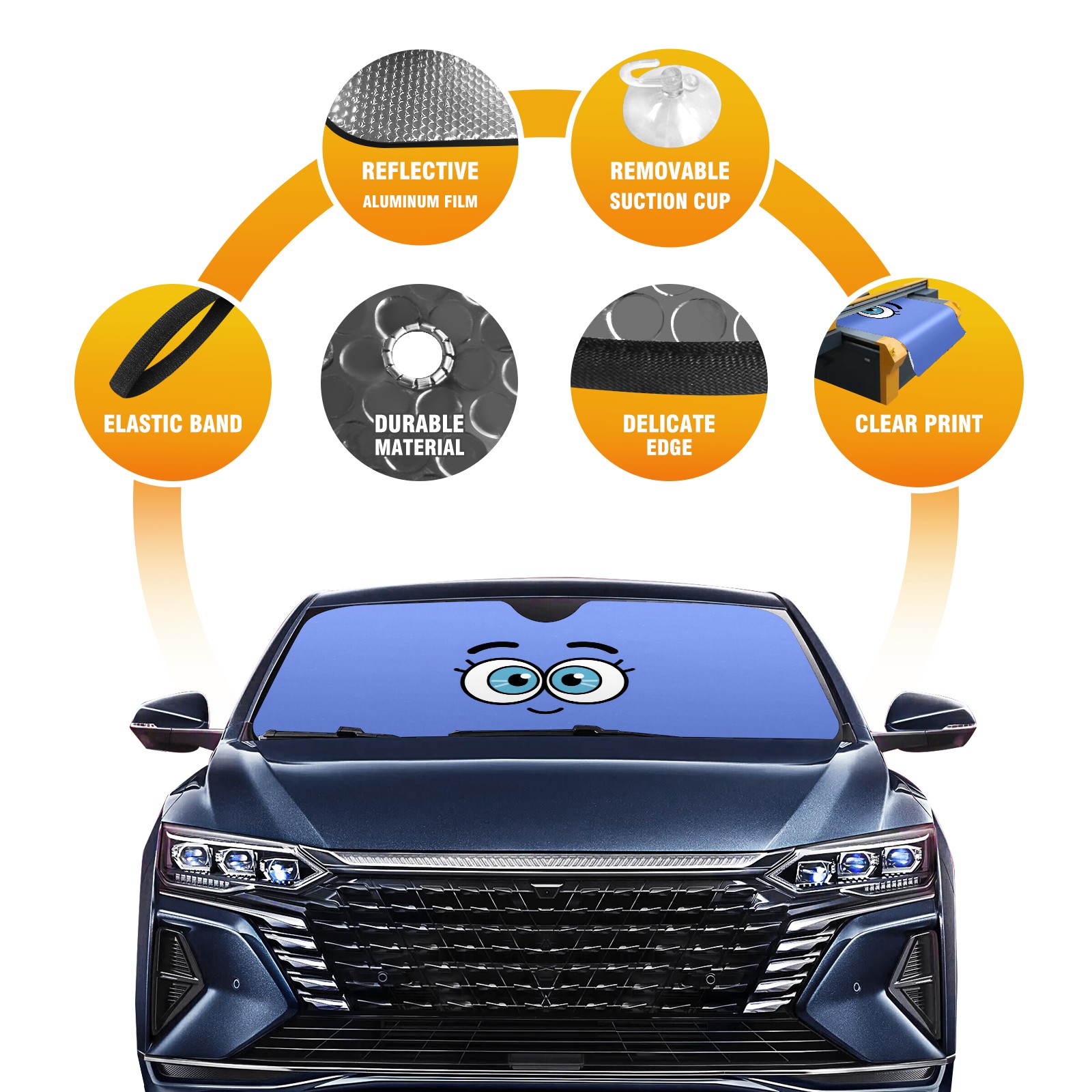 • <p><b>Foldable Premium Car Windshield Sunshade is your great solution to reduce your car’s interior temperature dramatically! This is definitely a must-have item for your summer travel!</b></p><p><b>【Precision Fit, Stylish Protection】</b></p><p>55"x30" (140x76cm) universal size with 3cm flexible margins fits curved windshields of most sedans/SUVs.</p><p><b>【Blocking Uv Rays &amp; Heat Insulation】</b></p><p>Our vehicle sunshade provides effective UV, sun, and summer heat protection, preventing leather fading and plastic cracking to keep your car interior pristine.</p><p><b>【Zero-Mark Installation &amp; Space-Saving】</b></p><p>Equipped with dual scratch-free silicone suction cups + adjustable straps: Medical-grade silicone cups hold firmly yet remove cleanly. Folds to A3 size (42x30cm x &lt;2cm thick), tucks discreetly into glove compartments or door pockets.&nbsp;</p>