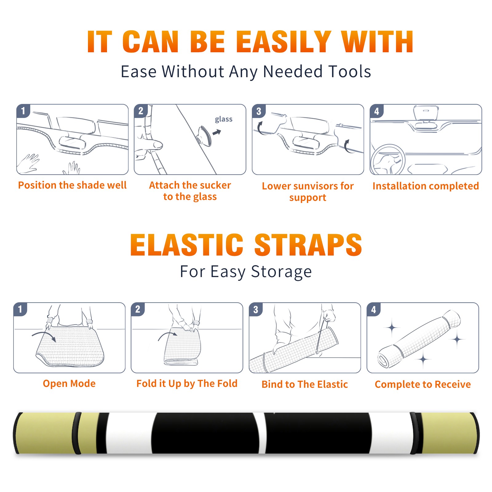 <p><b>Foldable Premium Car Windshield Sunshade is your great solution to reduce your car’s interior temperature dramatically! This is definitely a must-have item for your summer travel!</b></p><p><b>【Precision Fit, Stylish Protection】</b></p><p>55"x30" (140x76cm) universal size with 3cm flexible margins fits curved windshields of most sedans/SUVs.</p><p><b>【Blocking Uv Rays &amp; Heat Insulation】</b></p><p>Our vehicle sunshade provides effective UV, sun, and summer heat protection, preventing leather fading and plastic cracking to keep your car interior pristine.</p><p><b>【Zero-Mark Installation &amp; Space-Saving】</b></p><p>Equipped with dual scratch-free silicone suction cups + adjustable straps: Medical-grade silicone cups hold firmly yet remove cleanly. Folds to A3 size (42x30cm x &lt;2cm thick), tucks discreetly into glove compartments or door pockets.&nbsp;</p>