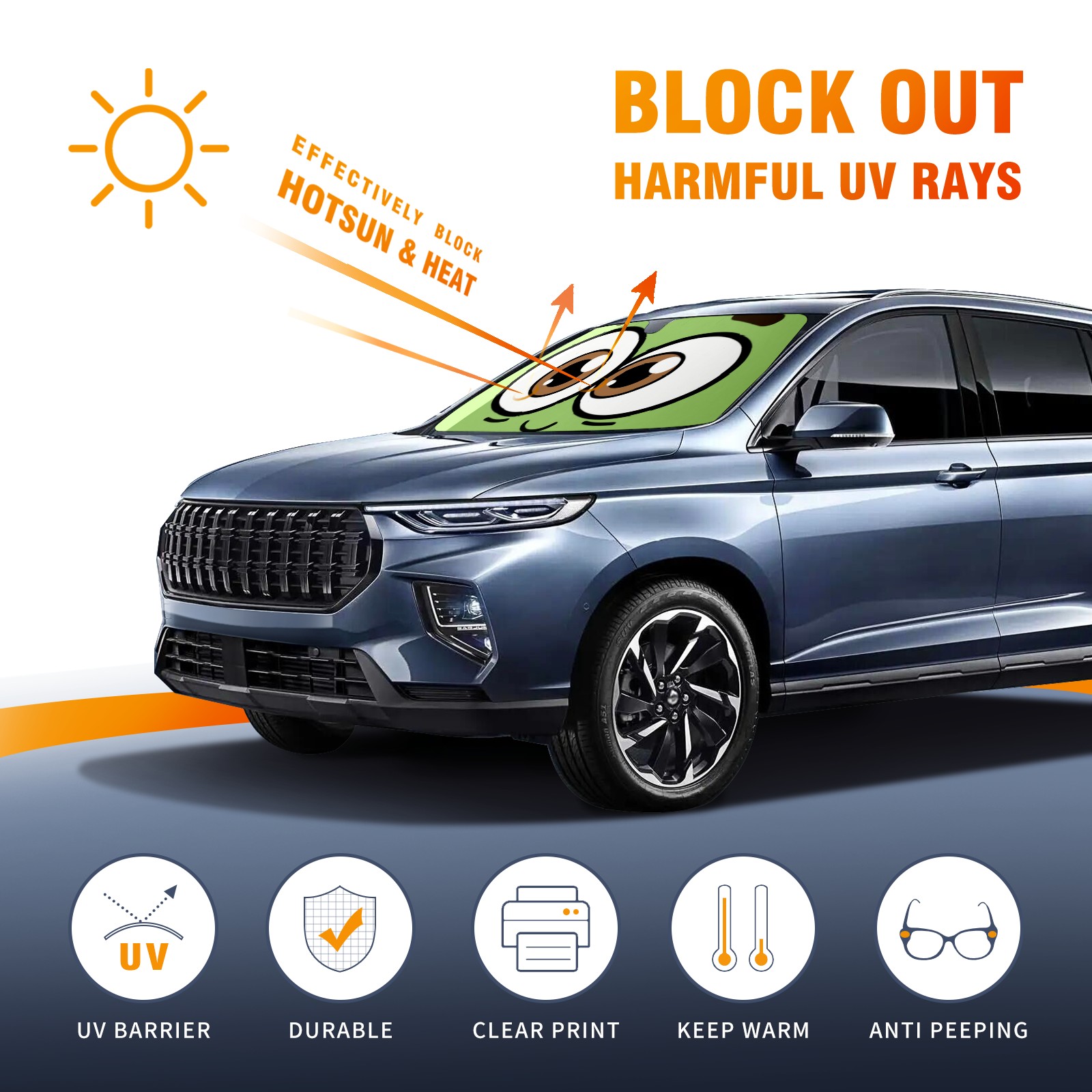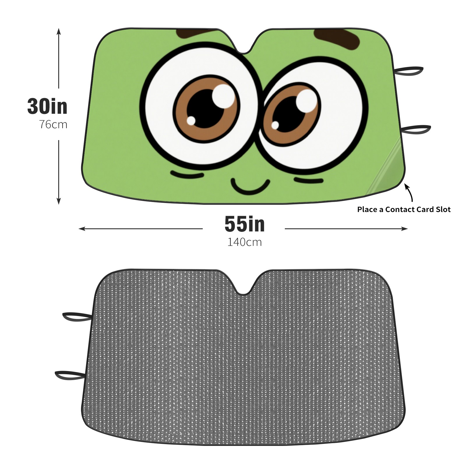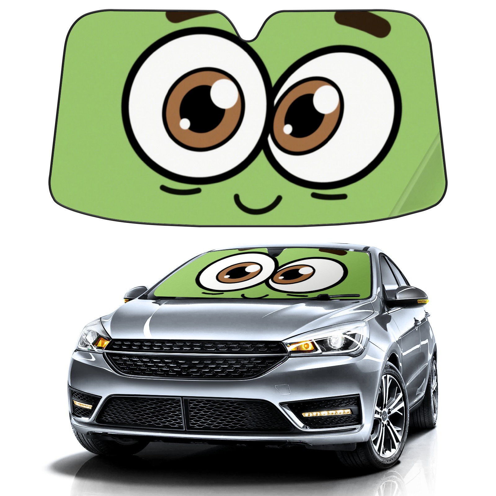 Green Funny Car Sun Shade UV Protection Foldable Sunshade for Windshield Heat Insulation Portable Sun Shield for Car Interior Protection Automotive Window Protector