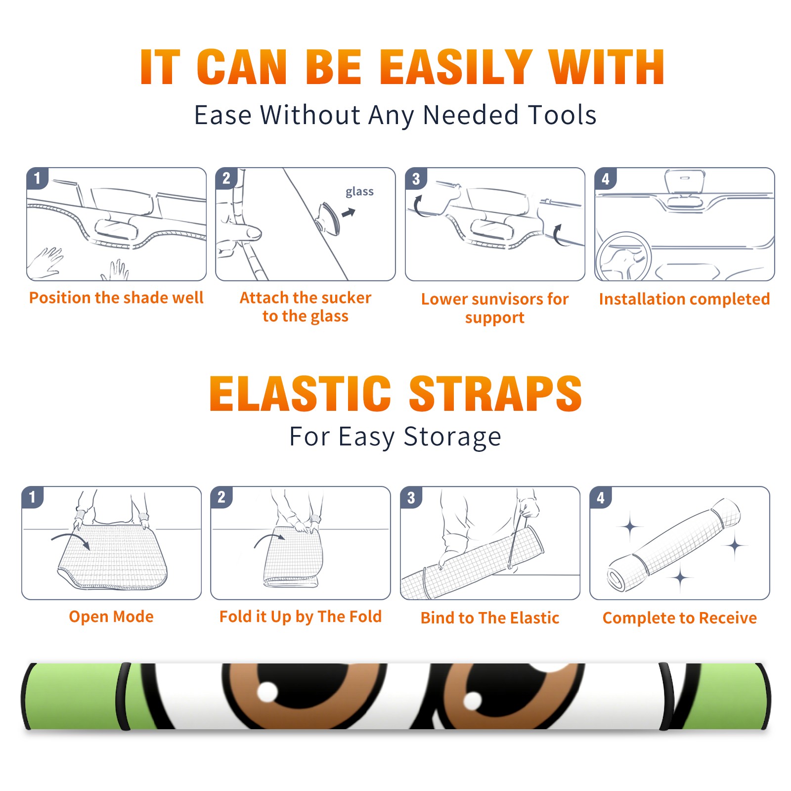 • <p><b>Foldable Premium Car Windshield Sunshade is your great solution to reduce your car’s interior temperature dramatically! This is definitely a must-have item for your summer travel!</b></p><p><b>【Precision Fit, Stylish Protection】</b></p><p>55"x30" (140x76cm) universal size with 3cm flexible margins fits curved windshields of most sedans/SUVs.</p><p><b>【Blocking Uv Rays &amp; Heat Insulation】</b></p><p>Our vehicle sunshade provides effective UV, sun, and summer heat protection, preventing leather fading and plastic cracking to keep your car interior pristine.</p><p><b>【Zero-Mark Installation &amp; Space-Saving】</b></p><p>Equipped with dual scratch-free silicone suction cups + adjustable straps: Medical-grade silicone cups hold firmly yet remove cleanly. Folds to A3 size (42x30cm x &lt;2cm thick), tucks discreetly into glove compartments or door pockets.&nbsp;</p>