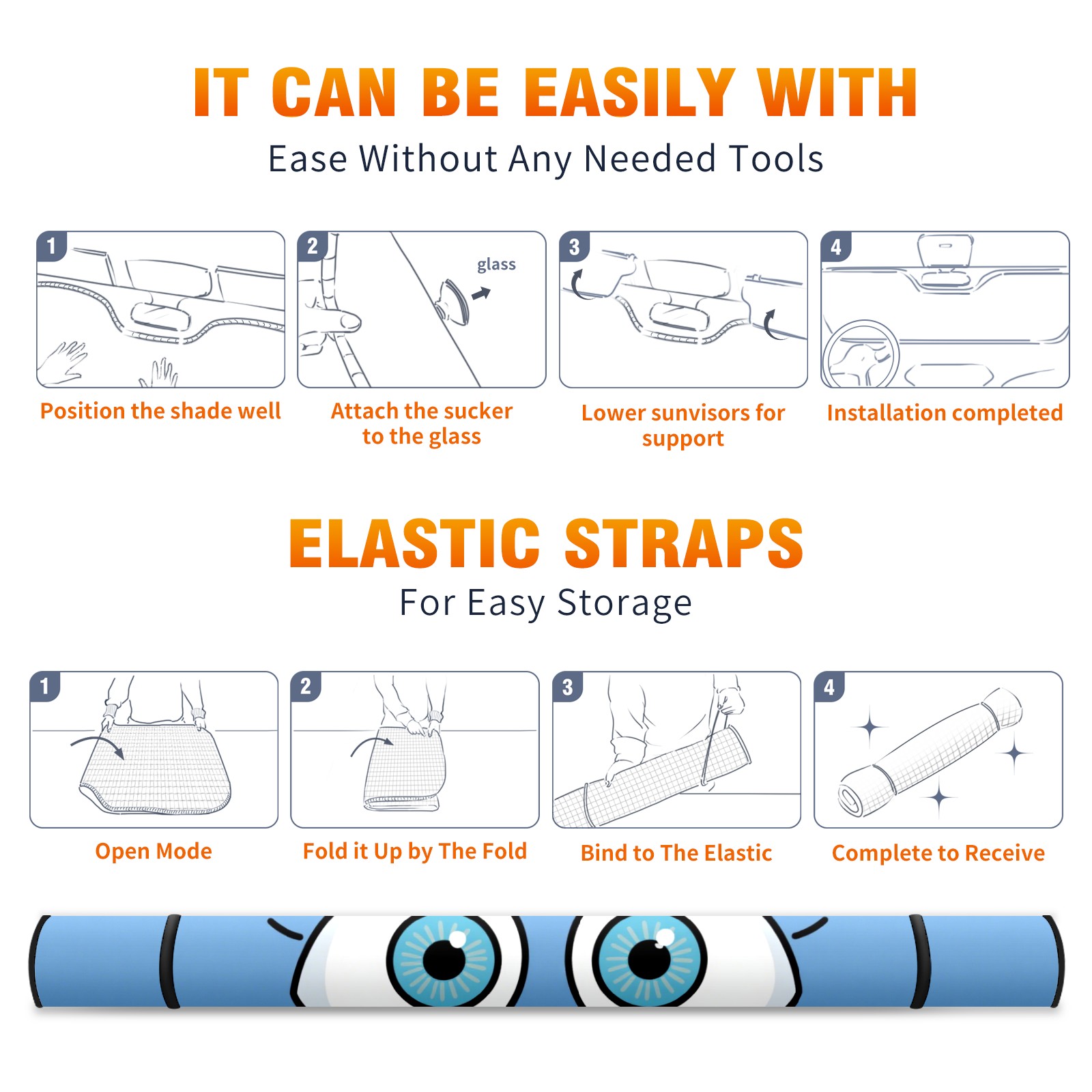 • <p><b>Foldable Premium Car Windshield Sunshade is your great solution to reduce your car’s interior temperature dramatically! This is definitely a must-have item for your summer travel!</b></p><p><b>【Precision Fit, Stylish Protection】</b></p><p>55"x30" (140x76cm) universal size with 3cm flexible margins fits curved windshields of most sedans/SUVs.</p><p><b>【Blocking Uv Rays &amp; Heat Insulation】</b></p><p>Our vehicle sunshade provides effective UV, sun, and summer heat protection, preventing leather fading and plastic cracking to keep your car interior pristine.</p><p><b>【Zero-Mark Installation &amp; Space-Saving】</b></p><p>Equipped with dual scratch-free silicone suction cups + adjustable straps: Medical-grade silicone cups hold firmly yet remove cleanly. Folds to A3 size (42x30cm x &lt;2cm thick), tucks discreetly into glove compartments or door pockets.&nbsp;</p>