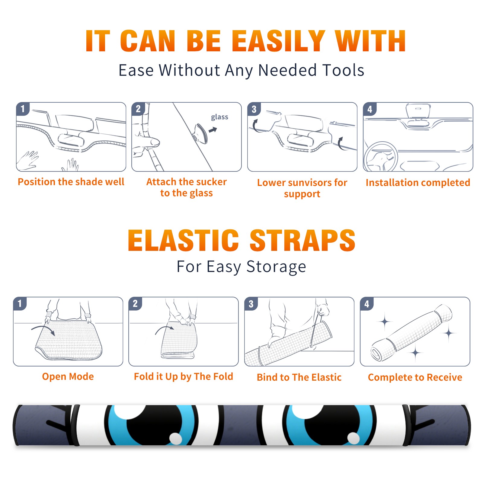 • <p><b>Foldable Premium Car Windshield Sunshade is your great solution to reduce your car’s interior temperature dramatically! This is definitely a must-have item for your summer travel!</b></p><p><b>【Precision Fit, Stylish Protection】</b></p><p>55"x30" (140x76cm) universal size with 3cm flexible margins fits curved windshields of most sedans/SUVs.</p><p><b>【Blocking Uv Rays &amp; Heat Insulation】</b></p><p>Our vehicle sunshade provides effective UV, sun, and summer heat protection, preventing leather fading and plastic cracking to keep your car interior pristine.</p><p><b>【Zero-Mark Installation &amp; Space-Saving】</b></p><p>Equipped with dual scratch-free silicone suction cups + adjustable straps: Medical-grade silicone cups hold firmly yet remove cleanly. Folds to A3 size (42x30cm x &lt;2cm thick), tucks discreetly into glove compartments or door pockets.&nbsp;</p>
