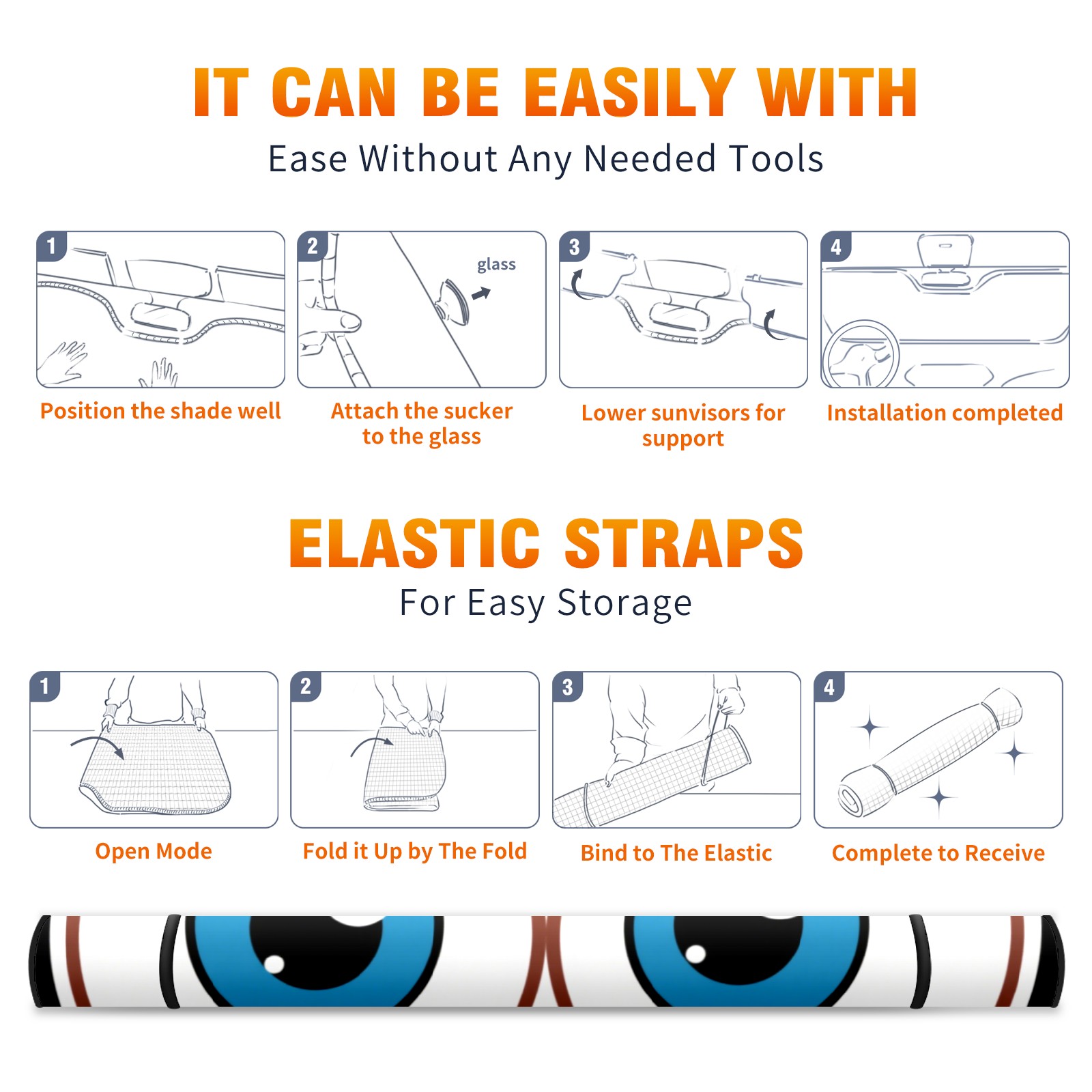 Blue Eyes Car Sun Shade UV Protection Foldable Sunshade for Windshield Heat Insulation Portable Sun Shield for Car Interior Protection Automotive Window Protector