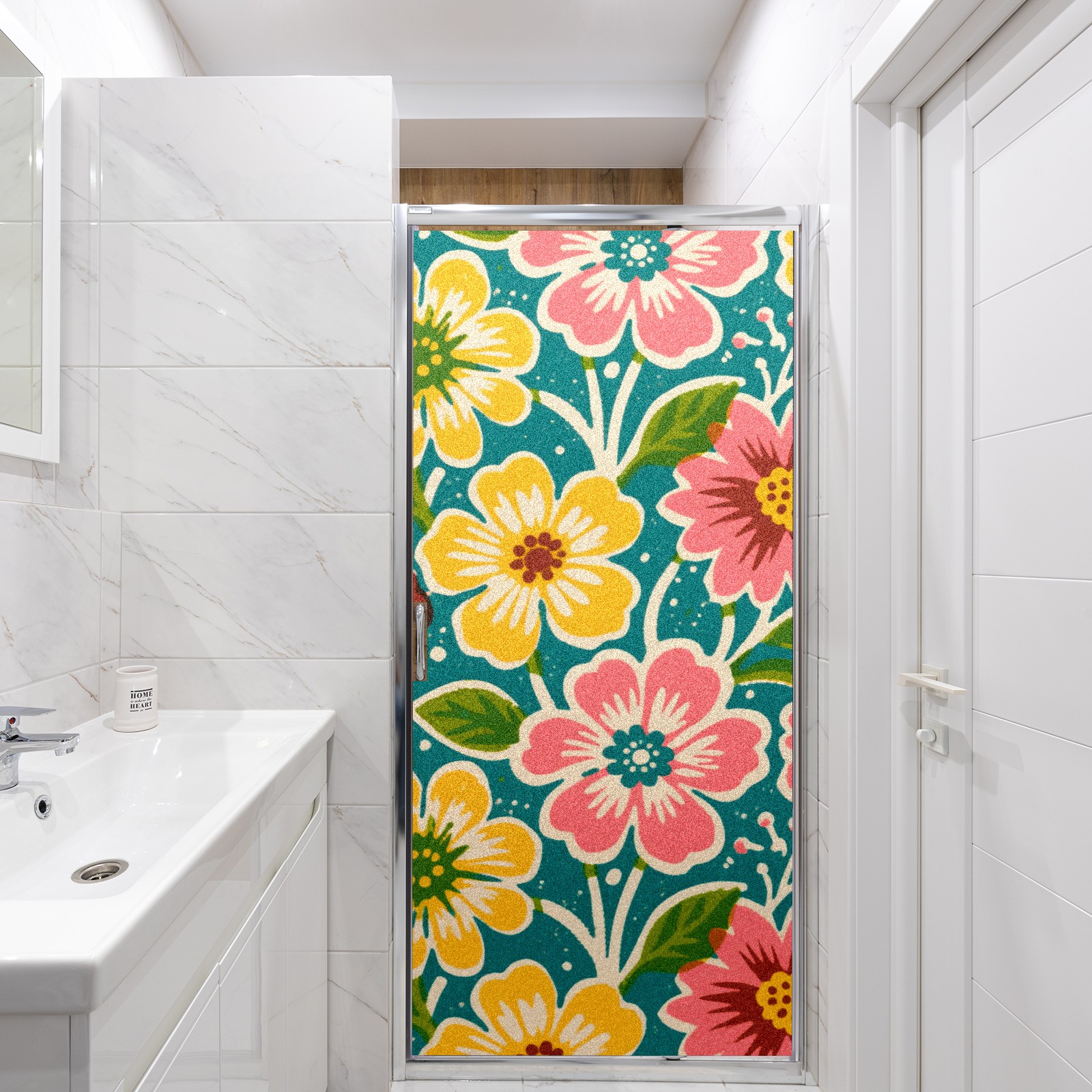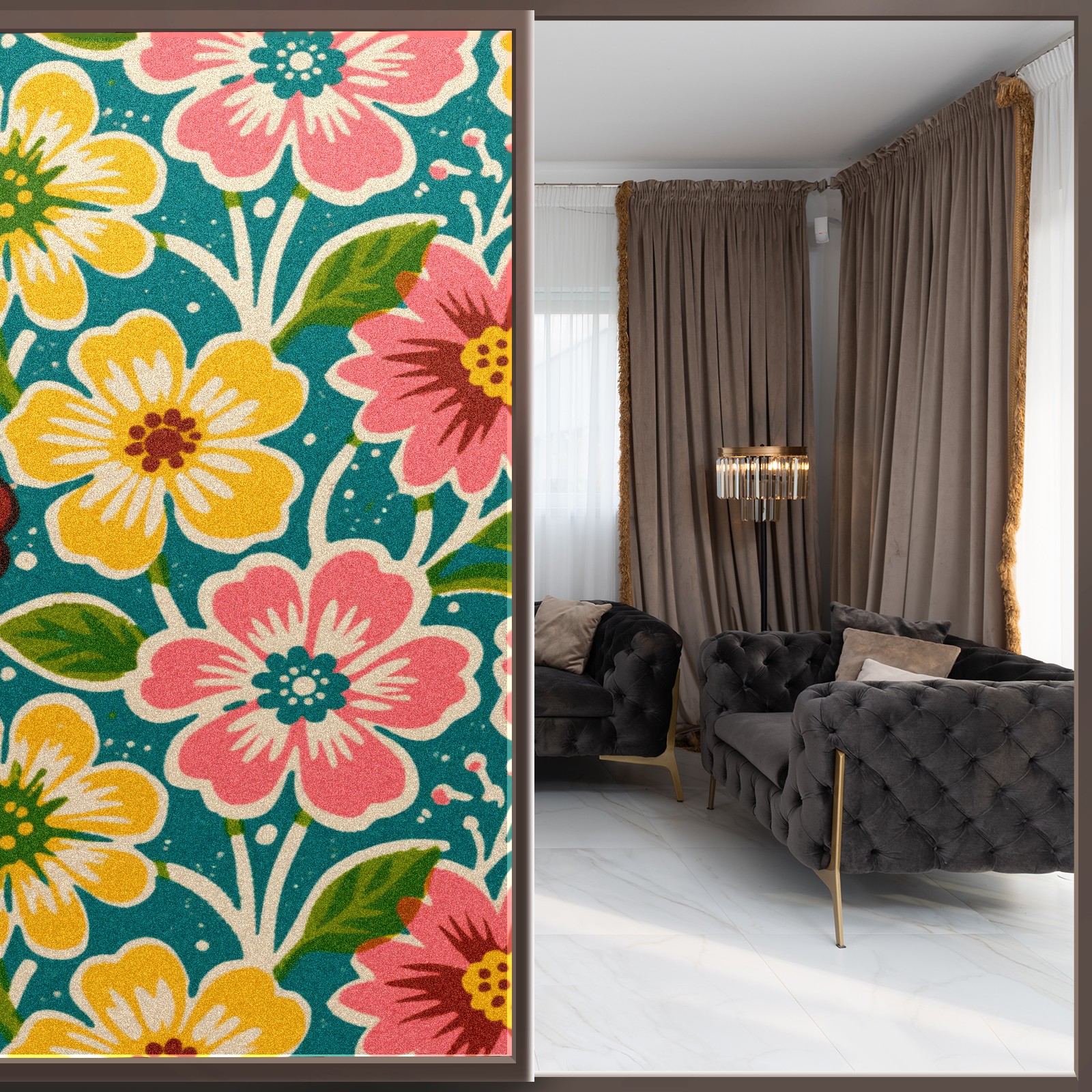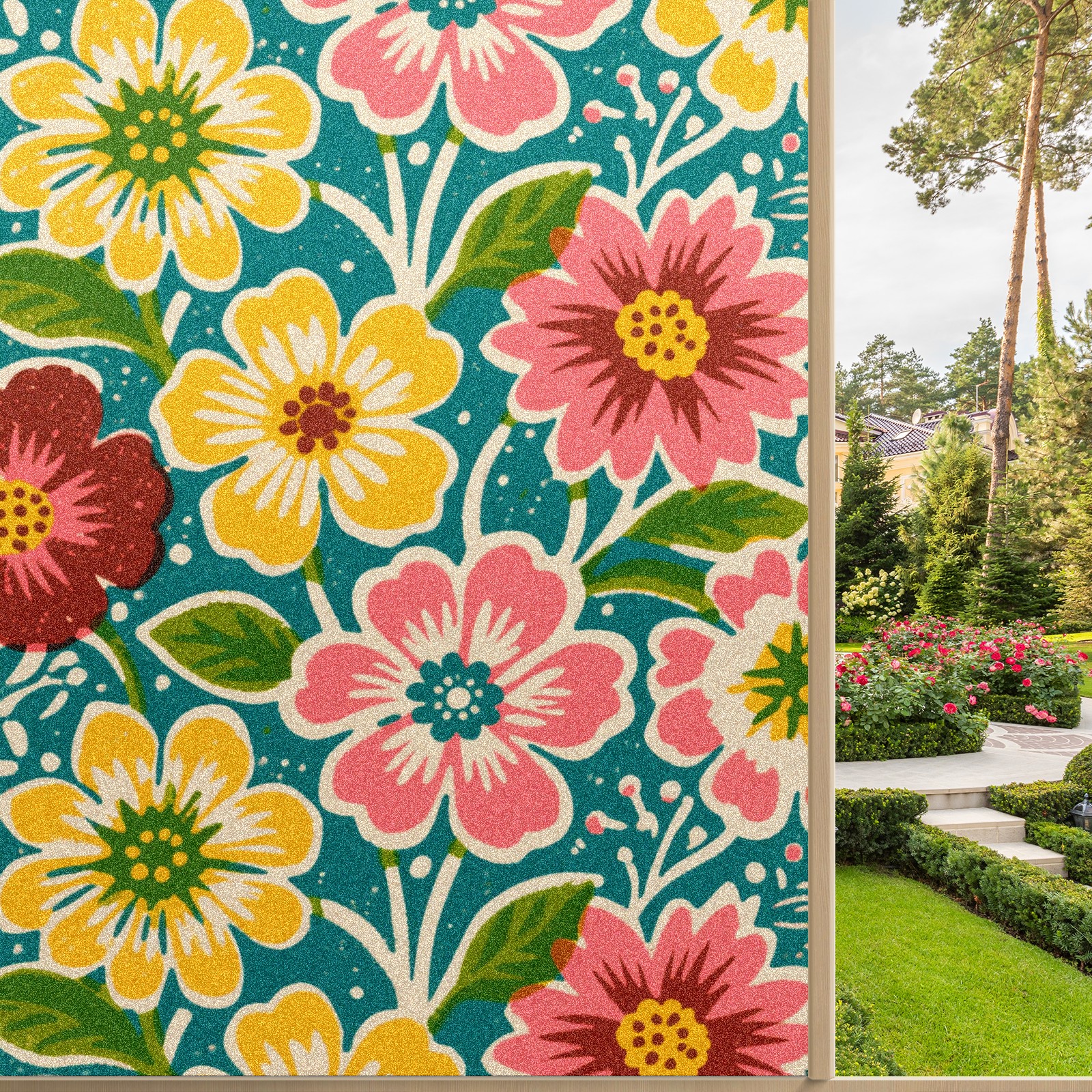 Window Privacy Film Frosted Stained Glass Film Decorative Static Cling for Bathroom Home Office Peel and Stick Window Film Ink Printing Flowers (18)(17.7x23.6in)