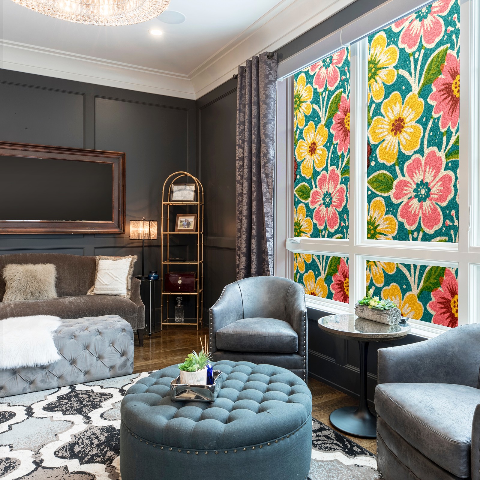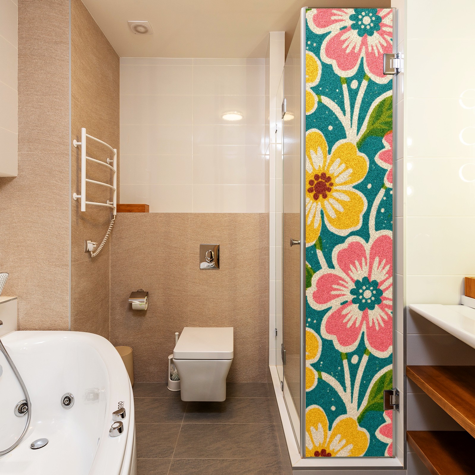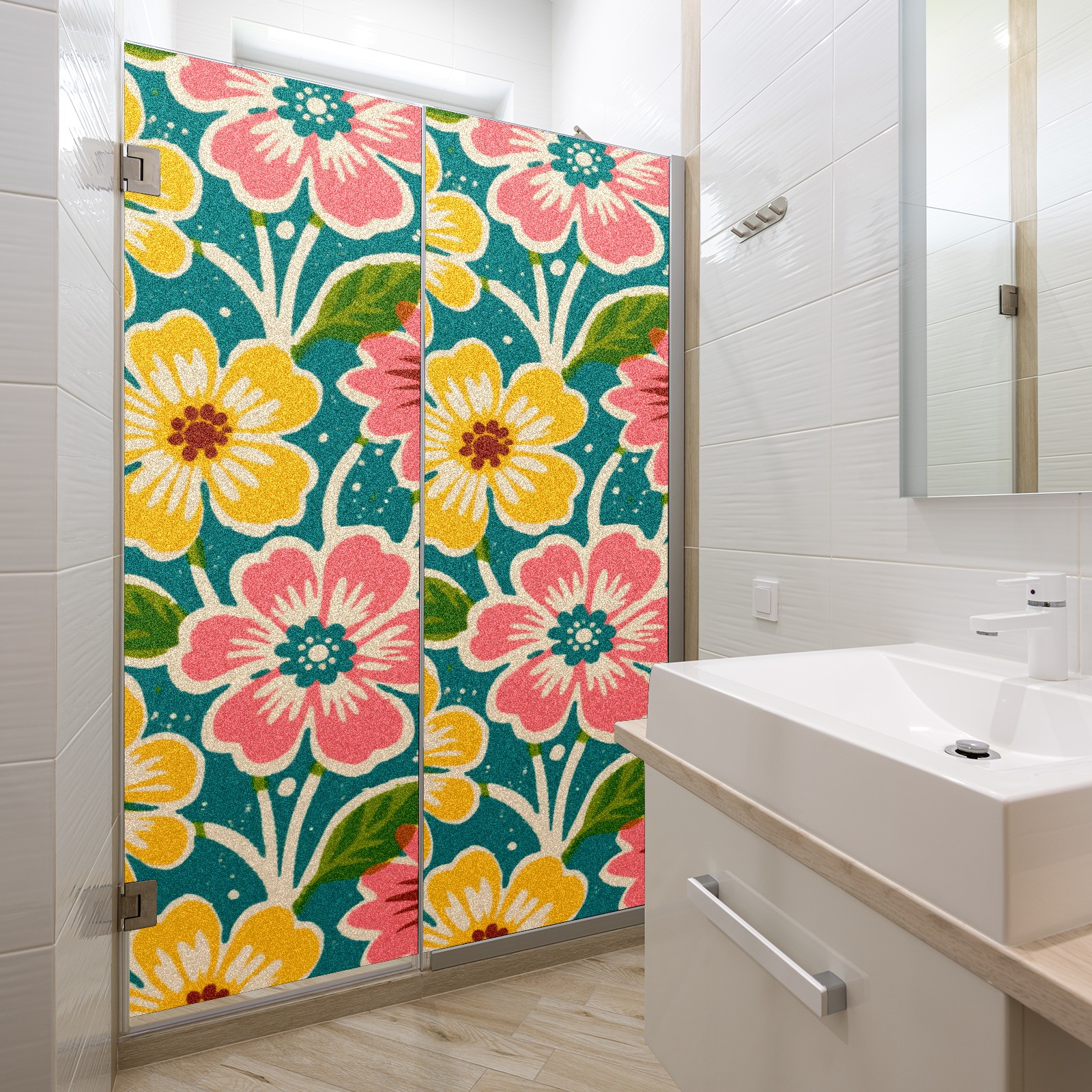 Window Privacy Film Frosted Stained Glass Film Decorative Static Cling for Bathroom Home Office Peel and Stick Window Film Ink Printing Flowers (18)(17.7x23.6in)