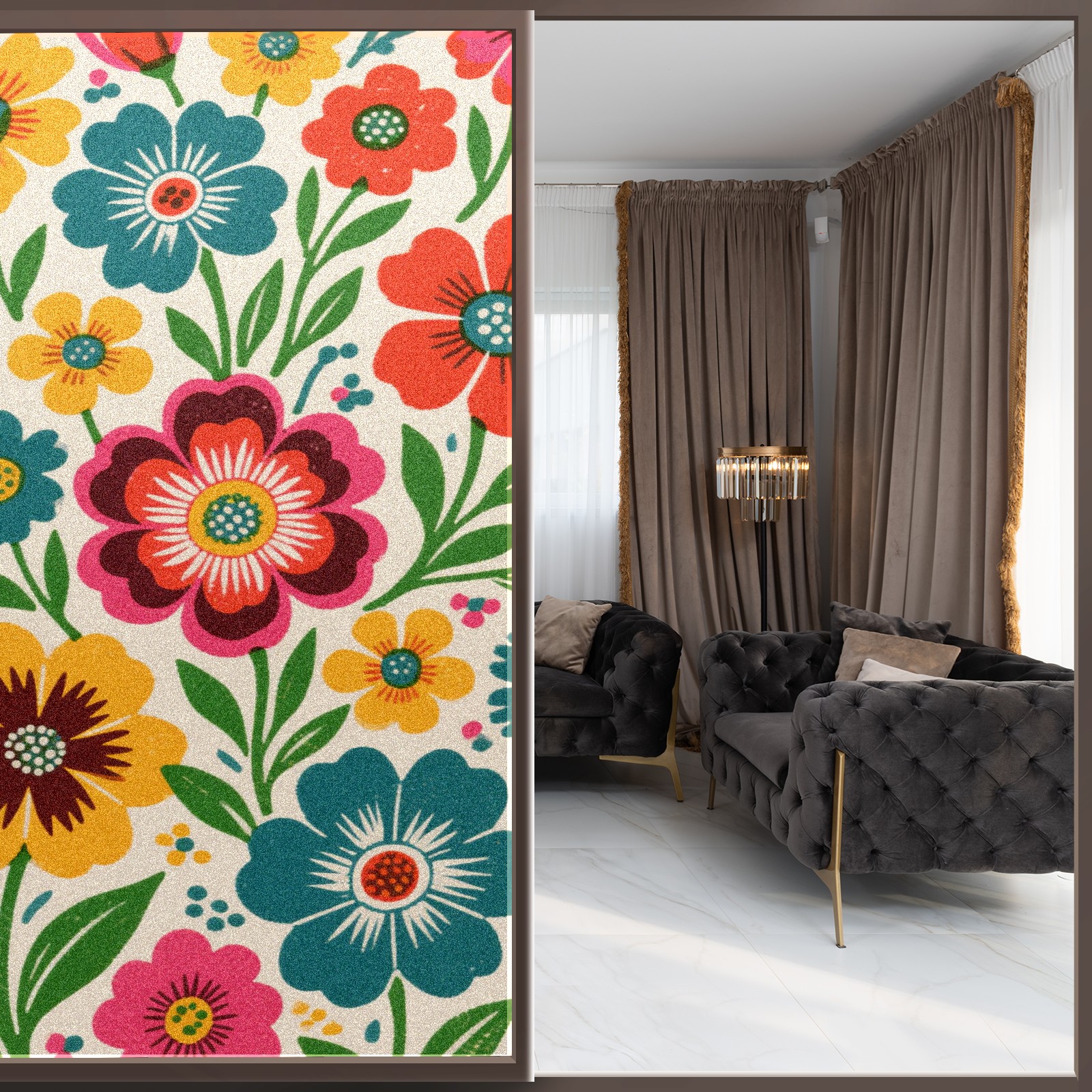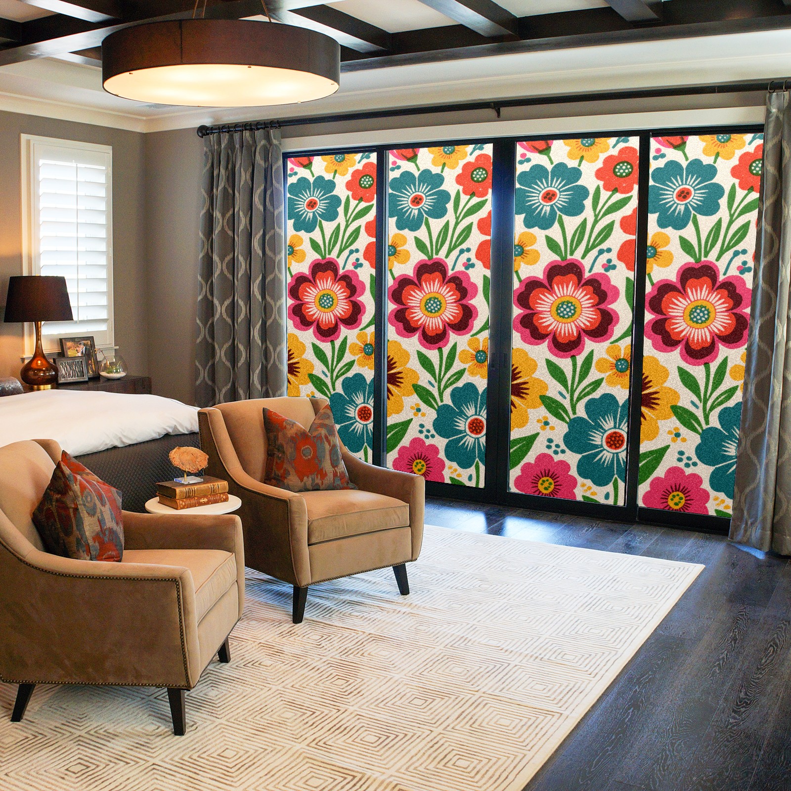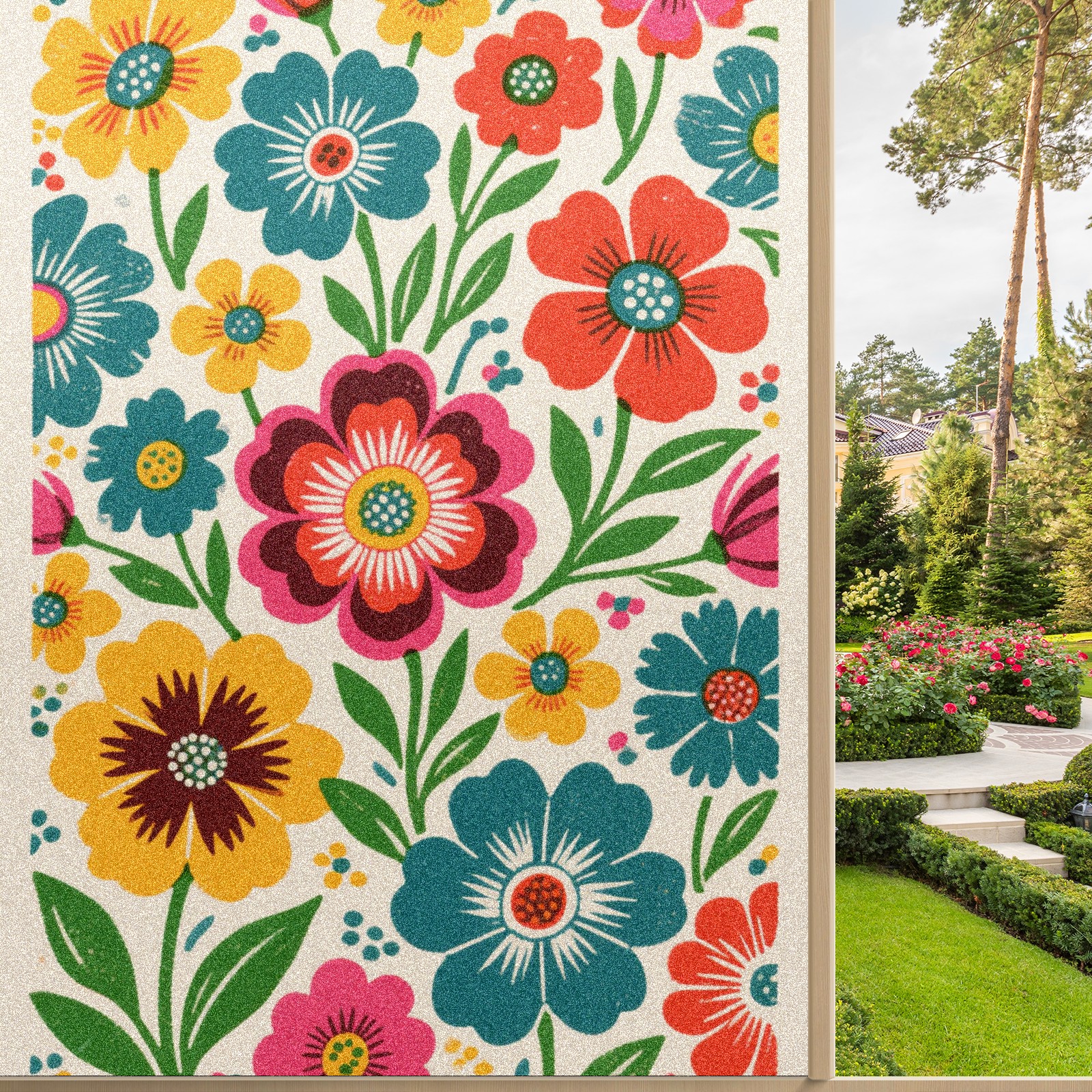 Window Privacy Film Frosted Stained Glass Film Decorative Static Cling for Bathroom Home Office Peel and Stick Window Film Ink Printing Flowers (17)(17.7x23.6in)