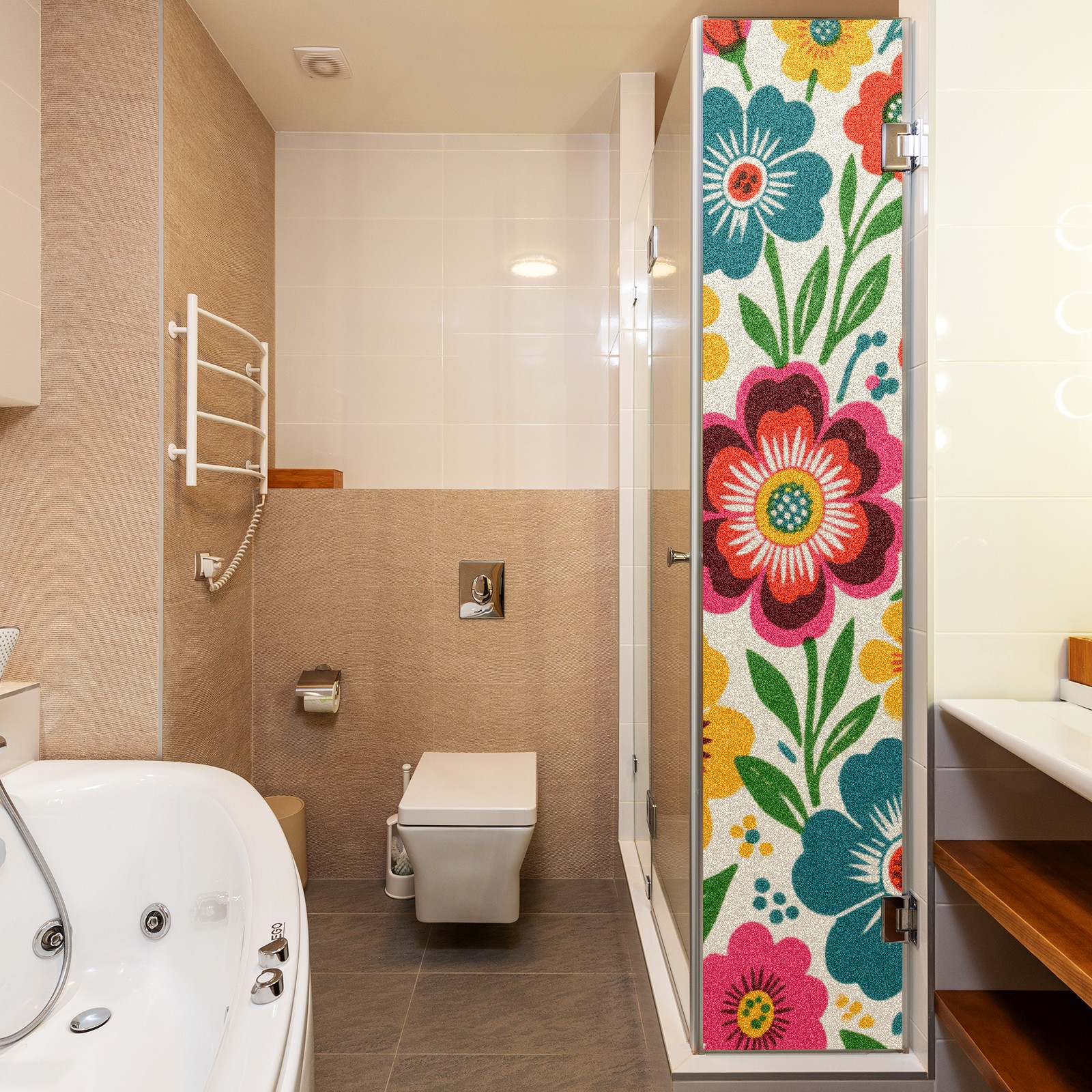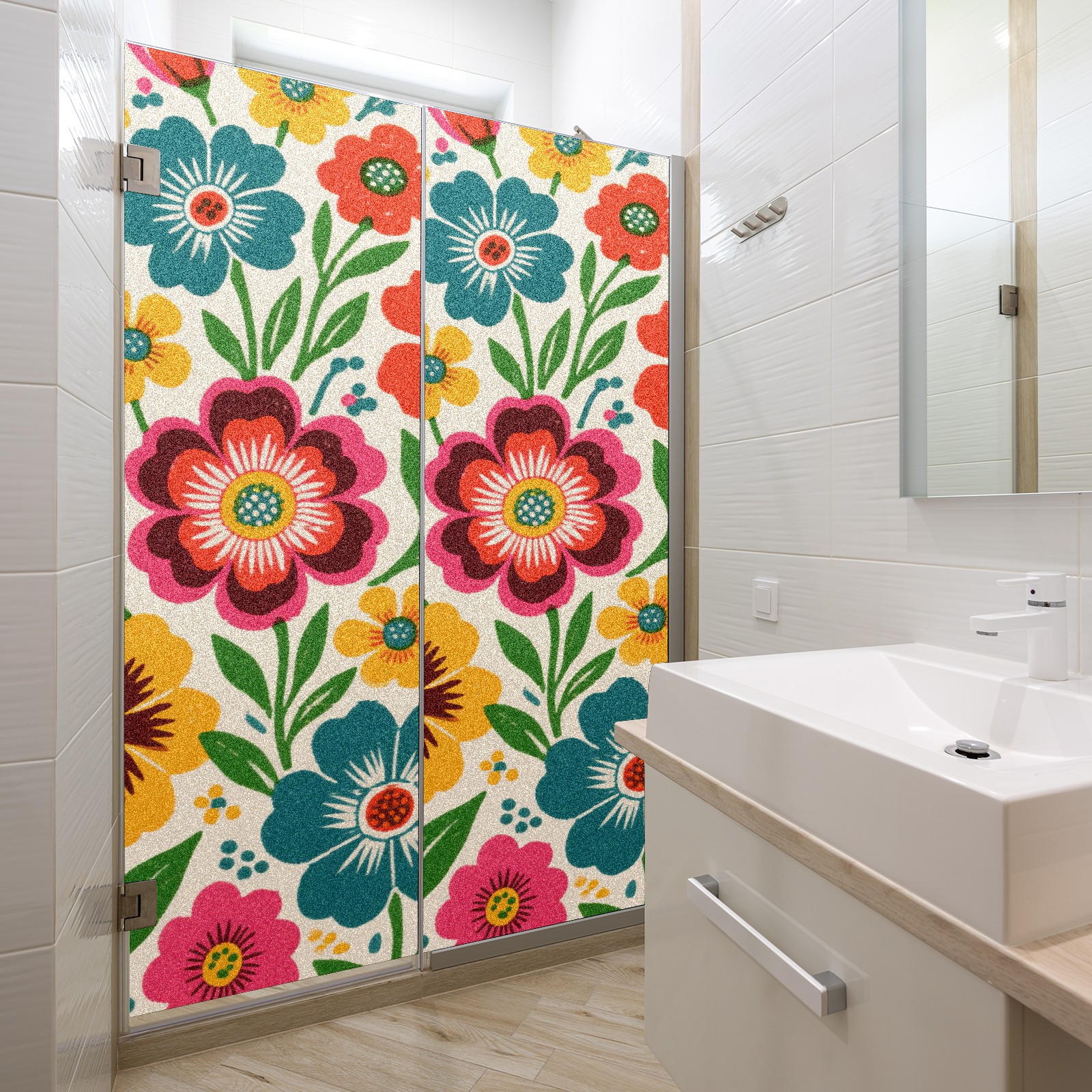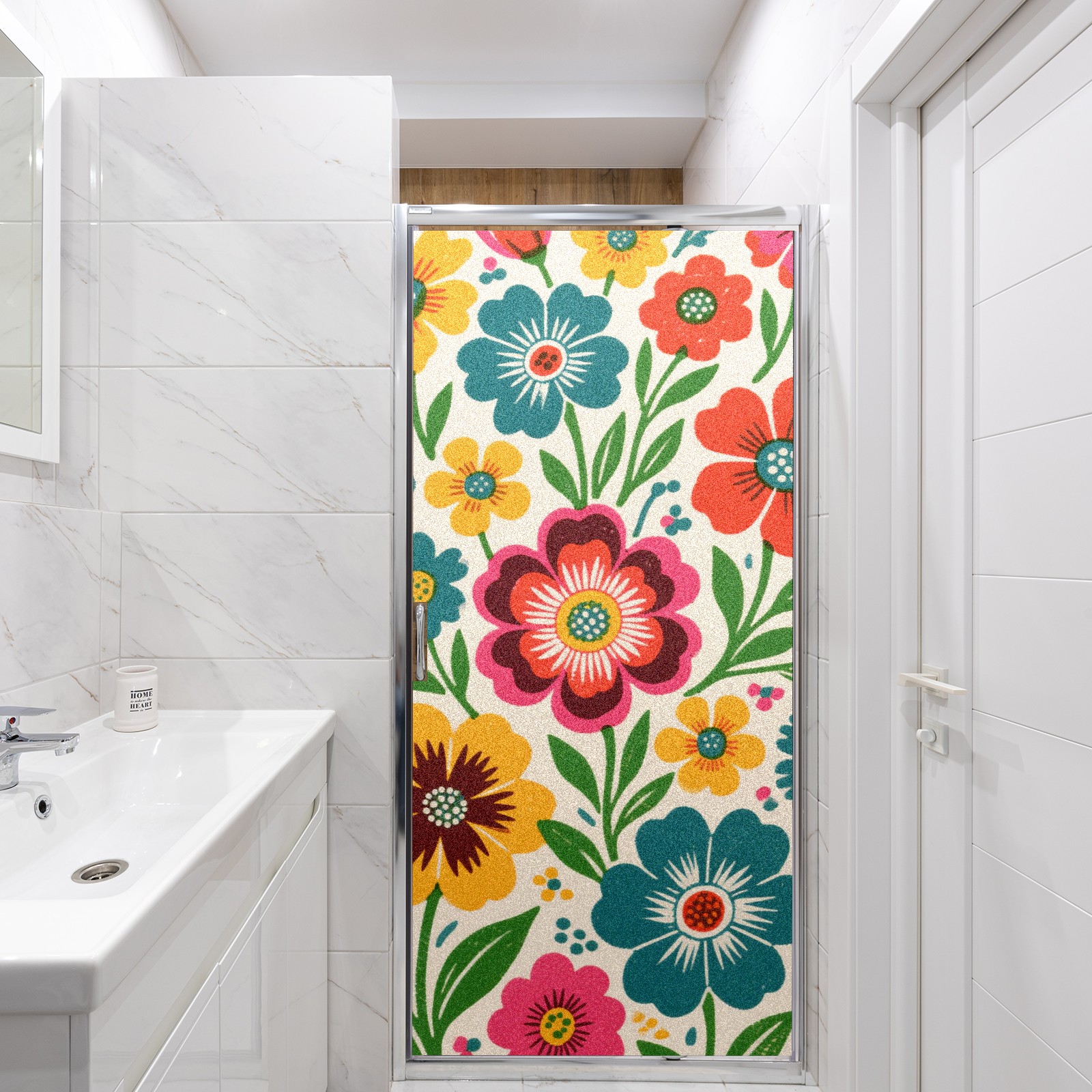 Window Privacy Film Frosted Stained Glass Film Decorative Static Cling for Bathroom Home Office Peel and Stick Window Film Ink Printing Flowers (17)(17.7x23.6in)