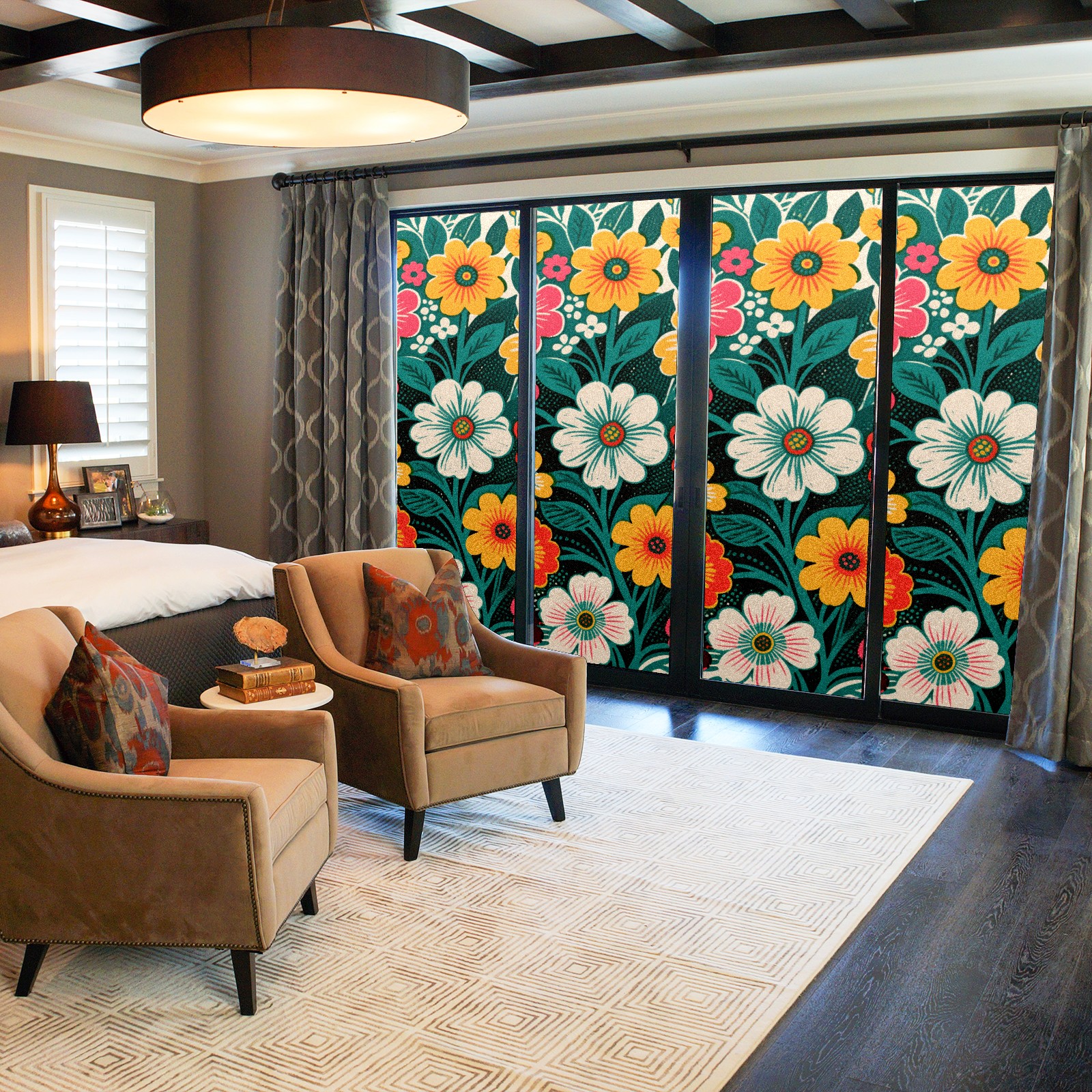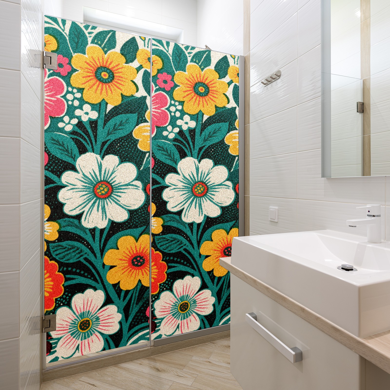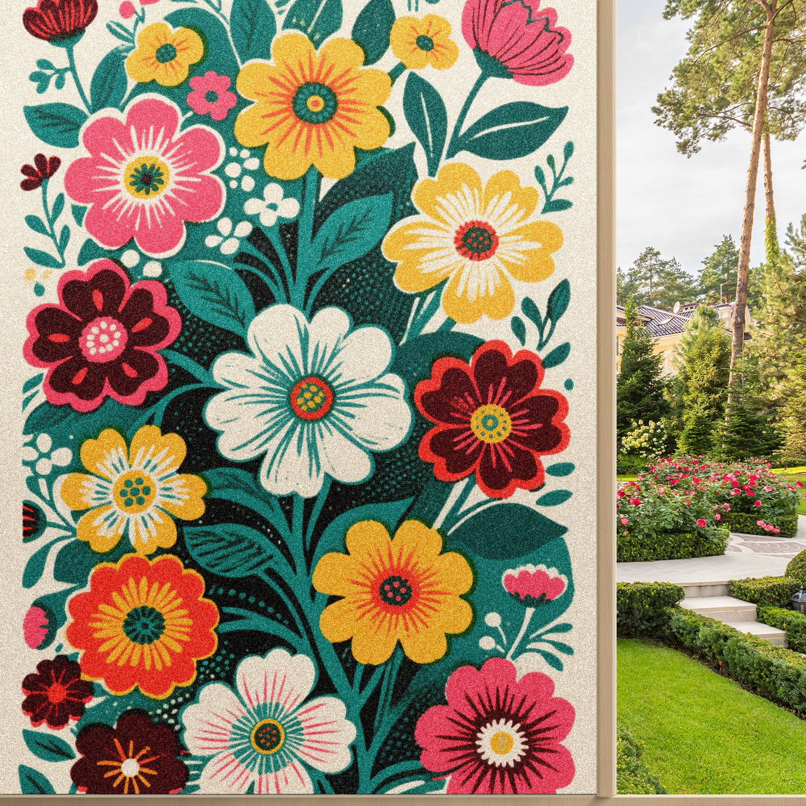Window Privacy Film Frosted Stained Glass Film Decorative Static Cling for Bathroom Home Office Peel and Stick Window Film Ink Printing Flowers (8)(17.7x23.6in)