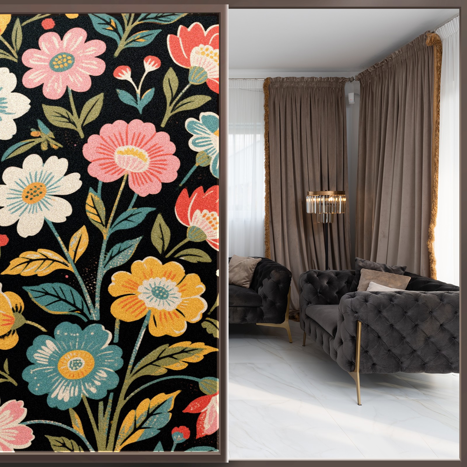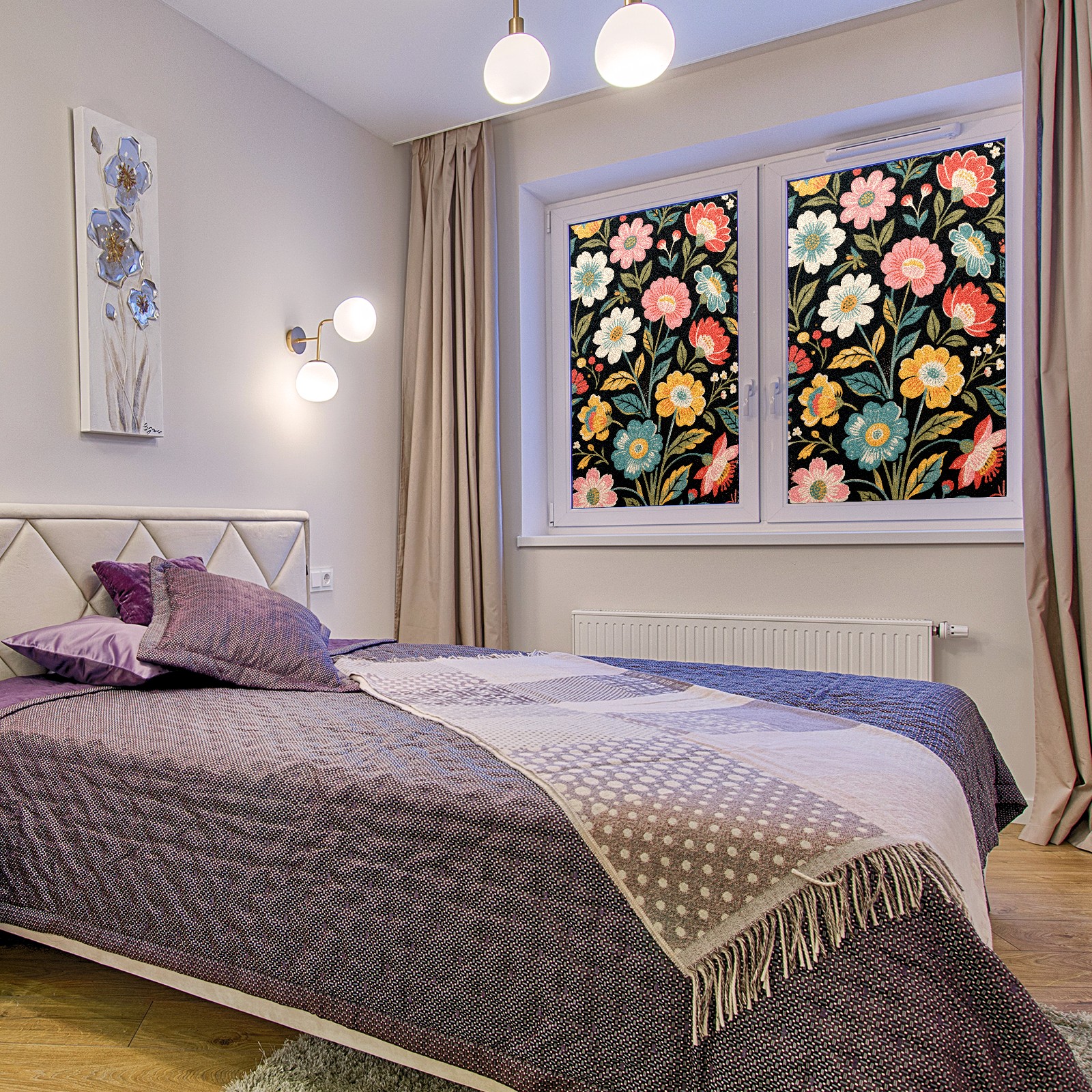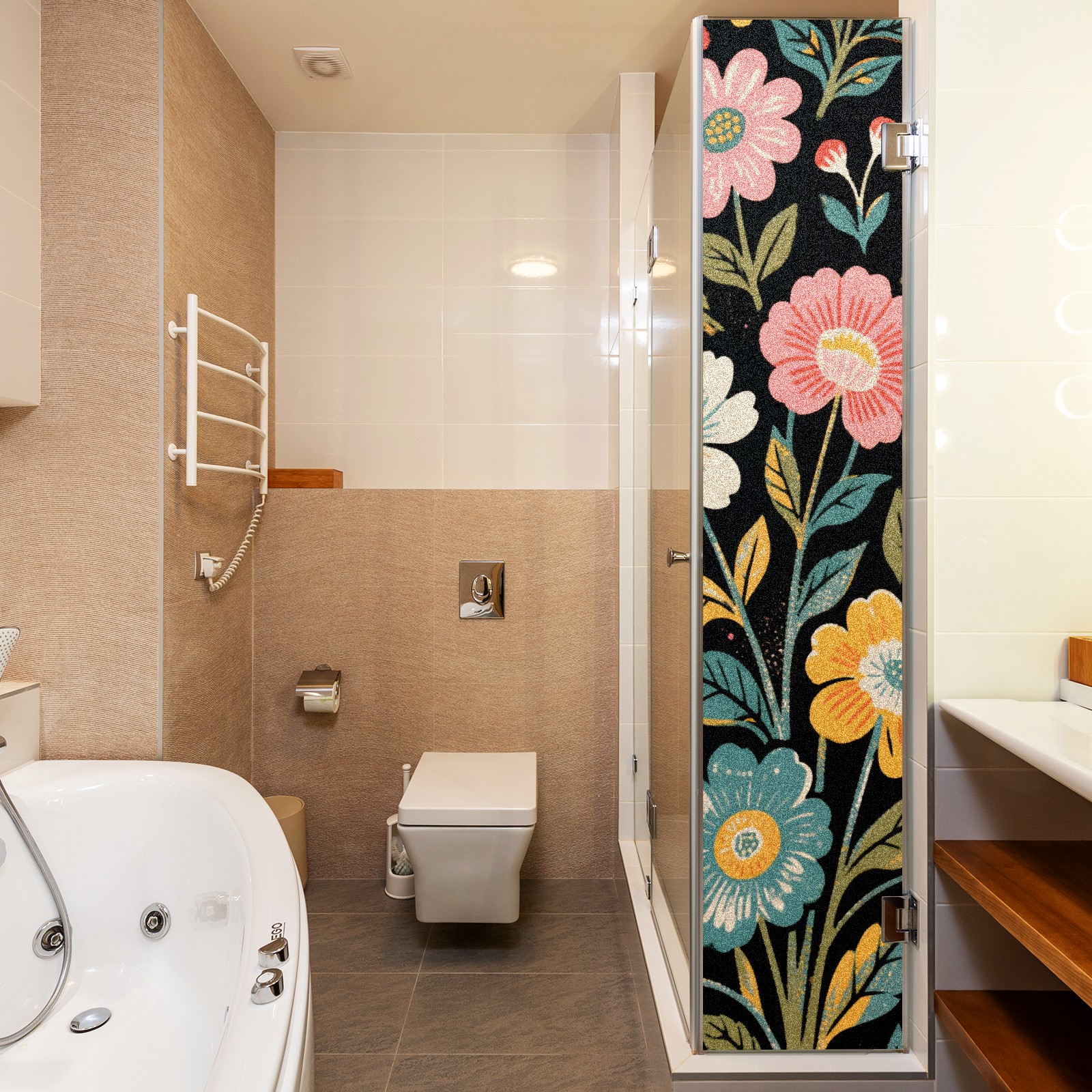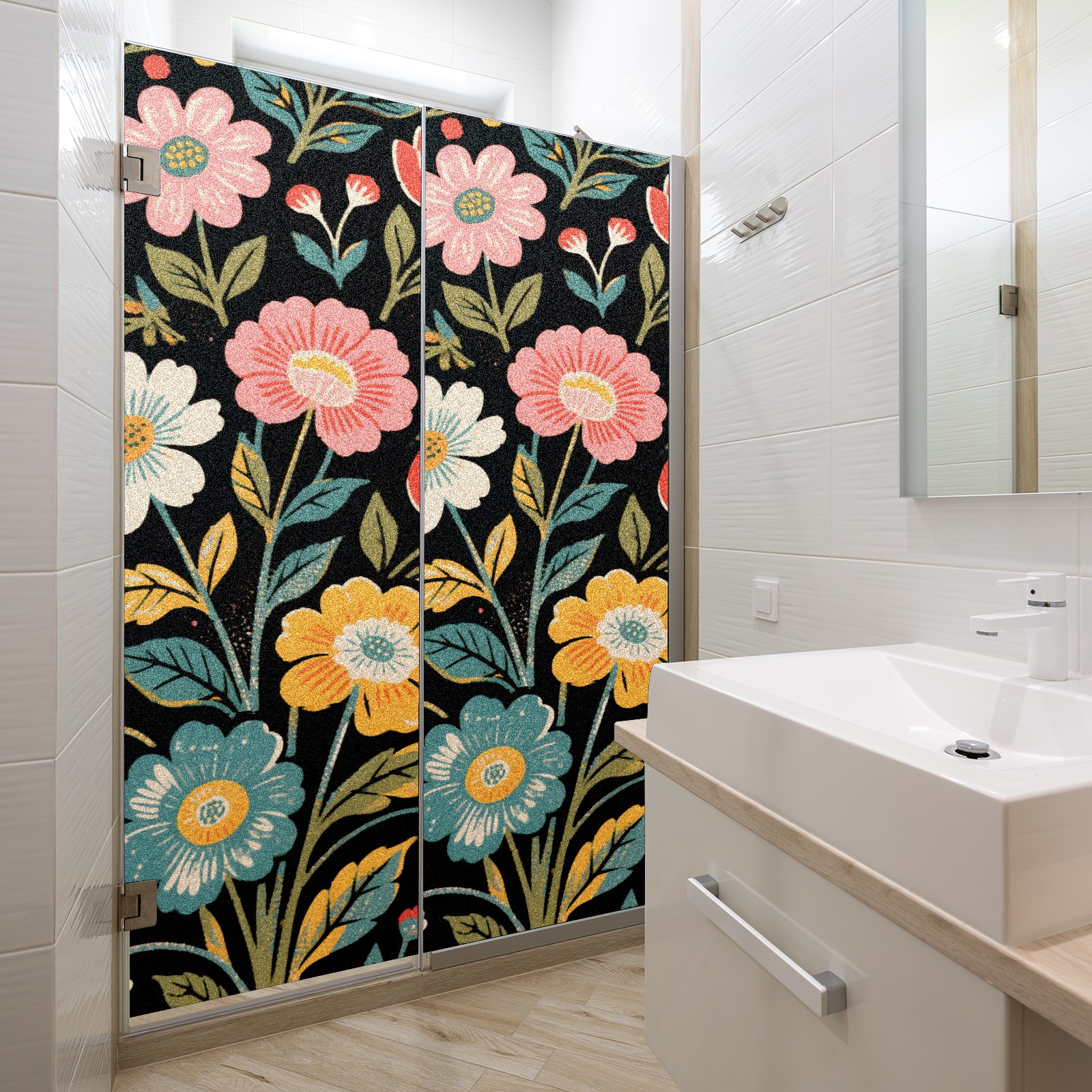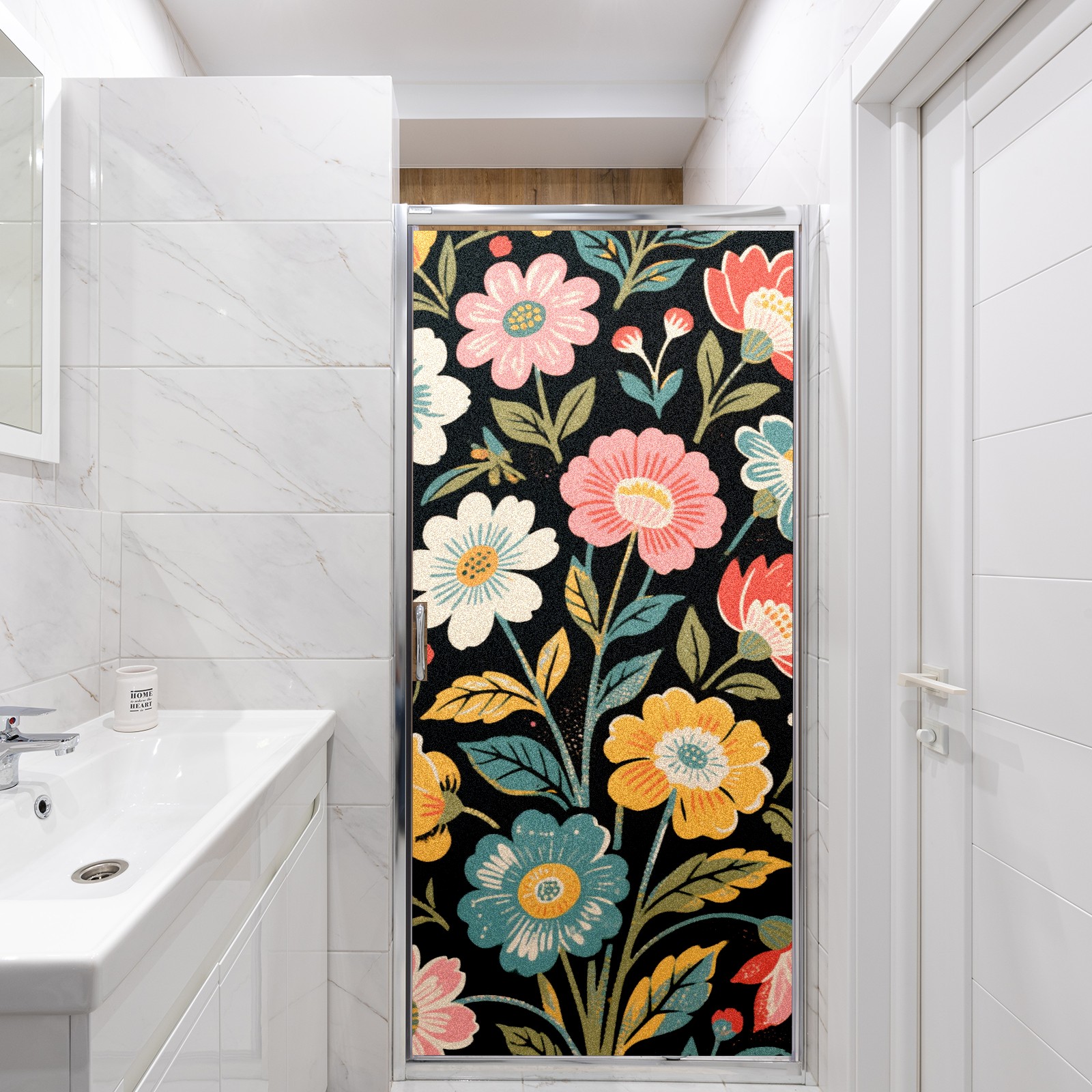 Window Privacy Film Frosted Stained Glass Film Decorative Static Cling for Bathroom Home Office Peel and Stick Window Film Ink Printing Flowers (6)(17.7x23.6in)