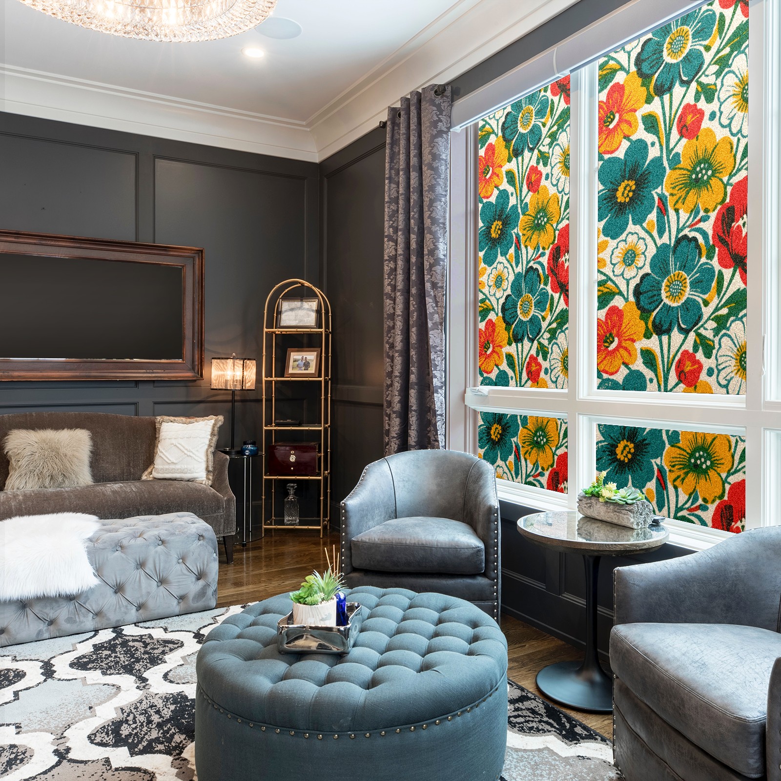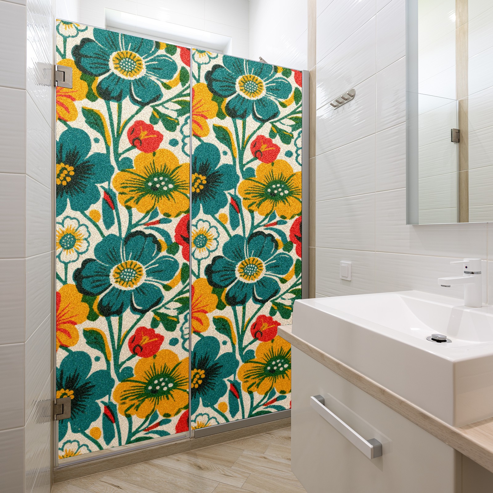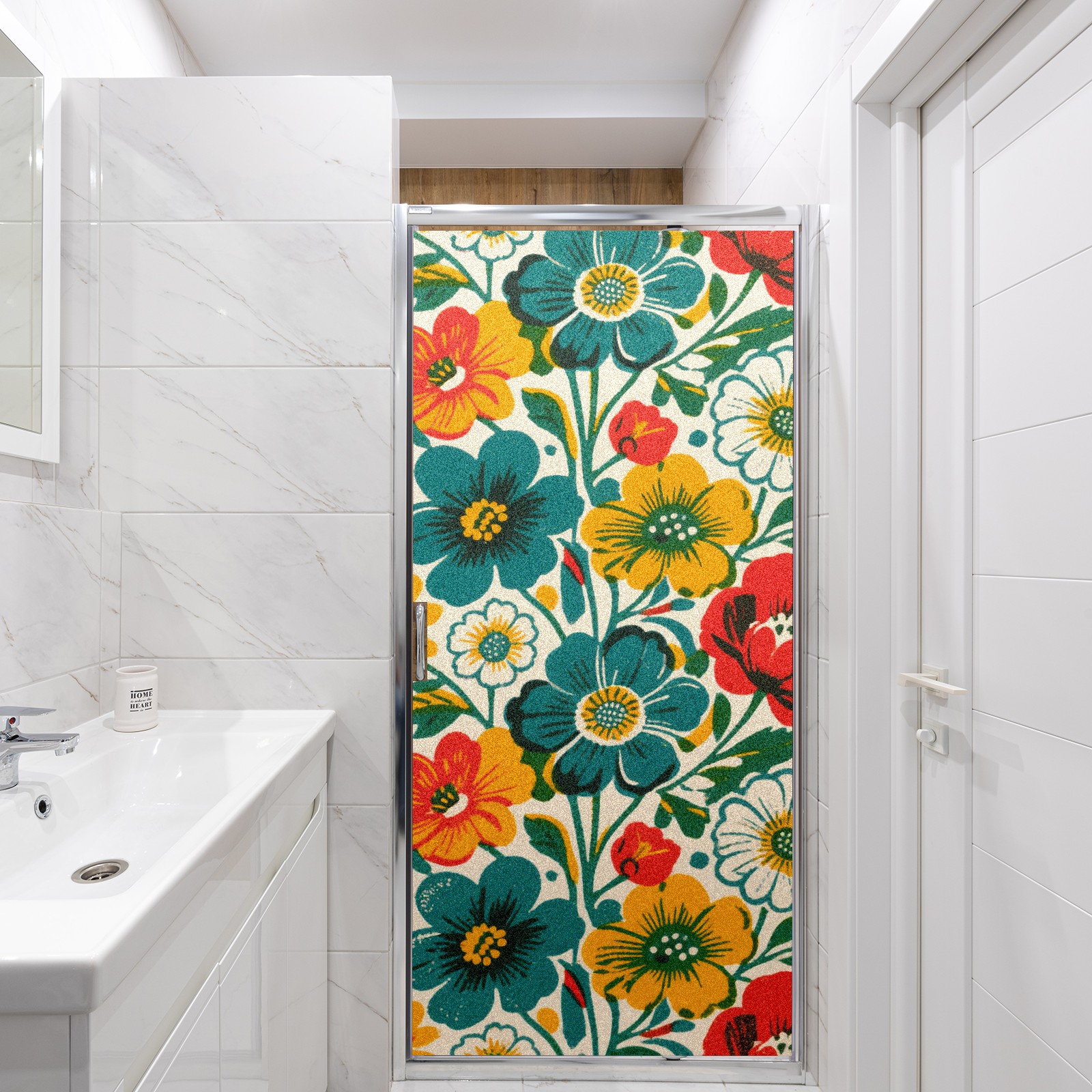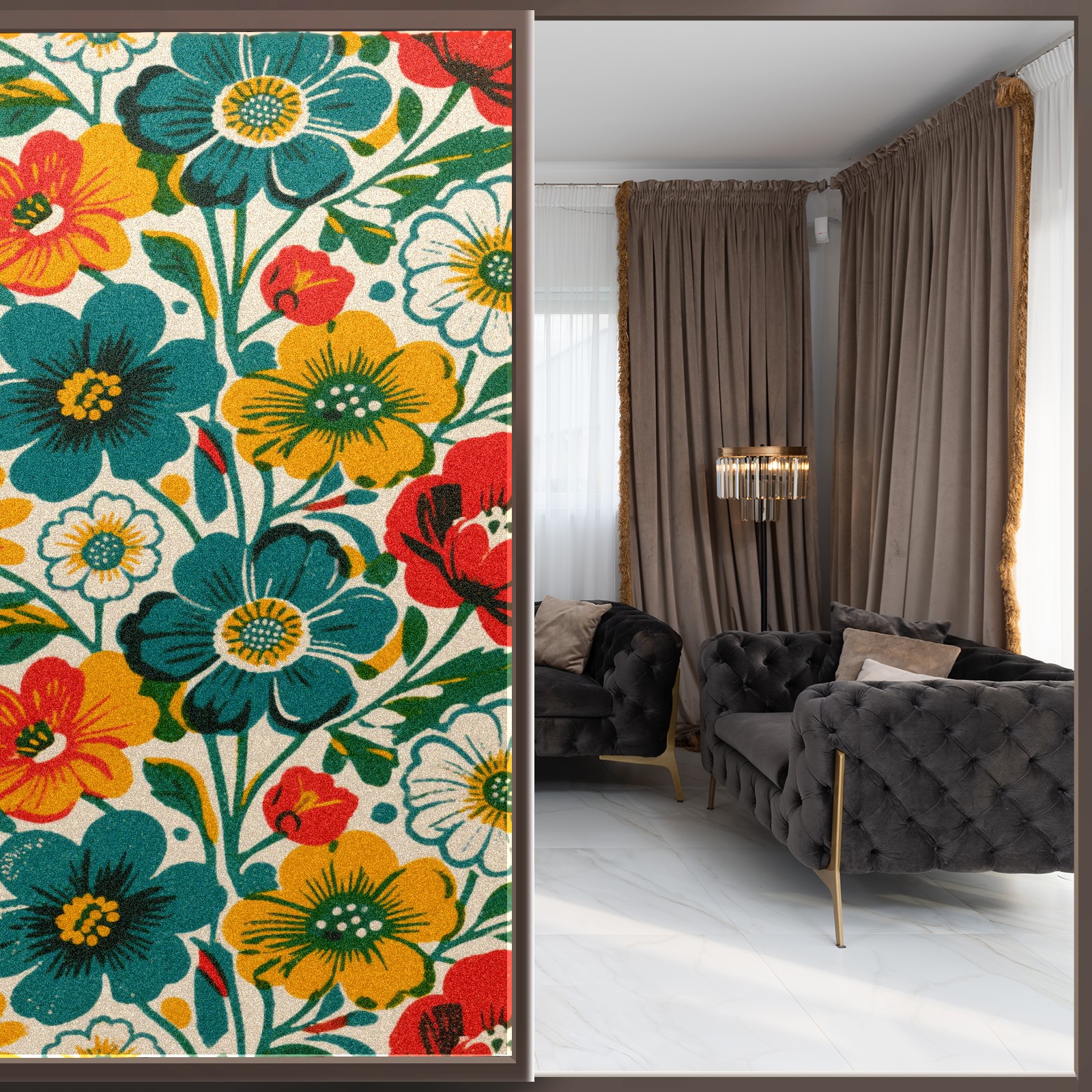 Window Privacy Film Frosted Stained Glass Film Decorative Static Cling for Bathroom Home Office Peel and Stick Window Film Ink Printing Flowers (5)(17.7x23.6in)