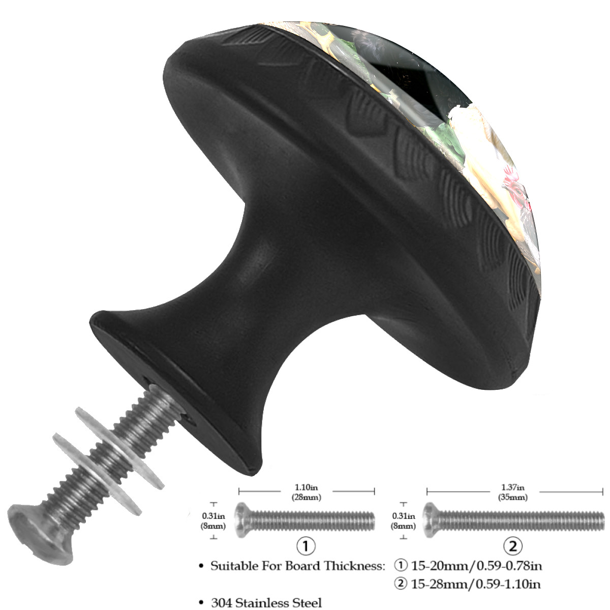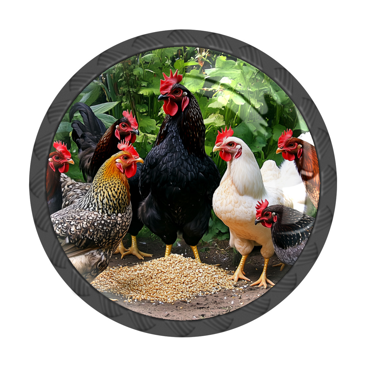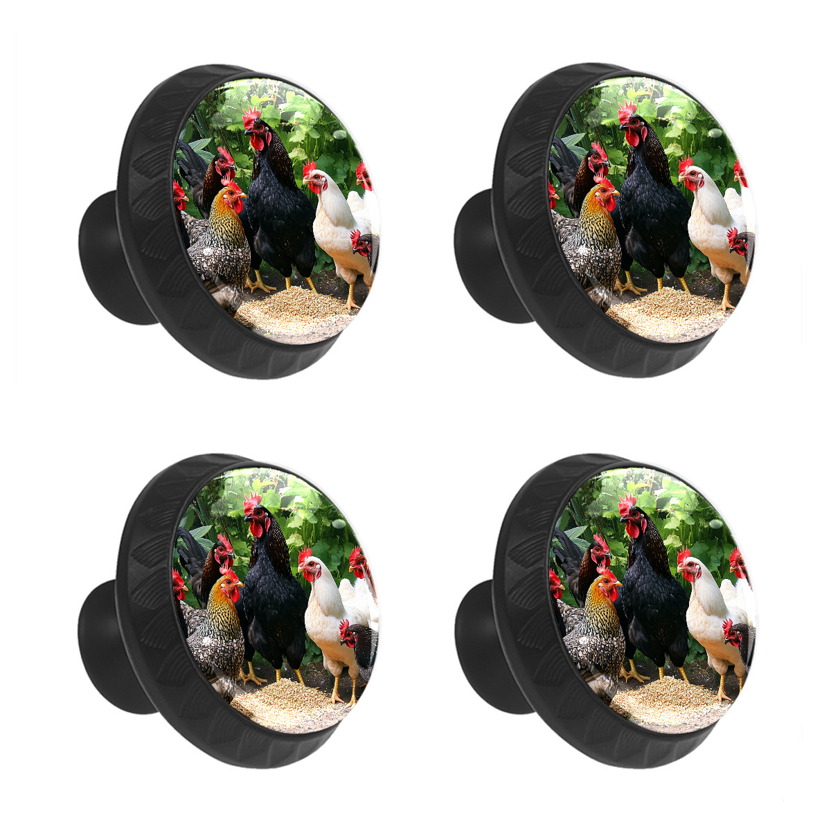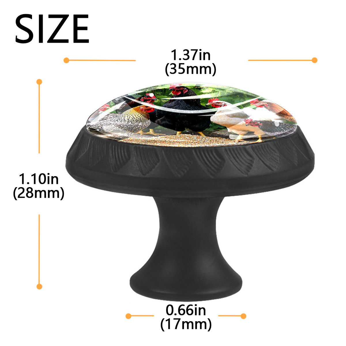 4 Pack Chickens Hens Cabinet Knobs Hardware Crystal Glass Drawer Pulls Knobs for Dresser Kitchen Bathroom Cabinets Drawers Black Furniture Cupboard Wardrobe Handles Round, 1-3/8''