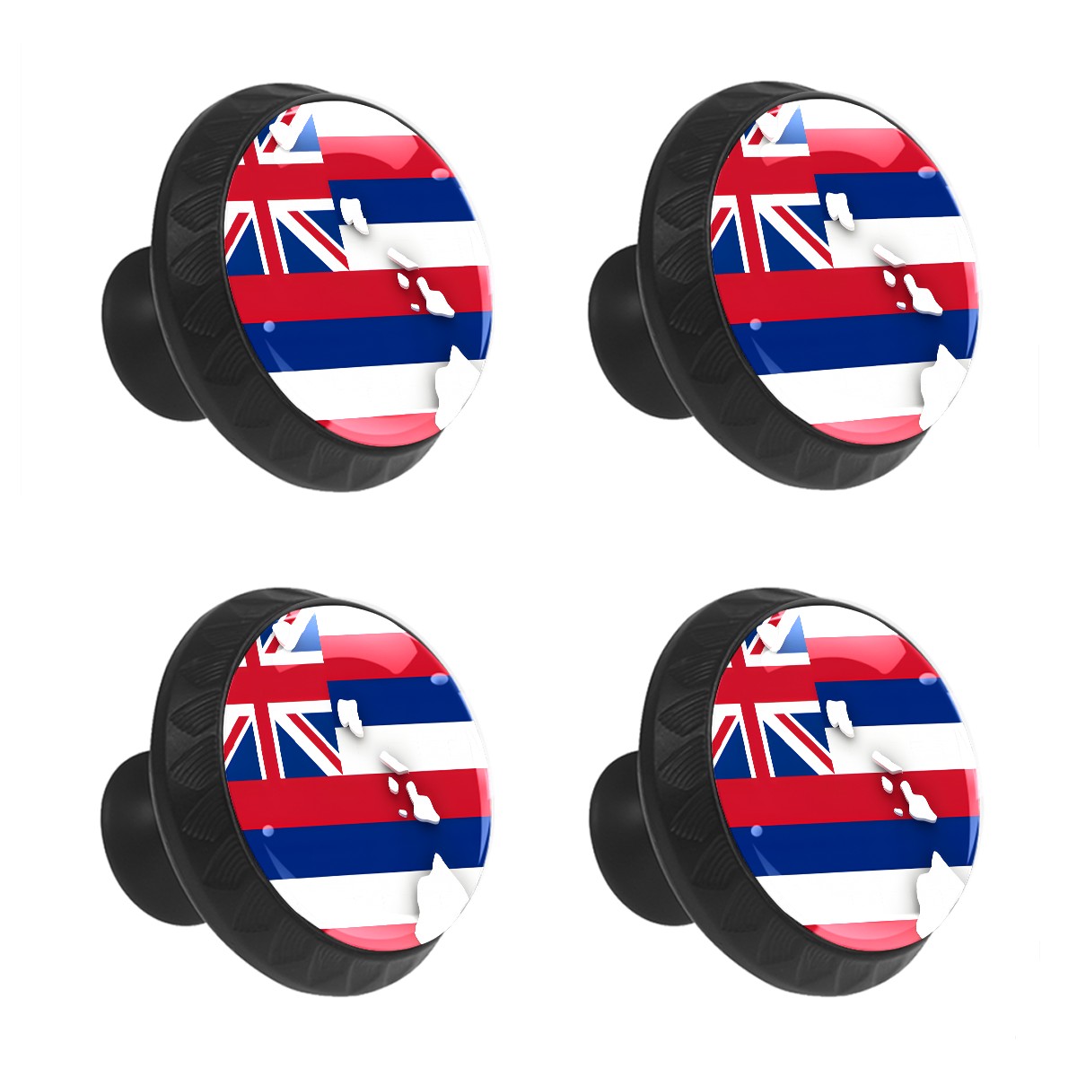 4 Pack Hawaiian Flag Cabinet Knobs Hardware Crystal Glass Drawer Pulls Knobs for Dresser Kitchen Bathroom Cabinets Drawers Black Furniture Cupboard Wardrobe Handles Round, 1-3/8''