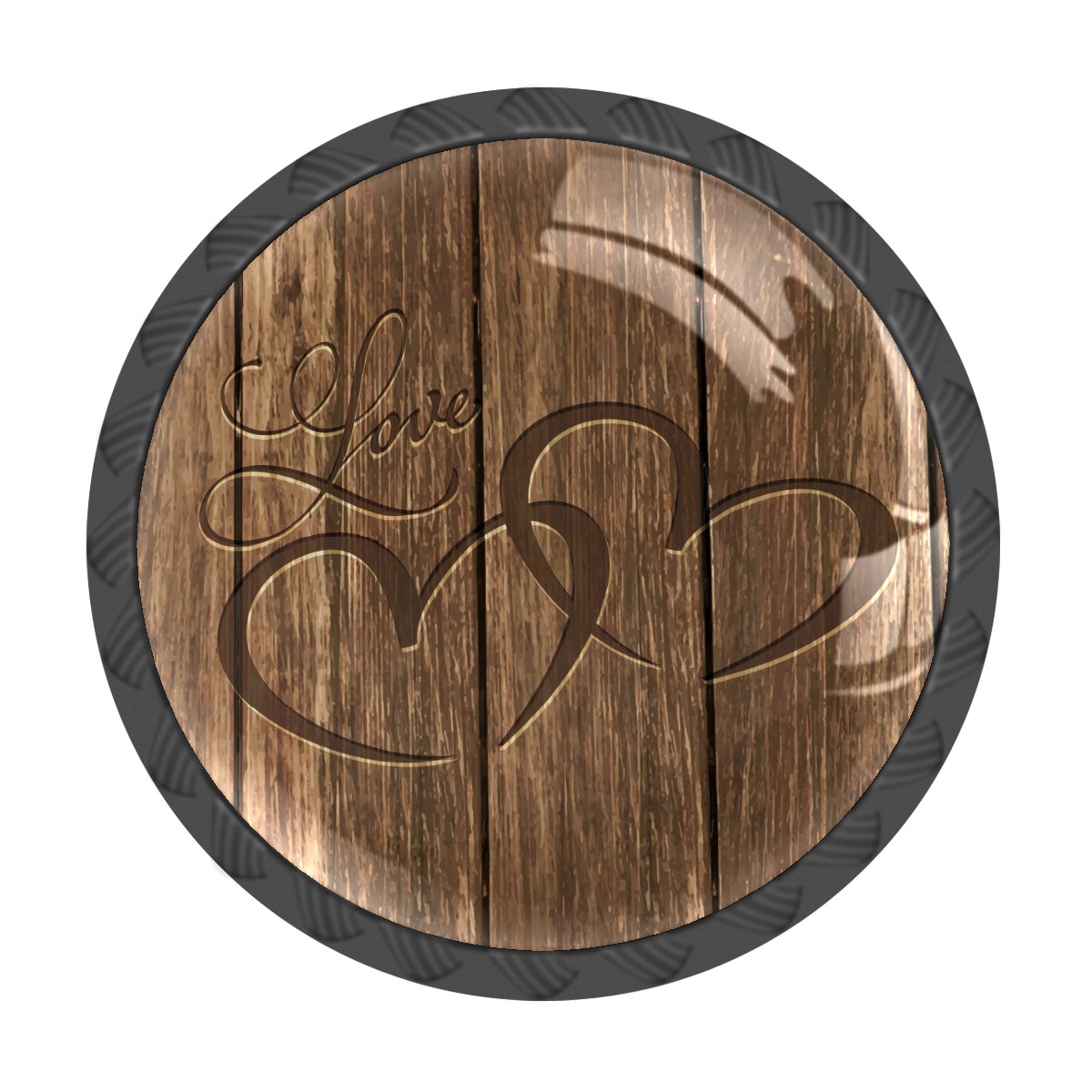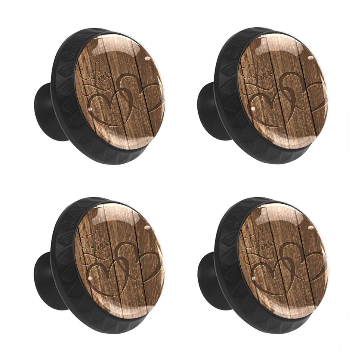 4 Pack Love Heart Carved Wood Board Cabinet Knobs Hardware Crystal Glass Drawer Pulls Knobs for Dresser Kitchen Bathroom Cabinets Drawers Black Furniture Cupboard Wardrobe Handles Round, 1-3/8''