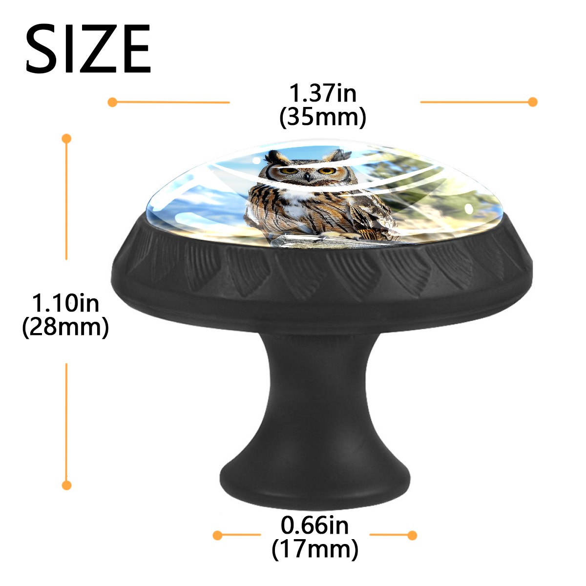 • <p><b>Package Includes:</b></p> <p>Drawer Knobs x 4</p> <p>1.10 Inches Mounting Screws x 4</p> <p>1.37 Inches Mounting Screws x 4</p> <p><br></p> <p></p> <p>Crystal Glass Diameter: 1.37 inches (35mm)</p> <p>Knob Height: 1.10 inches (28mm)</p> <p>Base Diameter: 0.66 inches (17mm)</p> <p><b>Practical and Aesthetic:</b></p> <p>The knobs for kitchen cabinets and drawers combine the durability of an ABS base with the high transparency of glass, enhanced by unique patterns that add decoration and cuteness. It’s both practical and visually appealing.</p> <p><b>Pattern Design:</b></p> <p>Clear patterns add decoration and personalization. Cabinet knobs and pulls enhance visual appeal and can match different home styles, meeting diverse design needs.</p> <p><b>Easy Installation:</b></p> <p>Equipped with mounting screws, the ABS base can be securely attached to the drawer with ease.</p> <p><b>Easy Cleaning:</b></p> <p>The smooth surface of the round glass drawer knobs resists dust and stains, making it easy to clean with just a damp cloth.</p> <p><b>Wear-Resistant:</b></p> <p>The bathroom cabinet knobs are designed to resist scratches and fading, maintaining their good appearance over long-term use.</p>