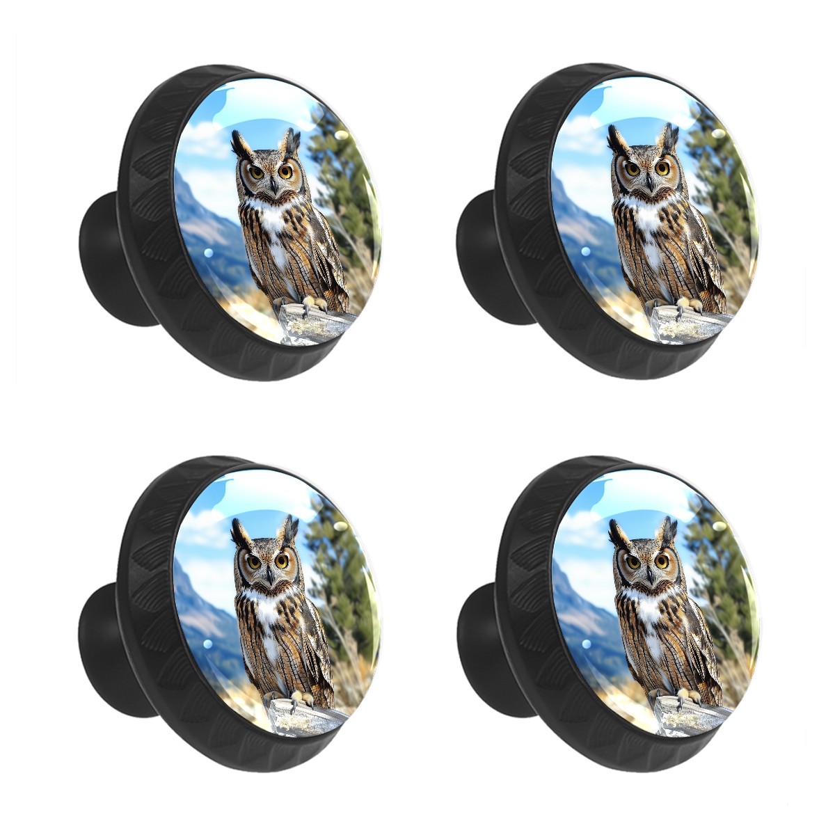 4 Pack Owl Cute Cabinet Knobs Hardware Crystal Glass Drawer Pulls Knobs for Dresser Kitchen Bathroom Cabinets Drawers Black Furniture Cupboard Wardrobe Handles Round, 1-3/8''