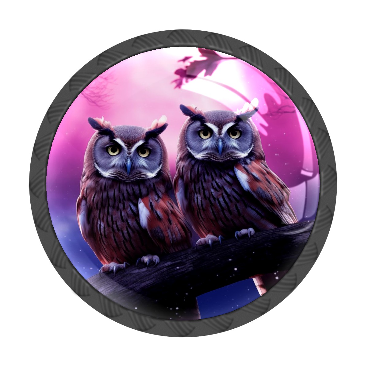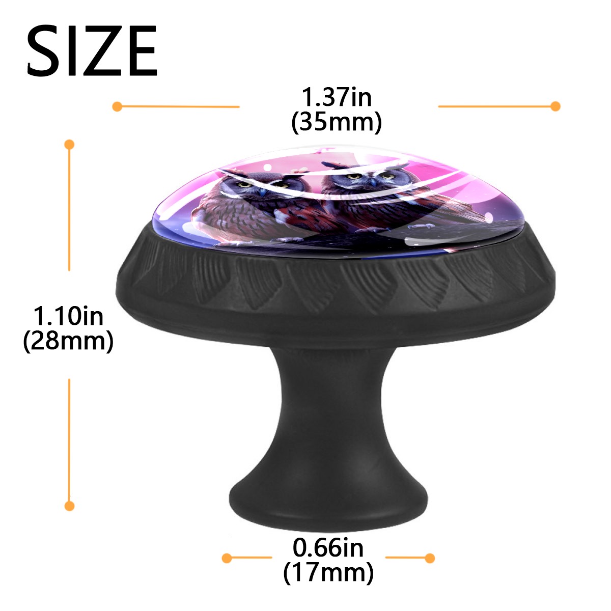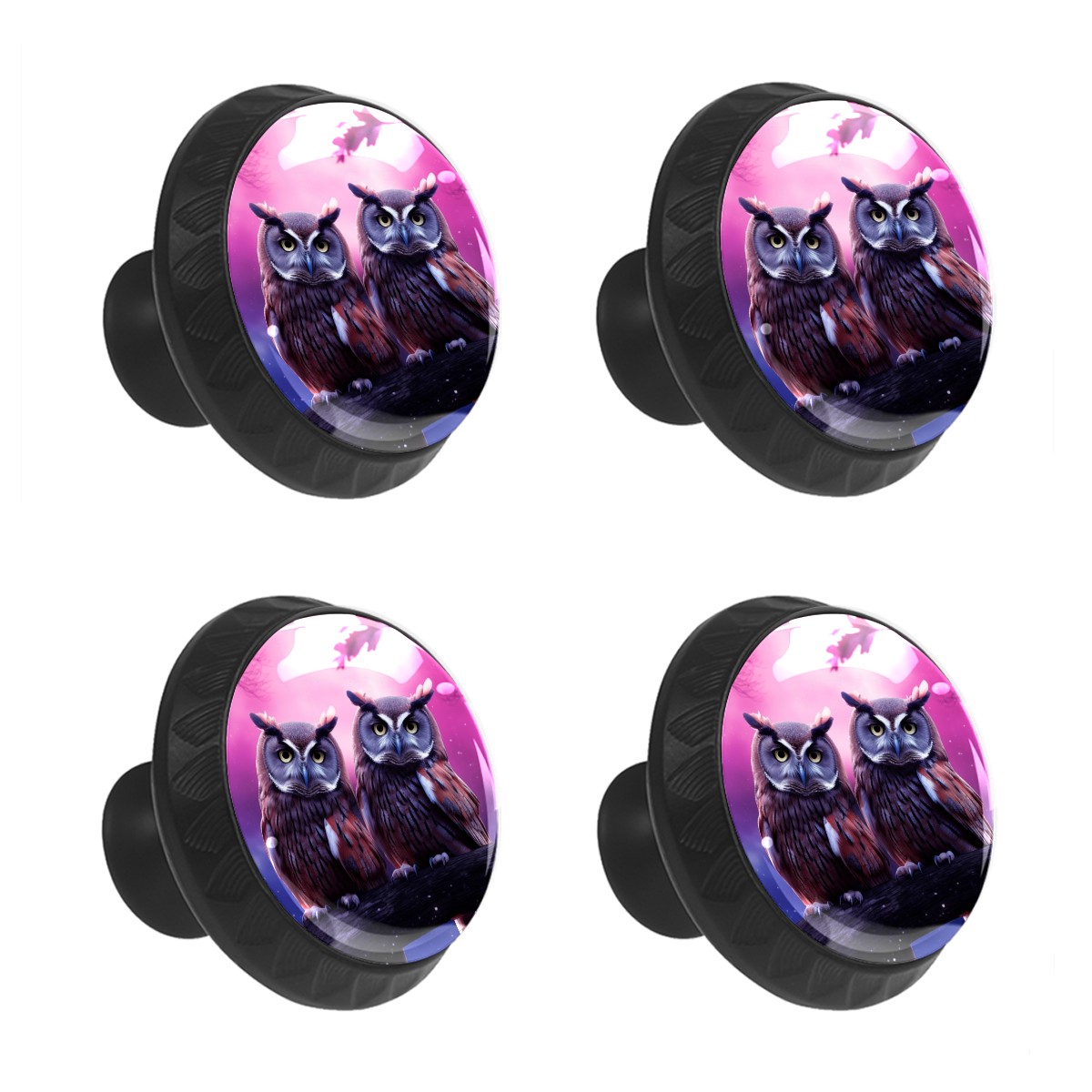 4 Pack Two Owls In A Night Sky Cabinet Knobs Hardware Crystal Glass Drawer Pulls Knobs for Dresser Kitchen Bathroom Cabinets Drawers Black Furniture Cupboard Wardrobe Handles Round, 1-3/8''