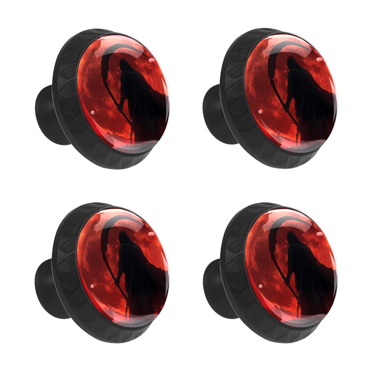 4 Pack Moon Night Grim Reaper Cabinet Knobs Hardware Crystal Glass Drawer Pulls Knobs for Dresser Kitchen Bathroom Cabinets Drawers Black Furniture Cupboard Wardrobe Handles Round, 1-3/8''